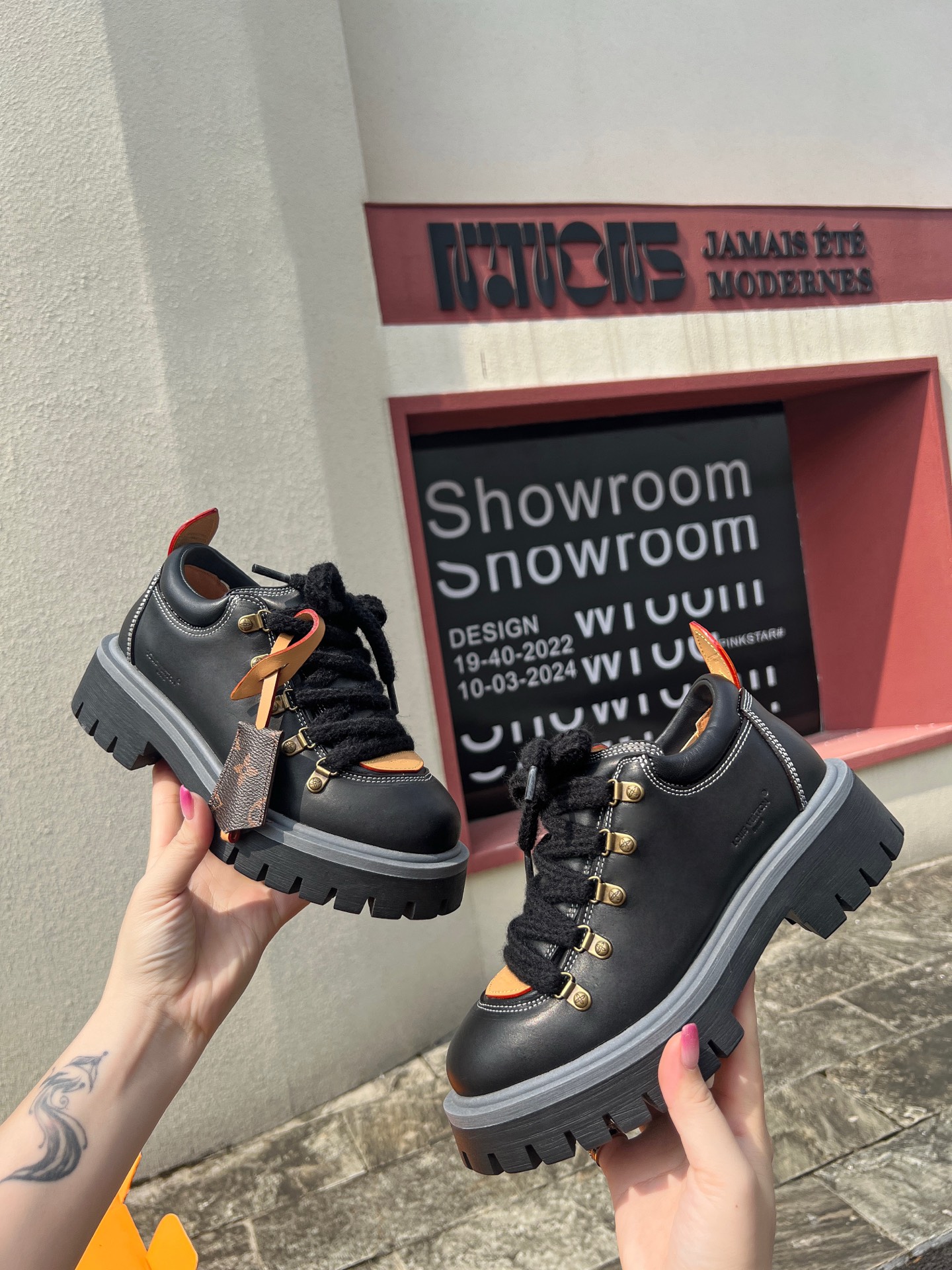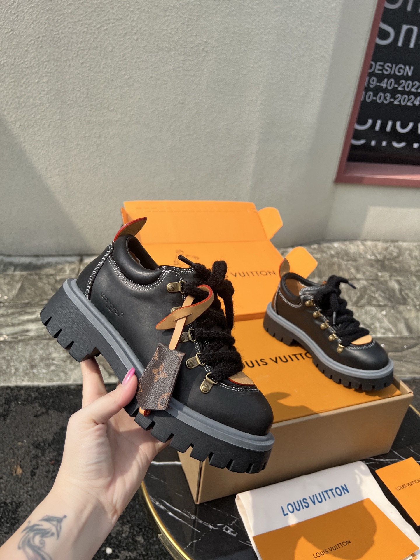 这款鞋子是AAAAA 1:1 质量 (非常棒). 使用了和原版一模一样的材料. 商标部分也保持了和路易威登/Louis Vuitton一样. 图片拍摄是实物鞋子拍摄, 您所收到的实物保证和我们图片一模一样.