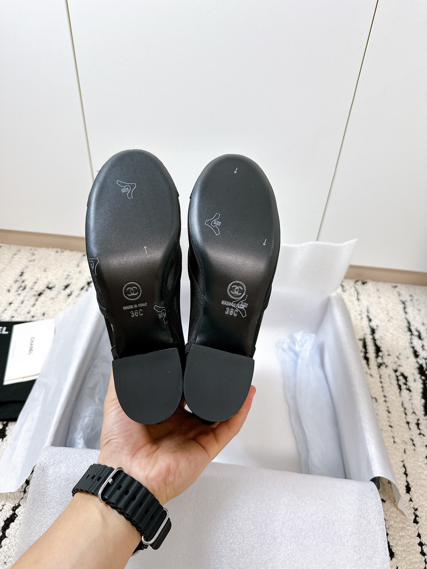 这款鞋子是AAAAA 1:1 质量 (非常棒). 使用了和原版一模一样的材料. 商标部分也保持了和香奈儿/Chanel一样. 图片拍摄是实物鞋子拍摄, 您所收到的实物保证和我们图片一模一样.