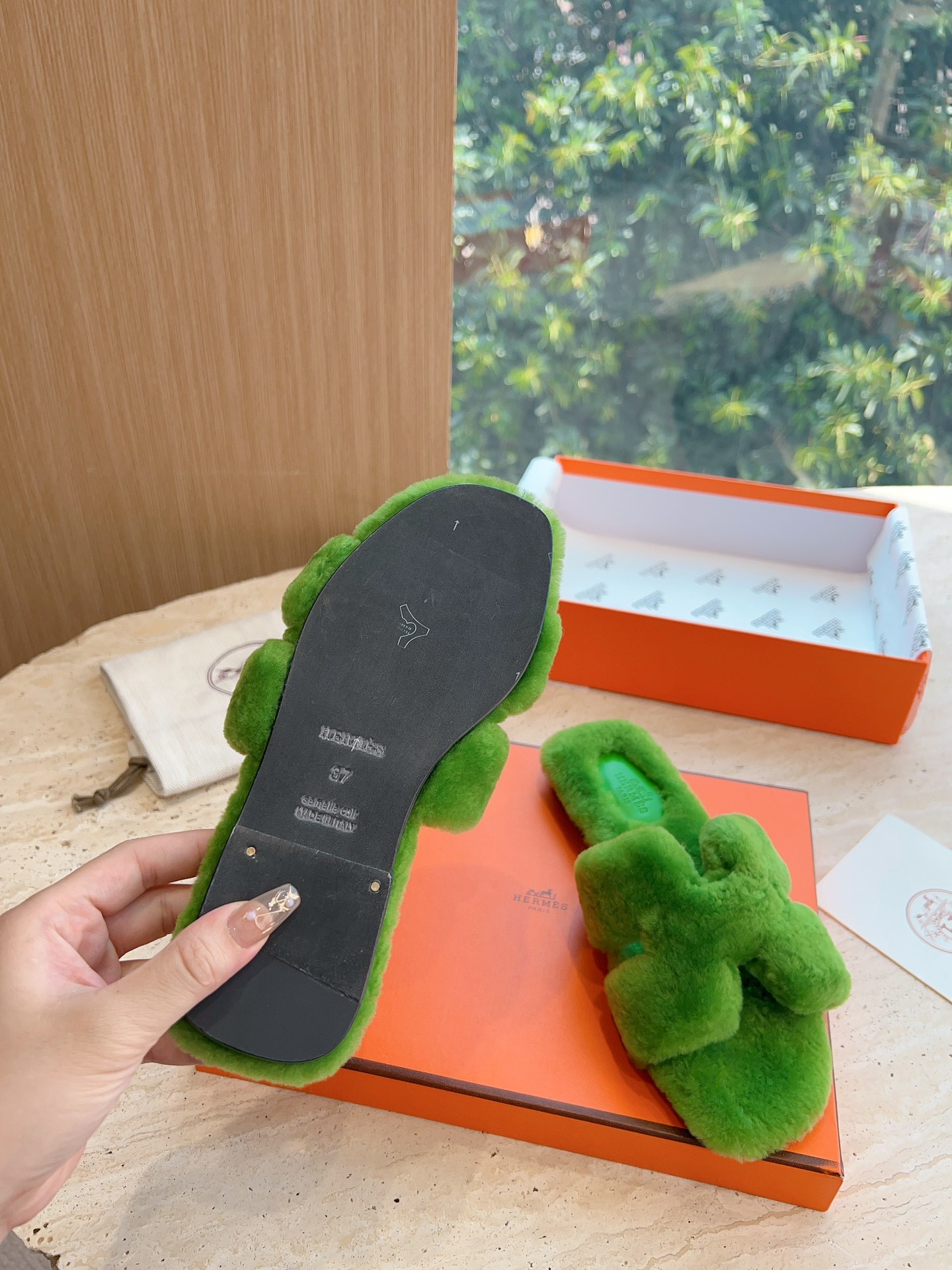 这款鞋子是AAAAA 1:1 质量 (非常棒). 使用了和原版一模一样的材料. 商标部分也保持了和爱马仕/Hermes一样. 图片拍摄是实物鞋子拍摄, 您所收到的实物保证和我们图片一模一样.