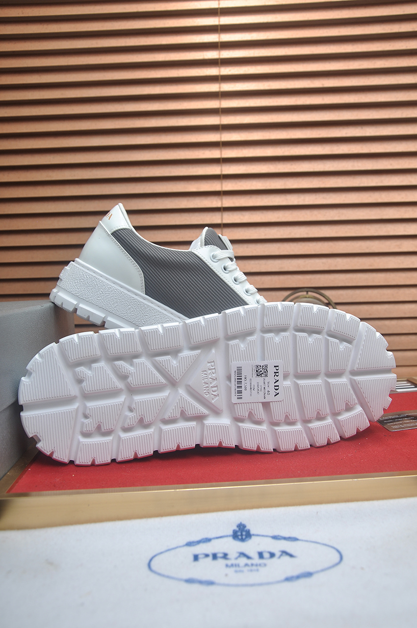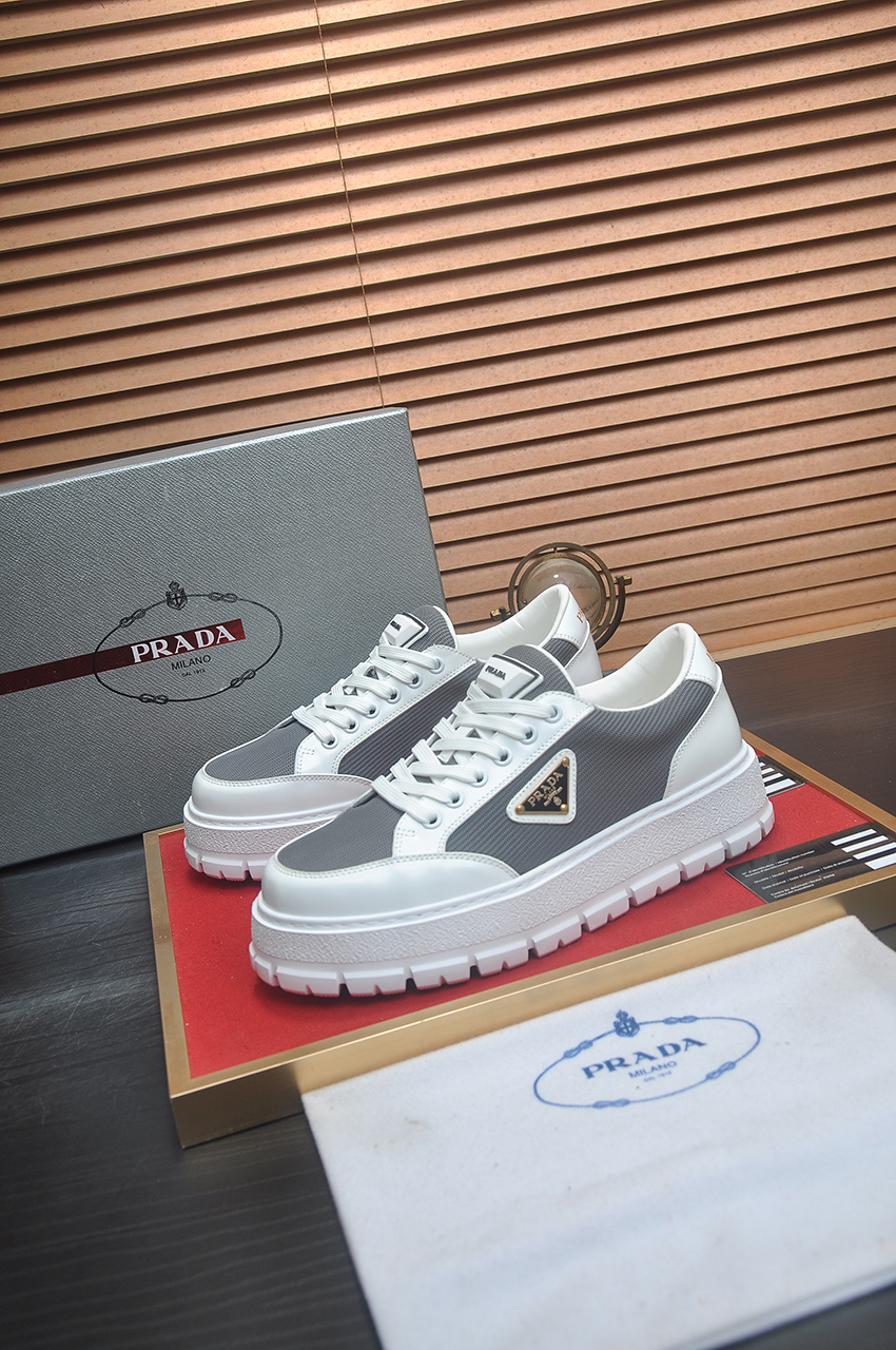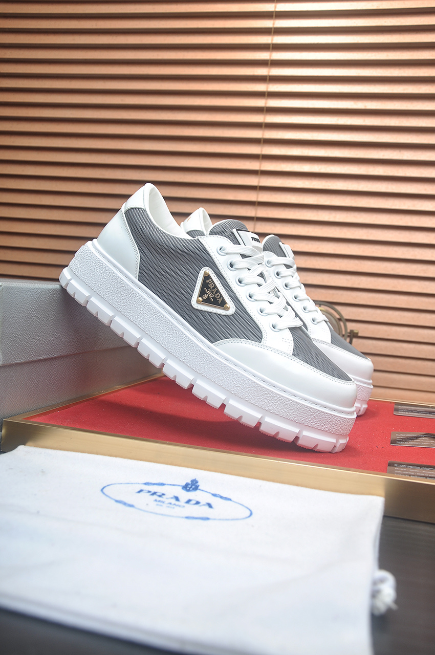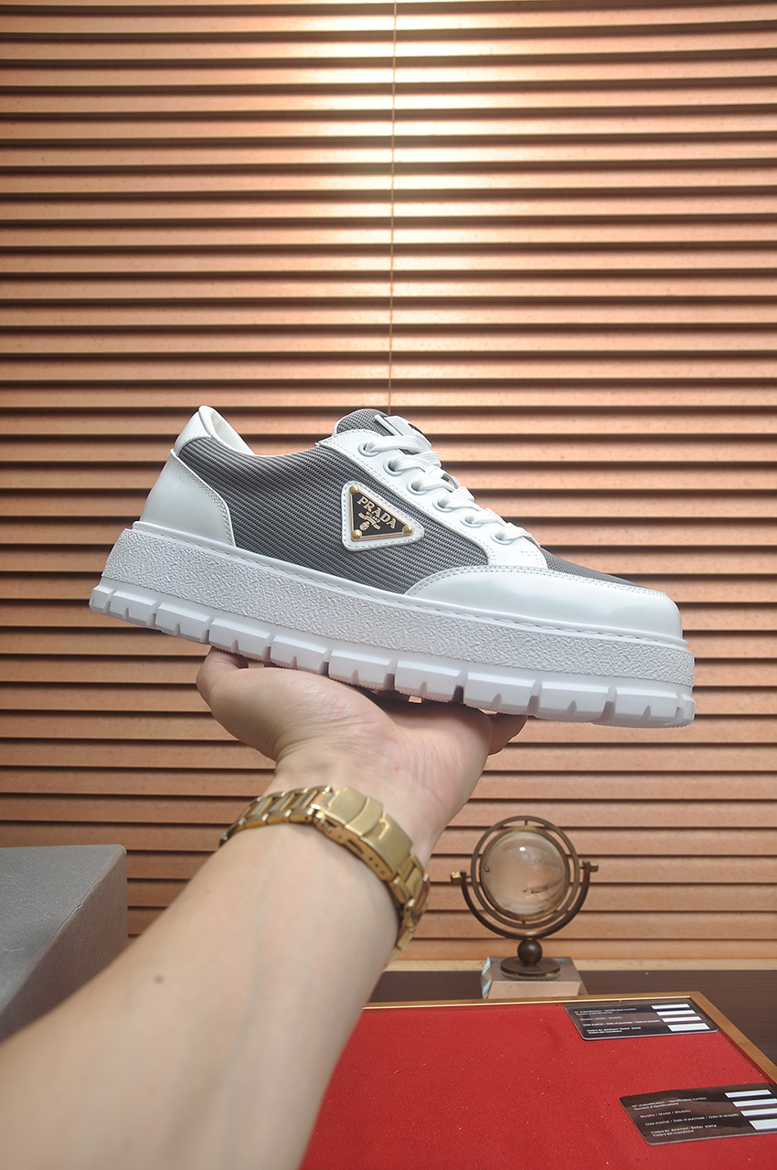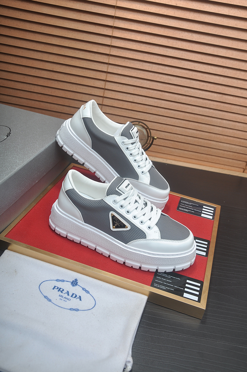 这款鞋子是AAAAA 1:1 质量 (非常棒). 使用了和原版一模一样的材料. 商标部分也保持了和普拉达/Prada一样. 图片拍摄是实物鞋子拍摄, 您所收到的实物保证和我们图片一模一样.