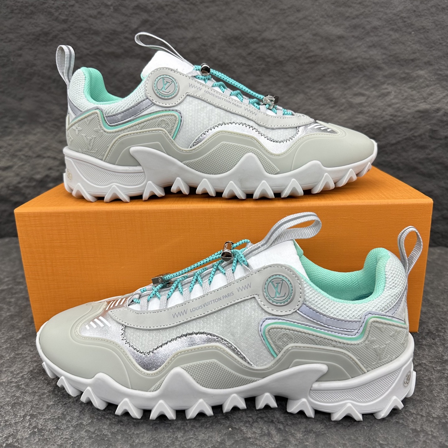 这款鞋子是AAAAA 1:1 质量 (非常棒). 使用了和原版一模一样的材料. 商标部分也保持了和路易威登/Louis Vuitton一样. 图片拍摄是实物鞋子拍摄, 您所收到的实物保证和我们图片一模一样.