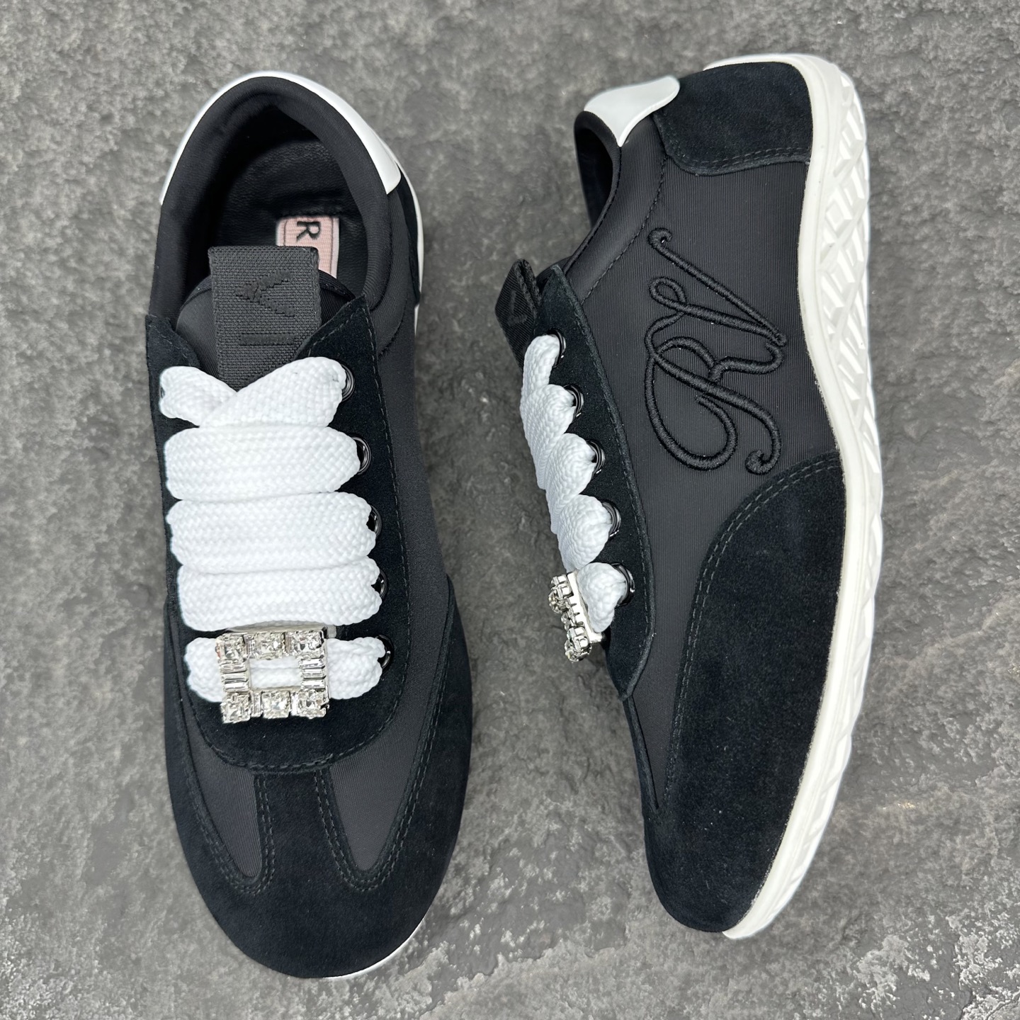 这款鞋子是AAAAA 1:1 质量 (非常棒). 使用了和原版一模一样的材料. 商标部分也保持了和罗杰维维耶/Roger Vivier一样. 图片拍摄是实物鞋子拍摄, 您所收到的实物保证和我们图片一模一样.