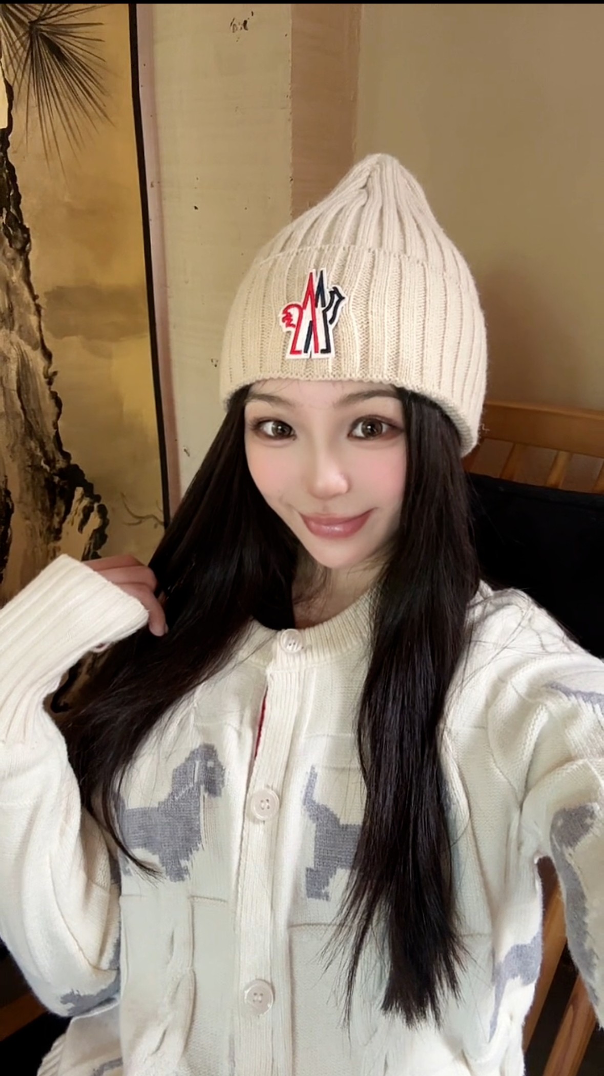 这款帽子是AAAAA 1:1 质量 (非常棒). 使用了和原版一模一样的材料. 商标部分也保持了和盟可睐/moncler一样. 图片拍摄是实物帽子拍摄, 您所收到的实物保证和我们图片一模一样.