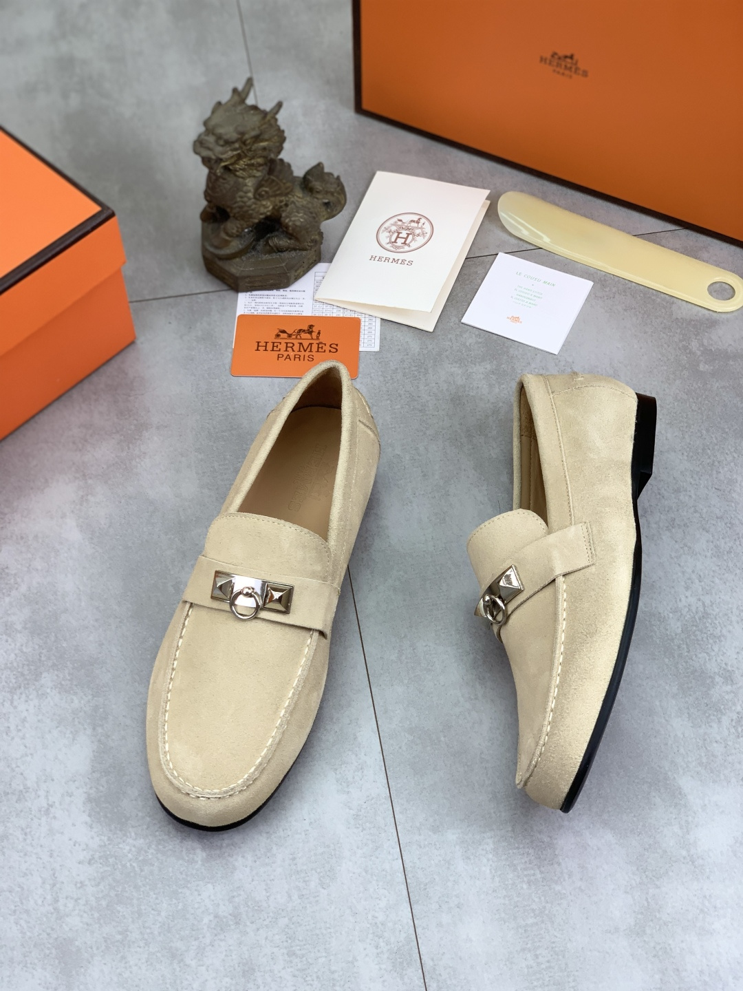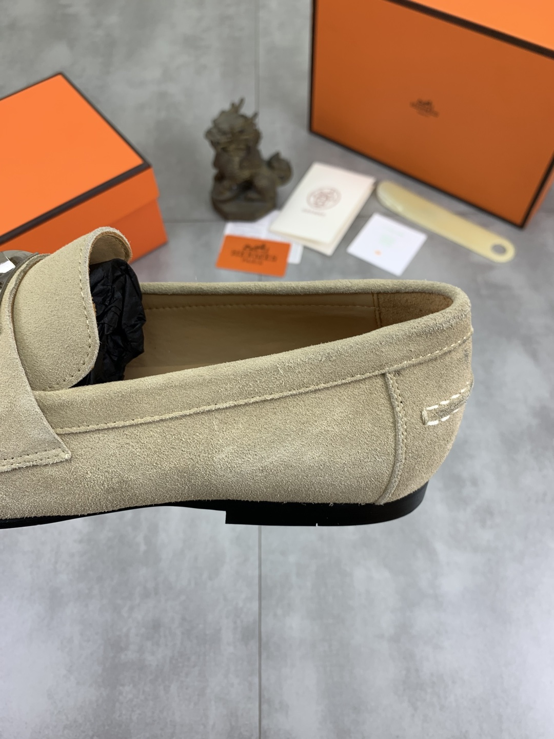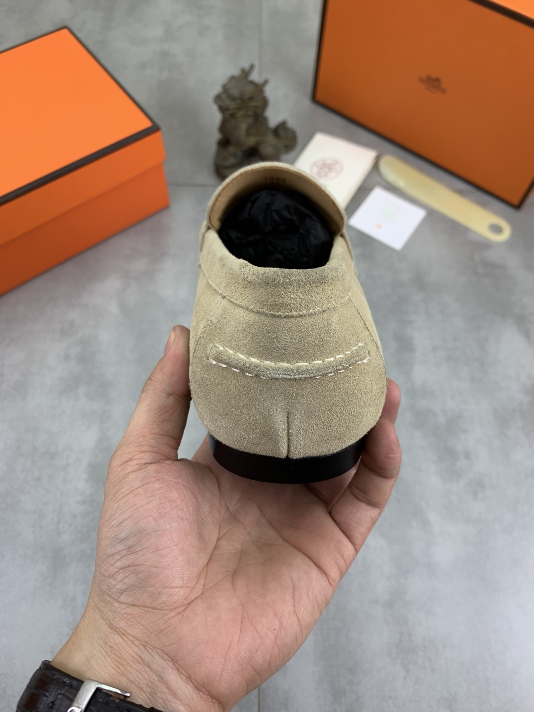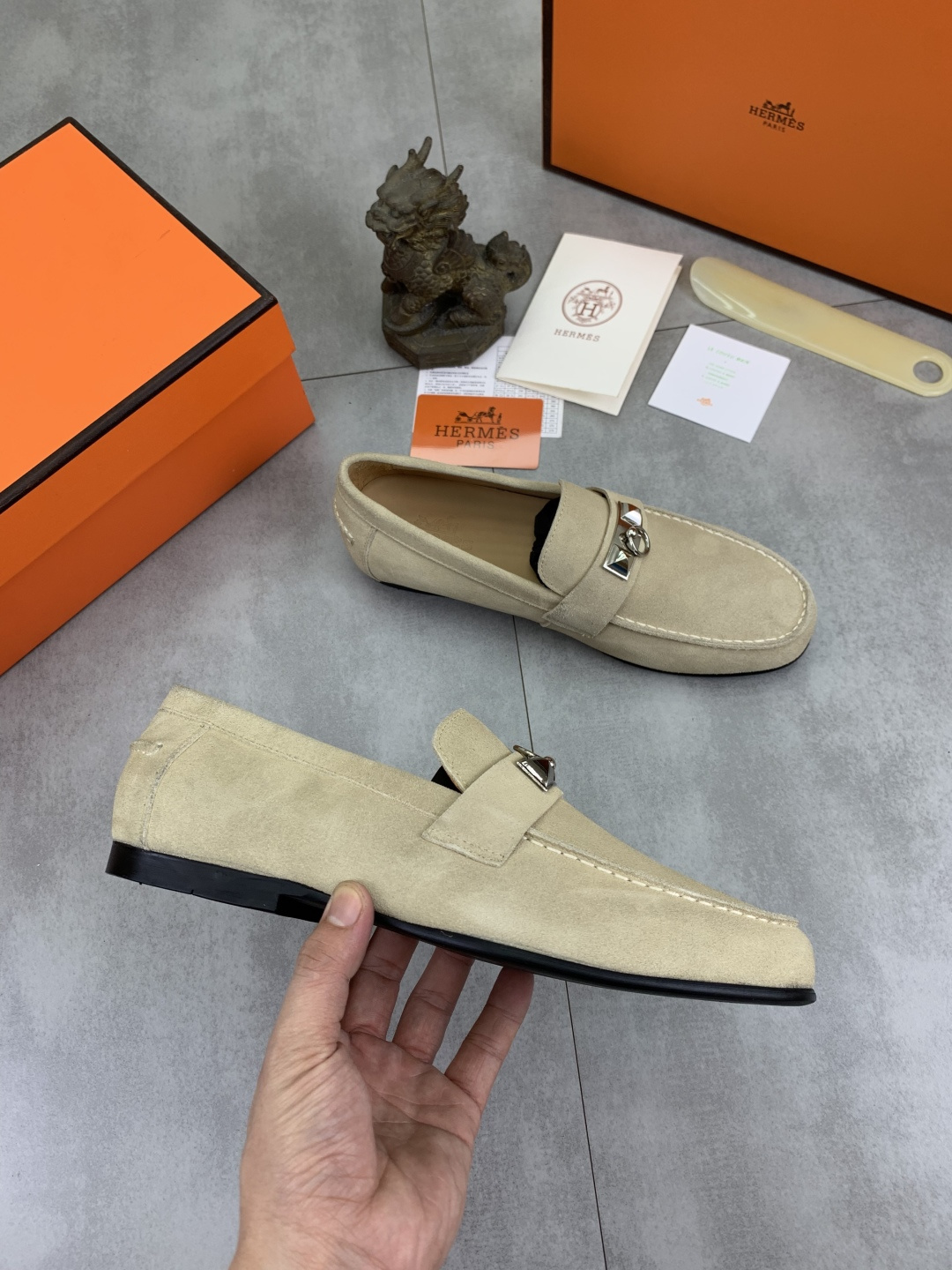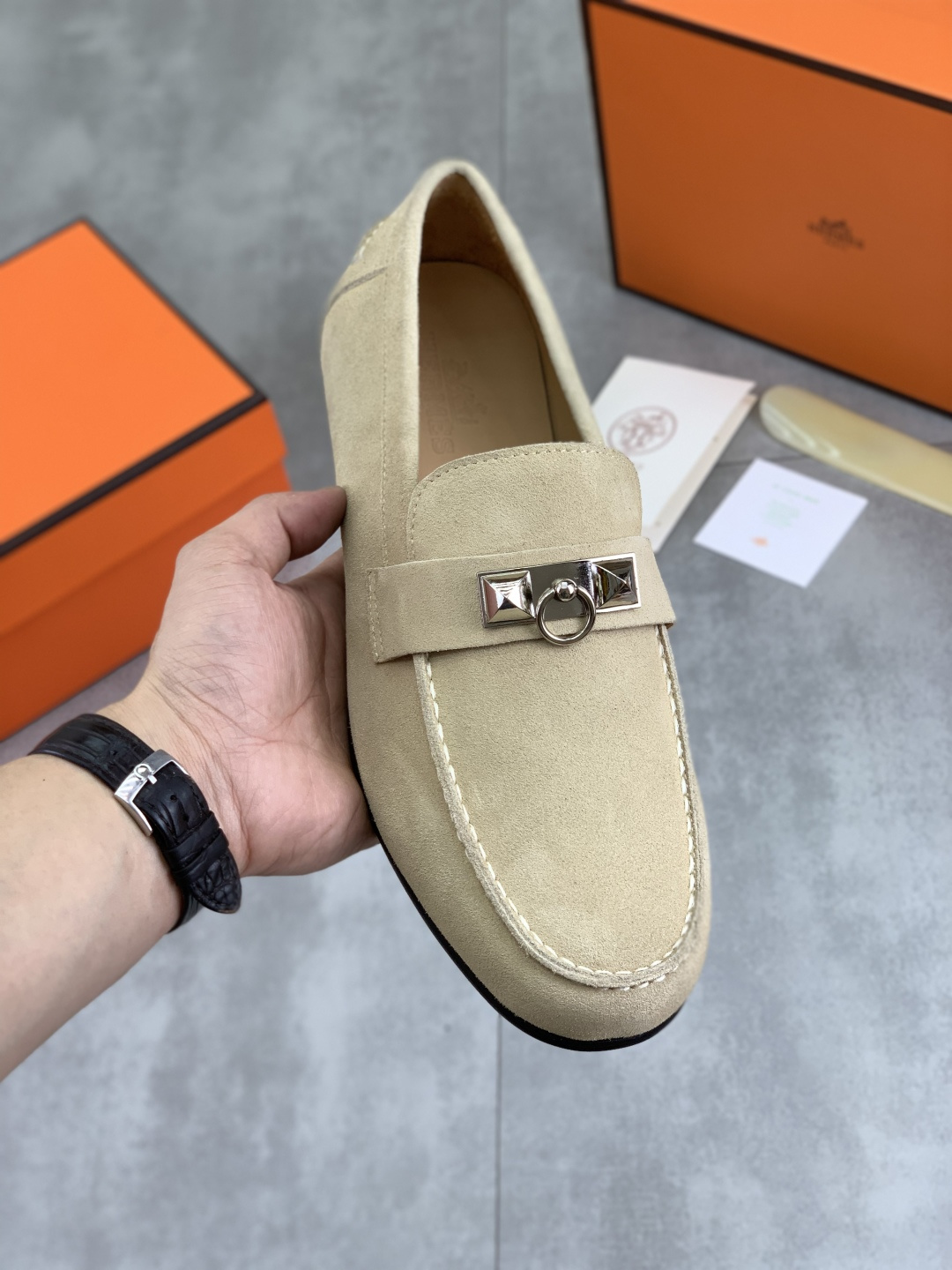 这款鞋子是AAAAA 1:1 质量 (非常棒). 使用了和原版一模一样的材料. 商标部分也保持了和爱马仕/Hermes一样. 图片拍摄是实物鞋子拍摄, 您所收到的实物保证和我们图片一模一样.