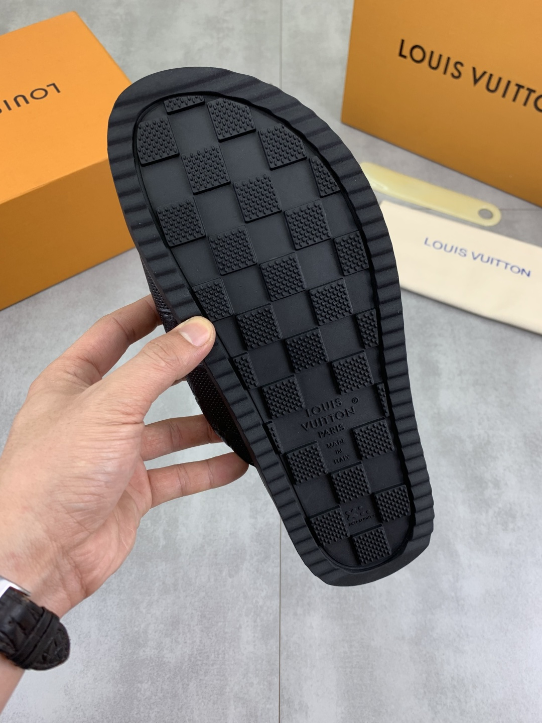 这款鞋子是AAAAA 1:1 质量 (非常棒). 使用了和原版一模一样的材料. 商标部分也保持了和路易威登/Louis Vuitton一样. 图片拍摄是实物鞋子拍摄, 您所收到的实物保证和我们图片一模一样.