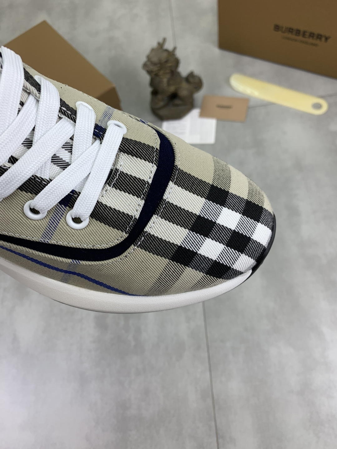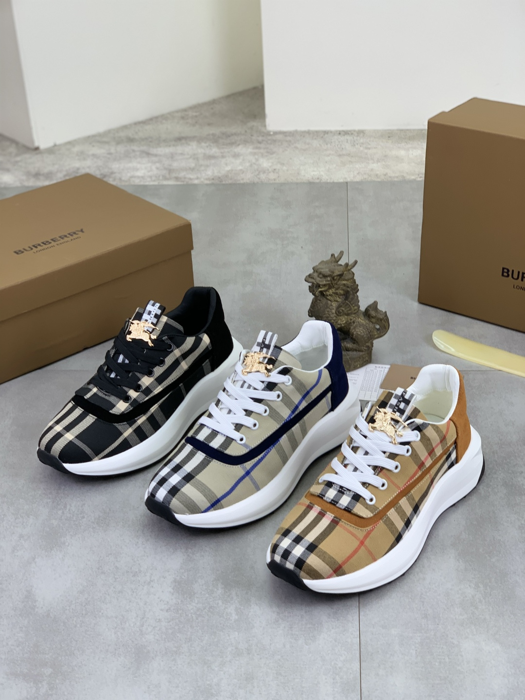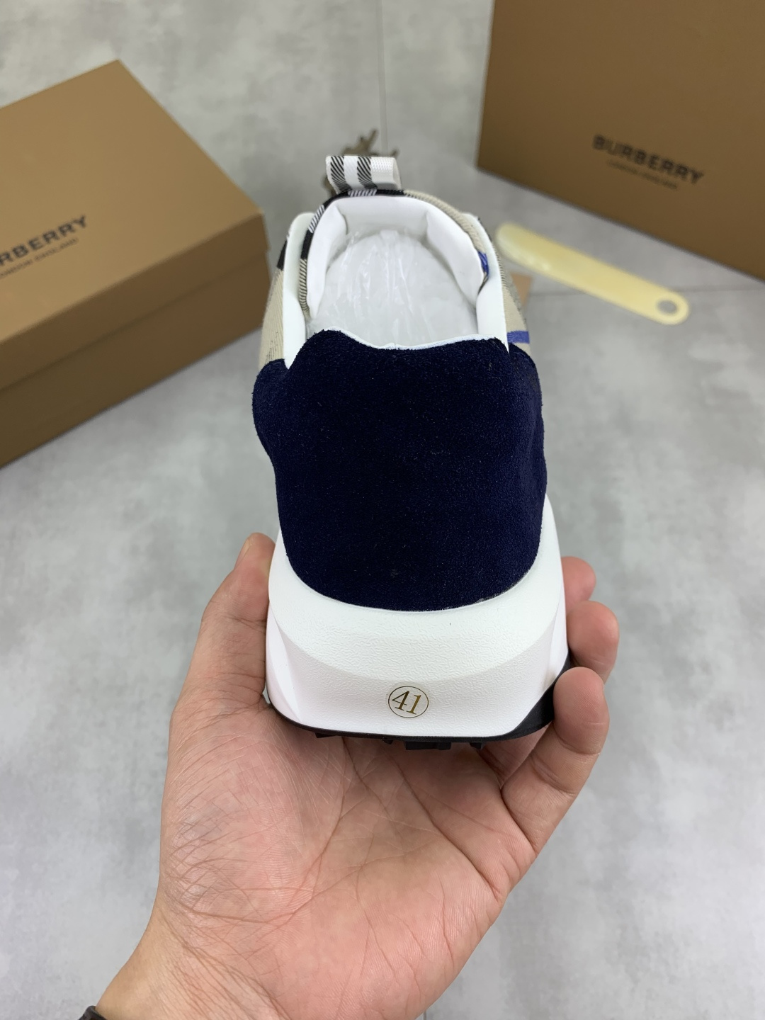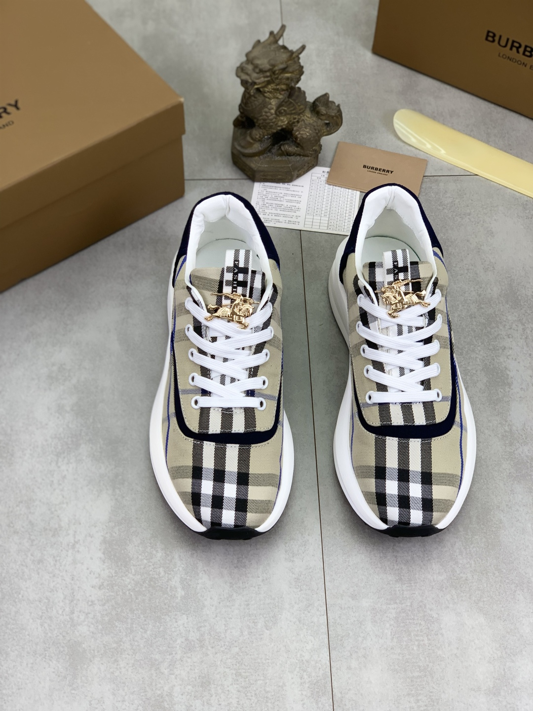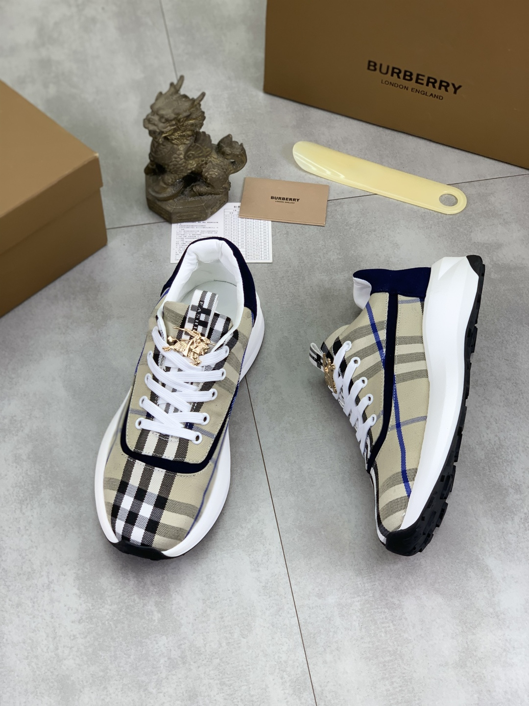 这款鞋子是AAAAA 1:1 质量 (非常棒). 使用了和原版一模一样的材料. 商标部分也保持了和巴宝莉/Burberry一样. 图片拍摄是实物鞋子拍摄, 您所收到的实物保证和我们图片一模一样.