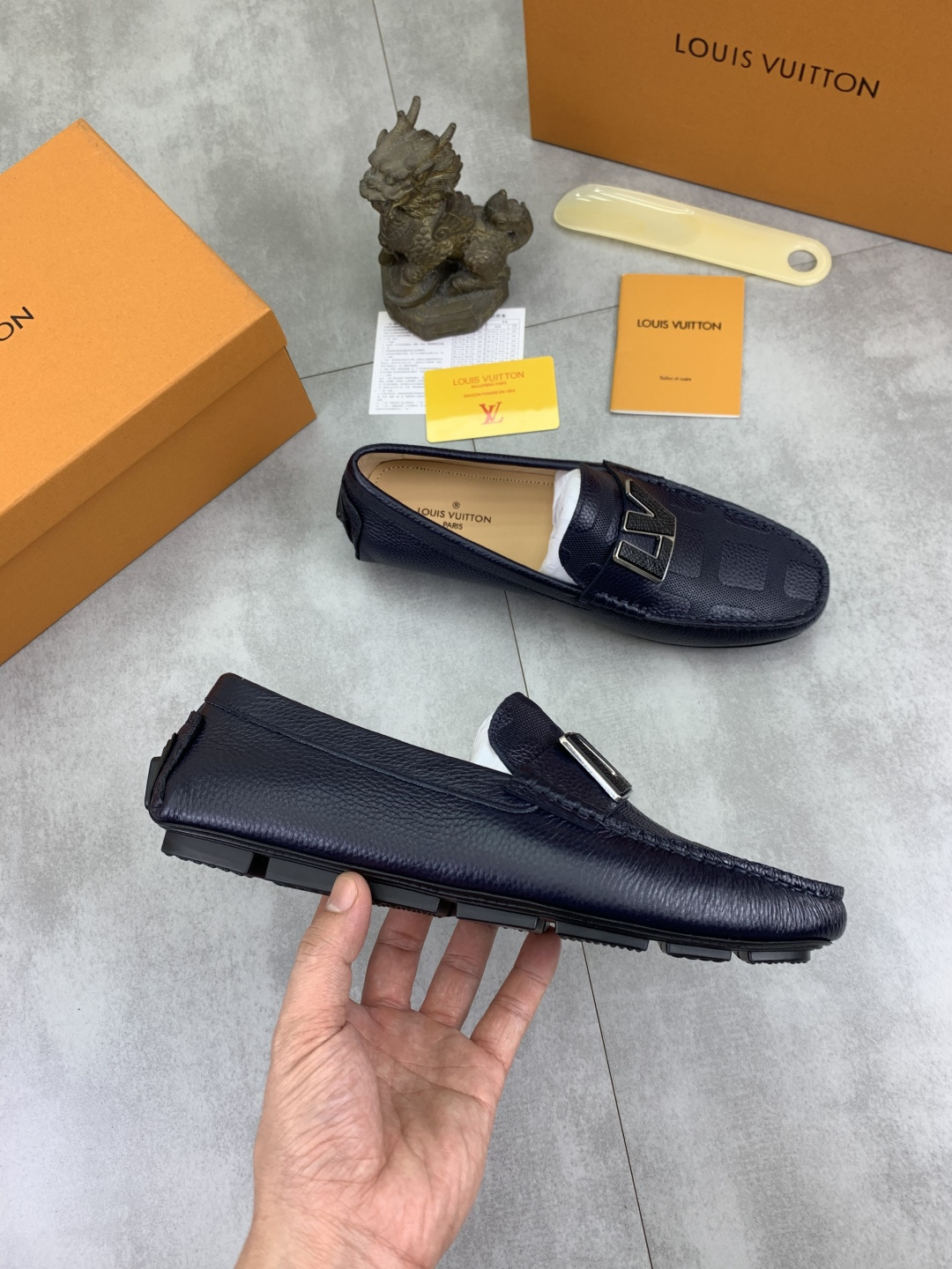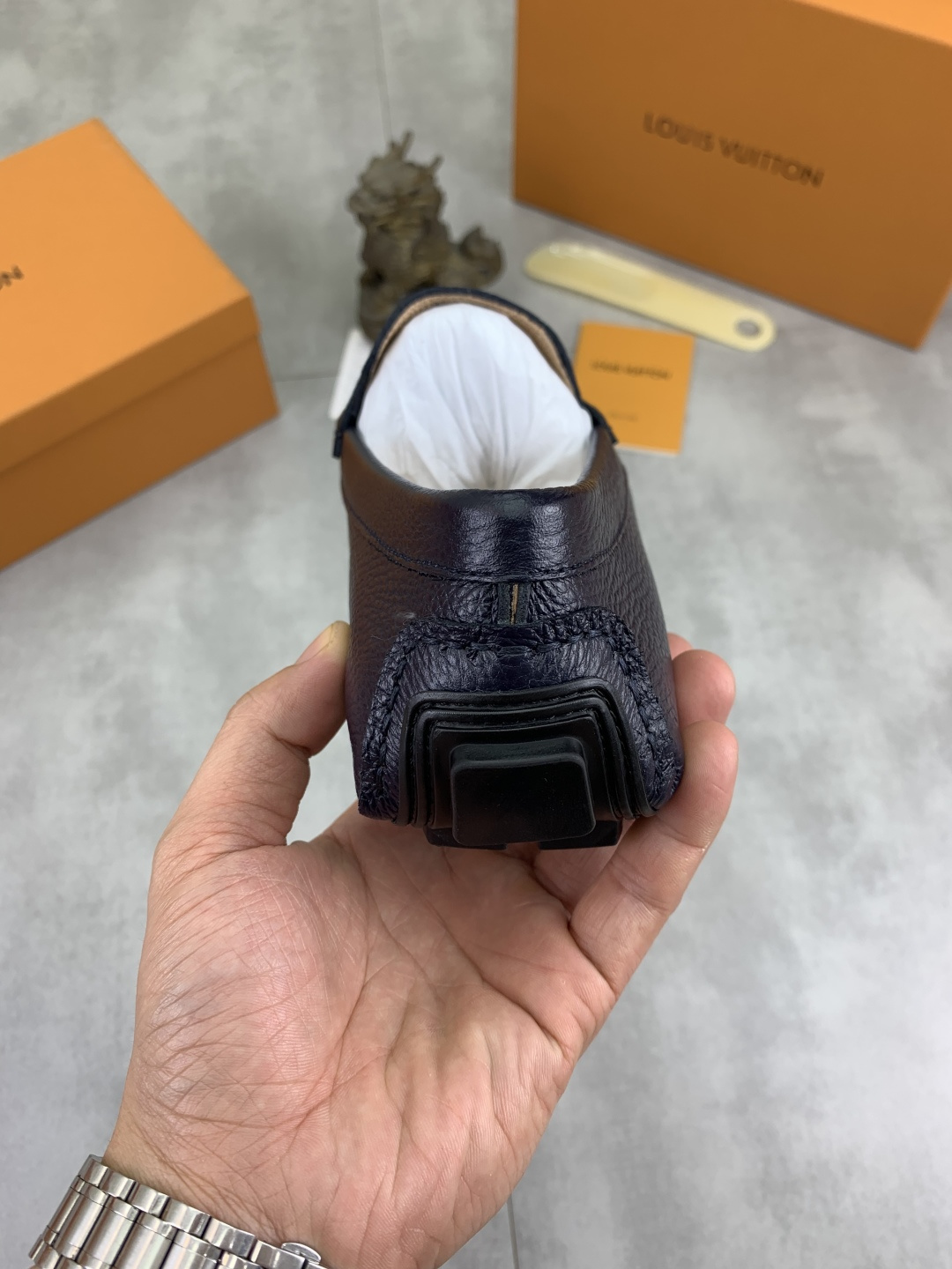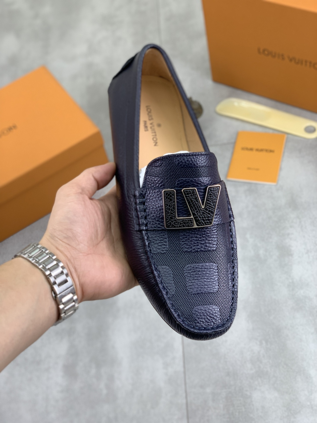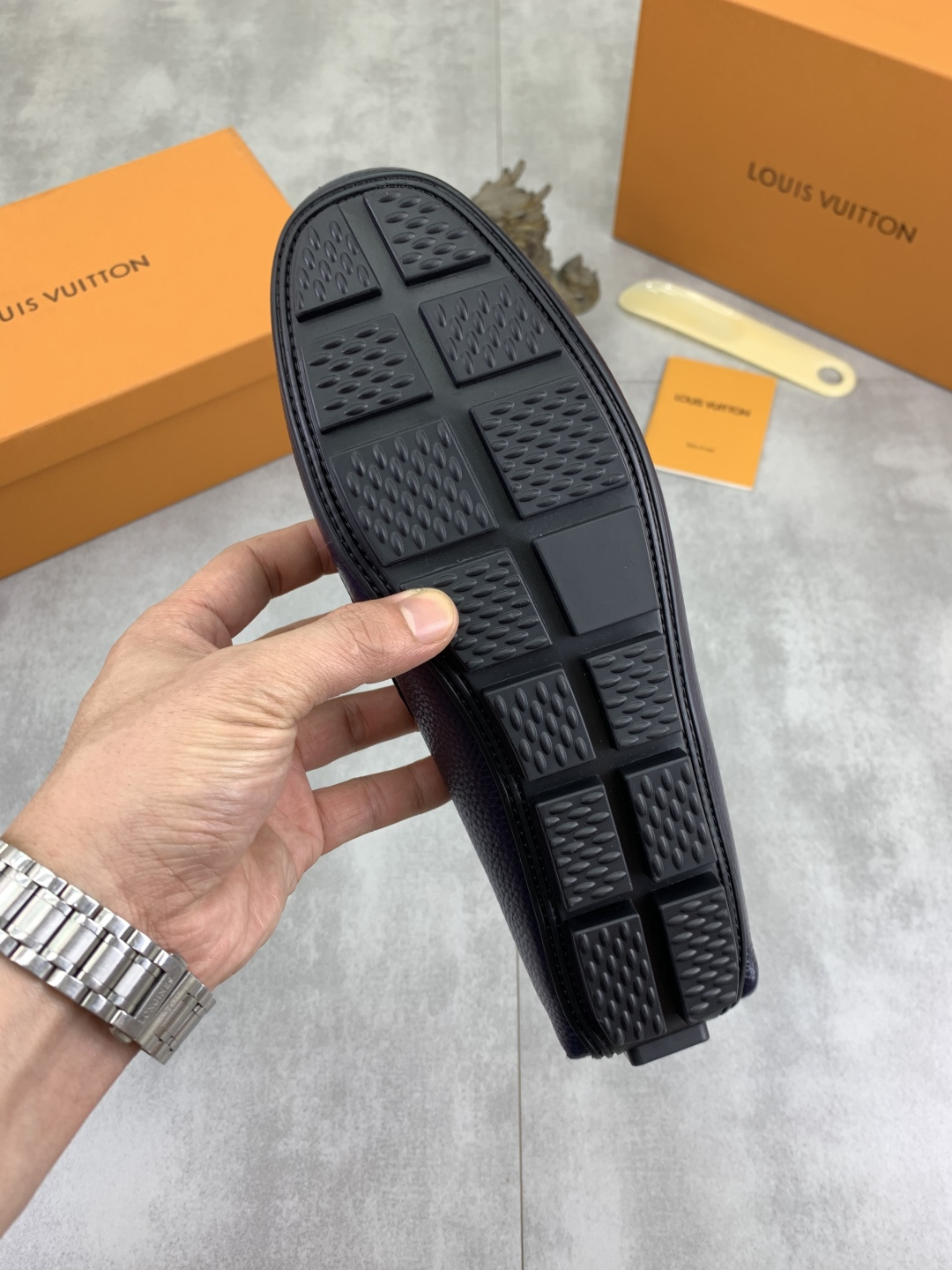 这款鞋子是AAAAA 1:1 质量 (非常棒). 使用了和原版一模一样的材料. 商标部分也保持了和路易威登/Louis Vuitton一样. 图片拍摄是实物鞋子拍摄, 您所收到的实物保证和我们图片一模一样.
