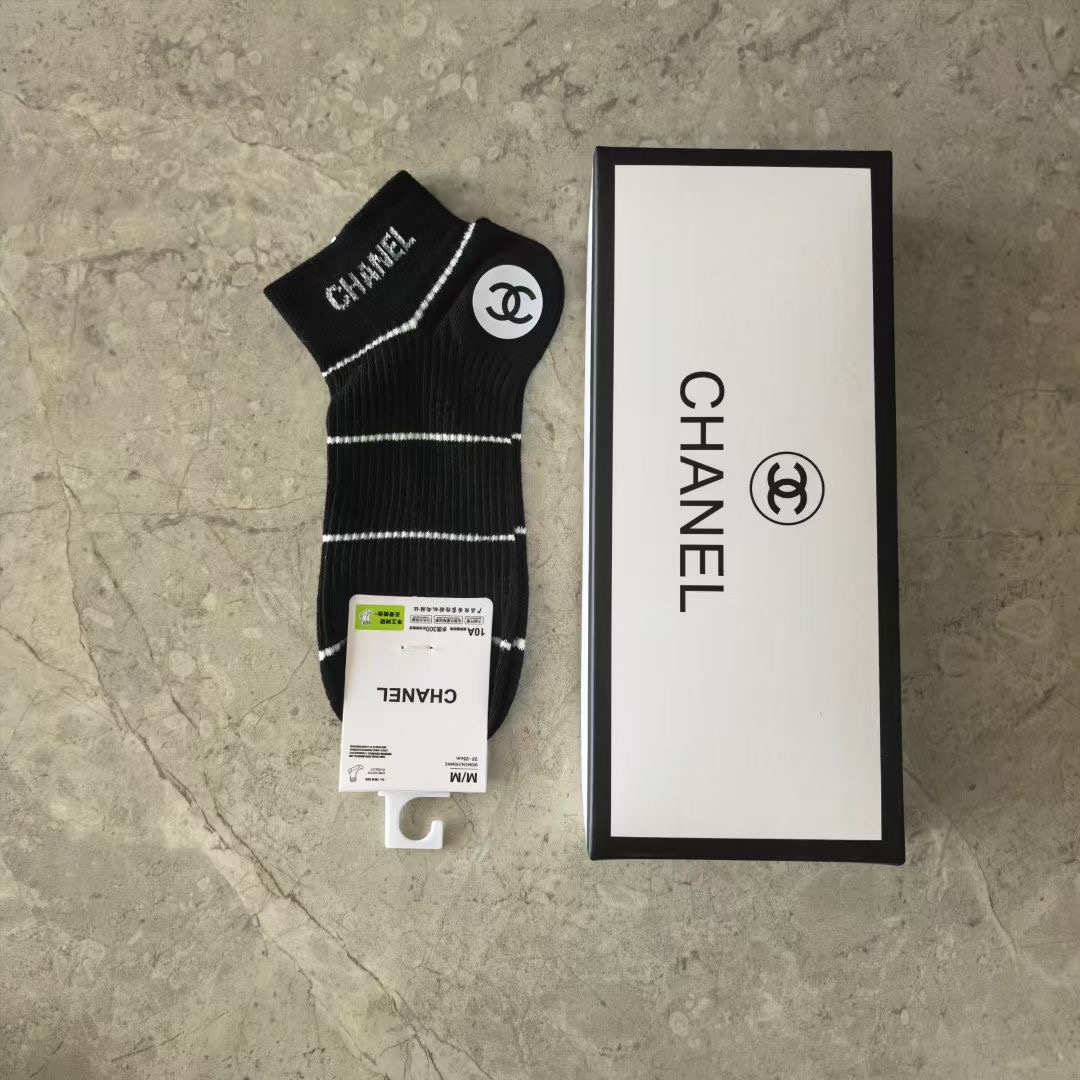 这款sock是AAAAA 1:1 质量 (非常棒). 使用了和原版一模一样的材料. 商标部分也保持了和香奈儿/Chanel一样. 图片拍摄是实物sock拍摄, 您所收到的实物保证和我们图片一模一样.