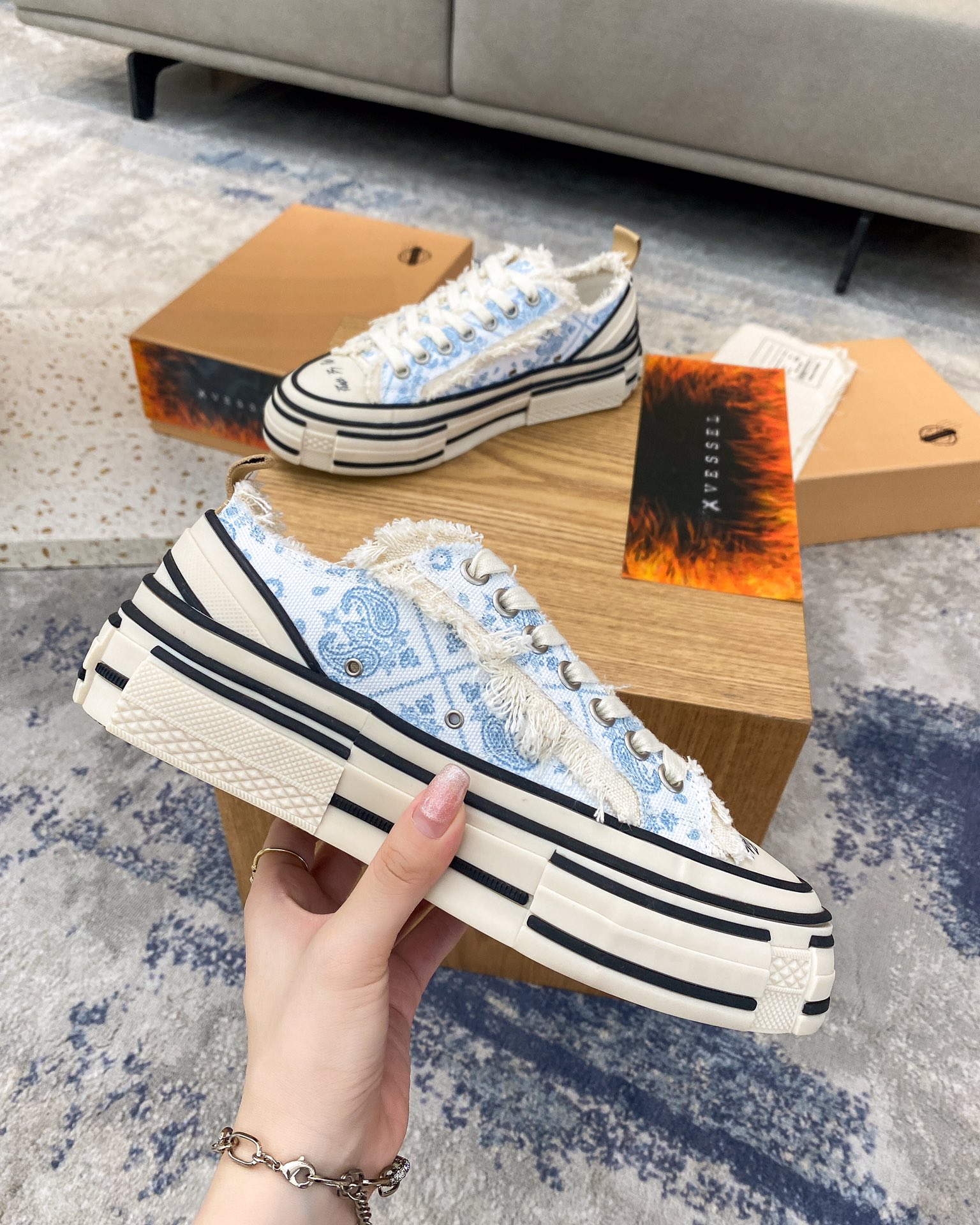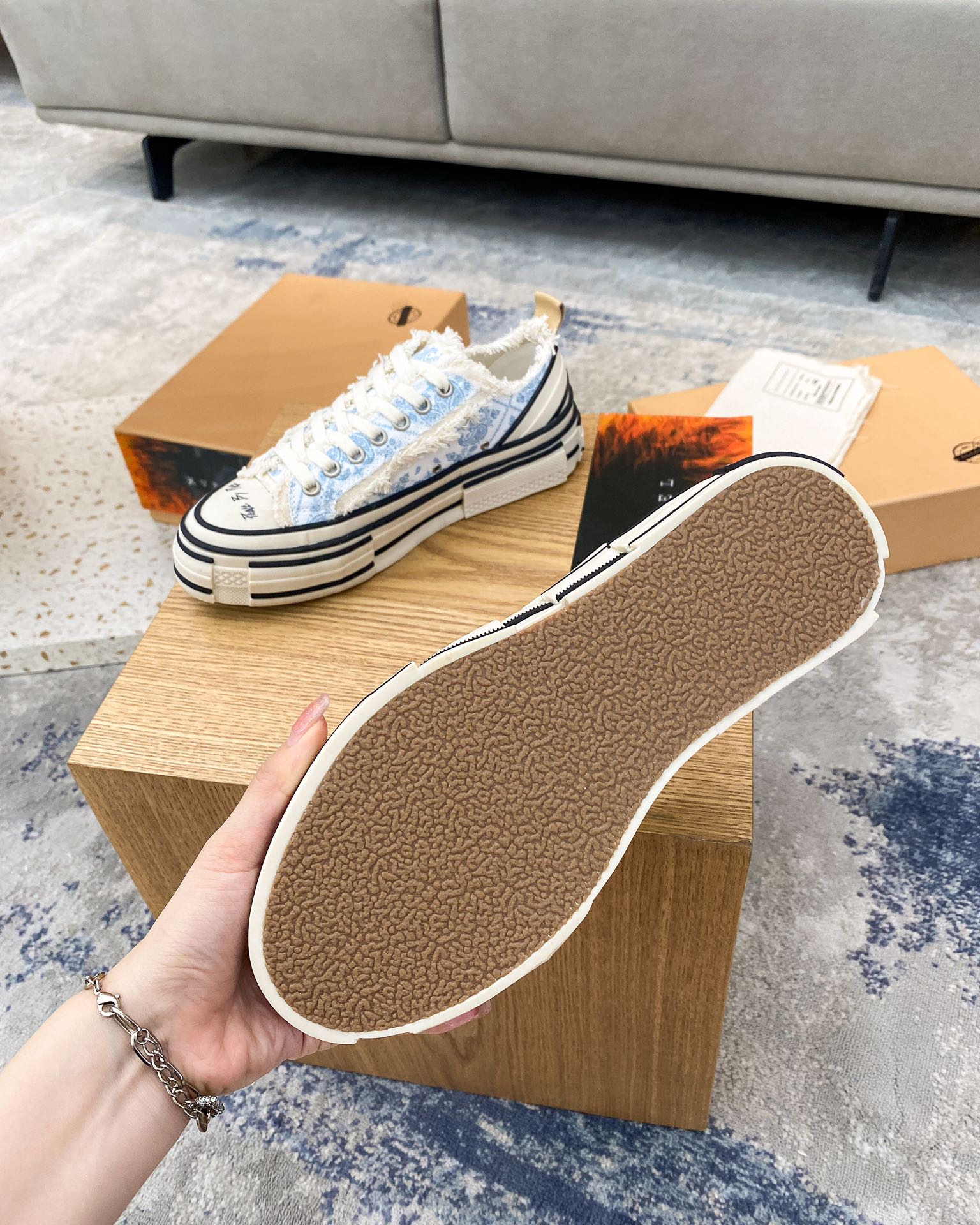 这款鞋子是AAAAA 1:1 质量 (非常棒). 使用了和原版一模一样的材料. 商标部分也保持了和一样. 图片拍摄是实物鞋子拍摄, 您所收到的实物保证和我们图片一模一样.