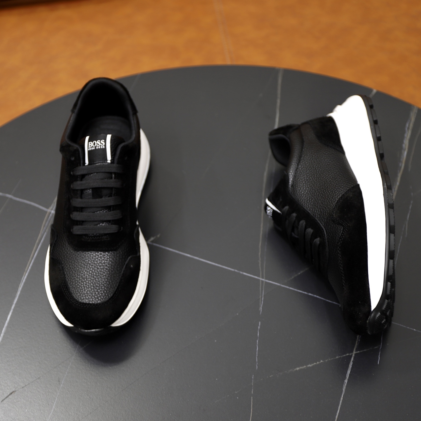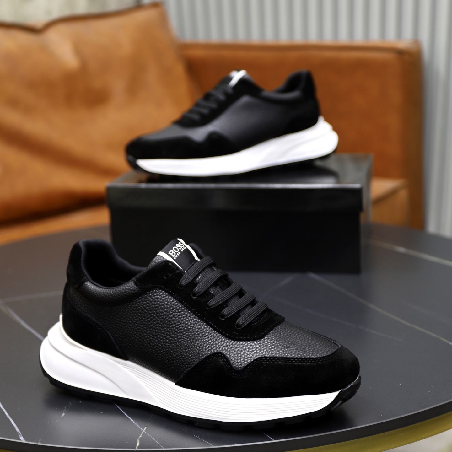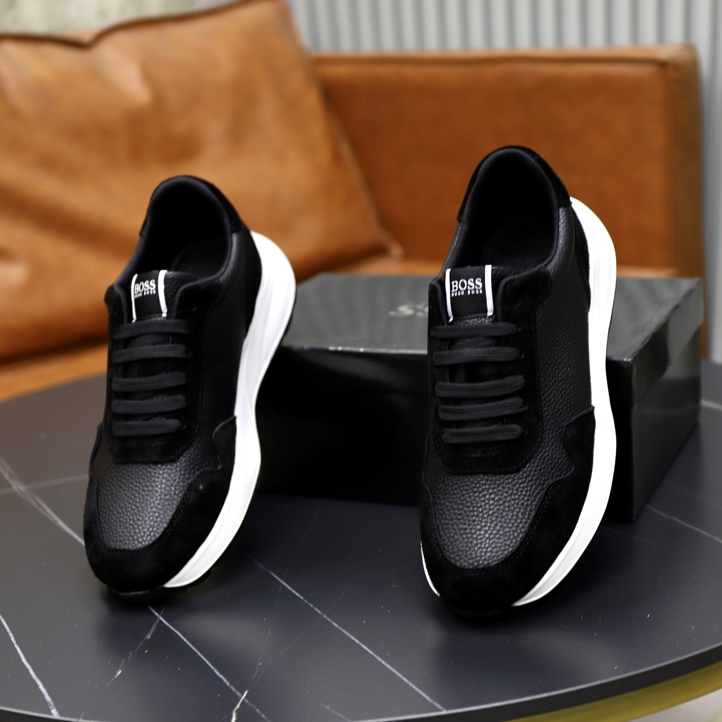 这款鞋子是AAAAA 1:1 质量 (非常棒). 使用了和原版一模一样的材料. 商标部分也保持了和BOSS一样. 图片拍摄是实物鞋子拍摄, 您所收到的实物保证和我们图片一模一样.