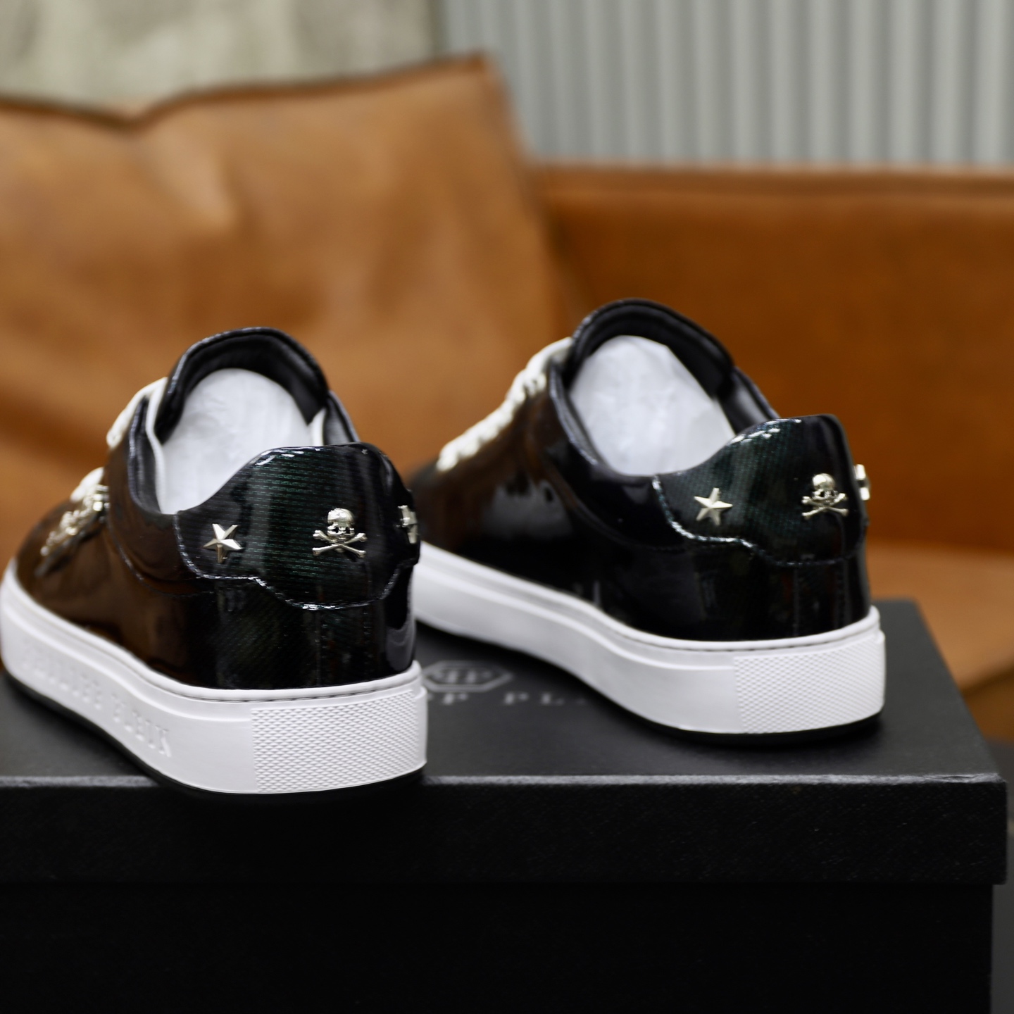 这款鞋子是AAAAA 1:1 质量 (非常棒). 使用了和原版一模一样的材料. 商标部分也保持了和菲利普·普林/Philipp Plein一样. 图片拍摄是实物鞋子拍摄, 您所收到的实物保证和我们图片一模一样.
