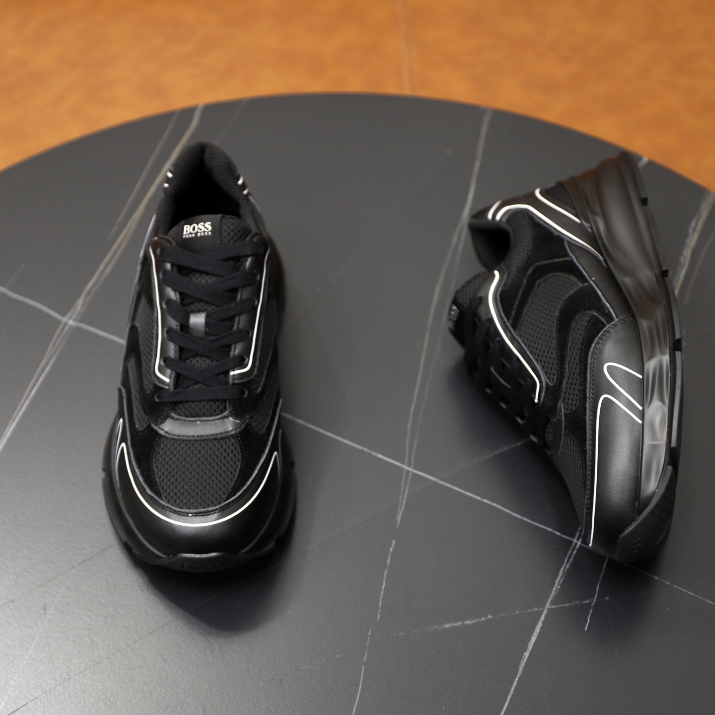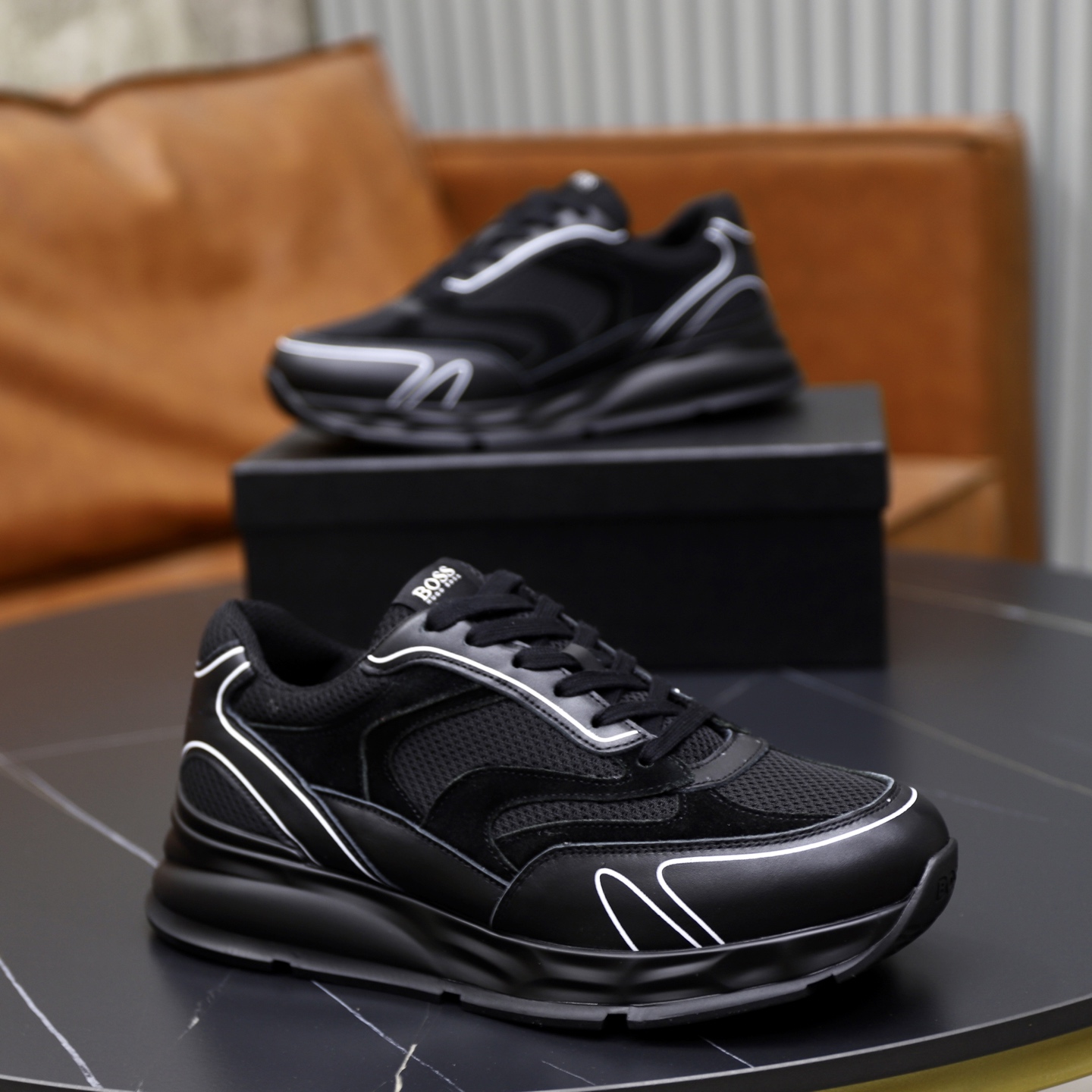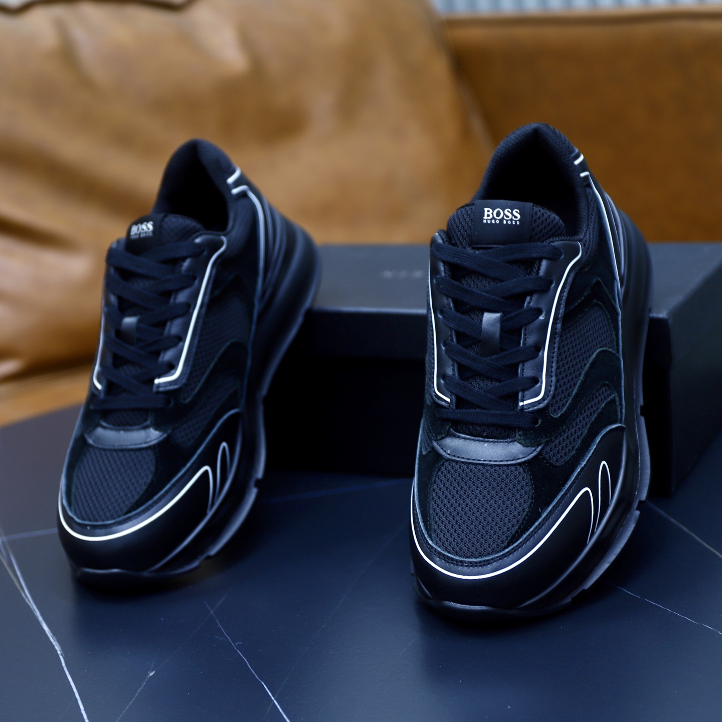 这款鞋子是AAAAA 1:1 质量 (非常棒). 使用了和原版一模一样的材料. 商标部分也保持了和BOSS一样. 图片拍摄是实物鞋子拍摄, 您所收到的实物保证和我们图片一模一样.
