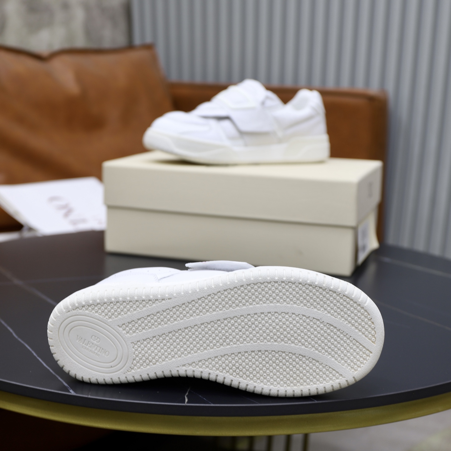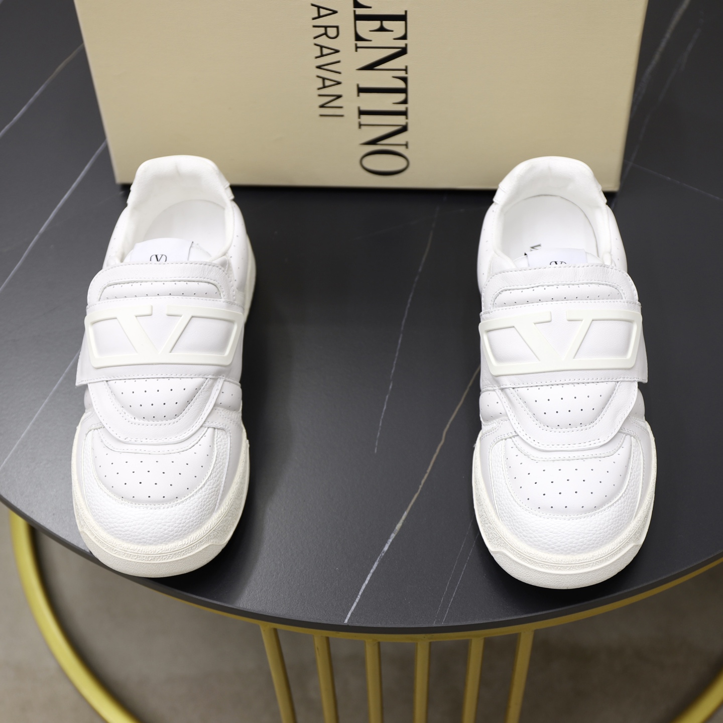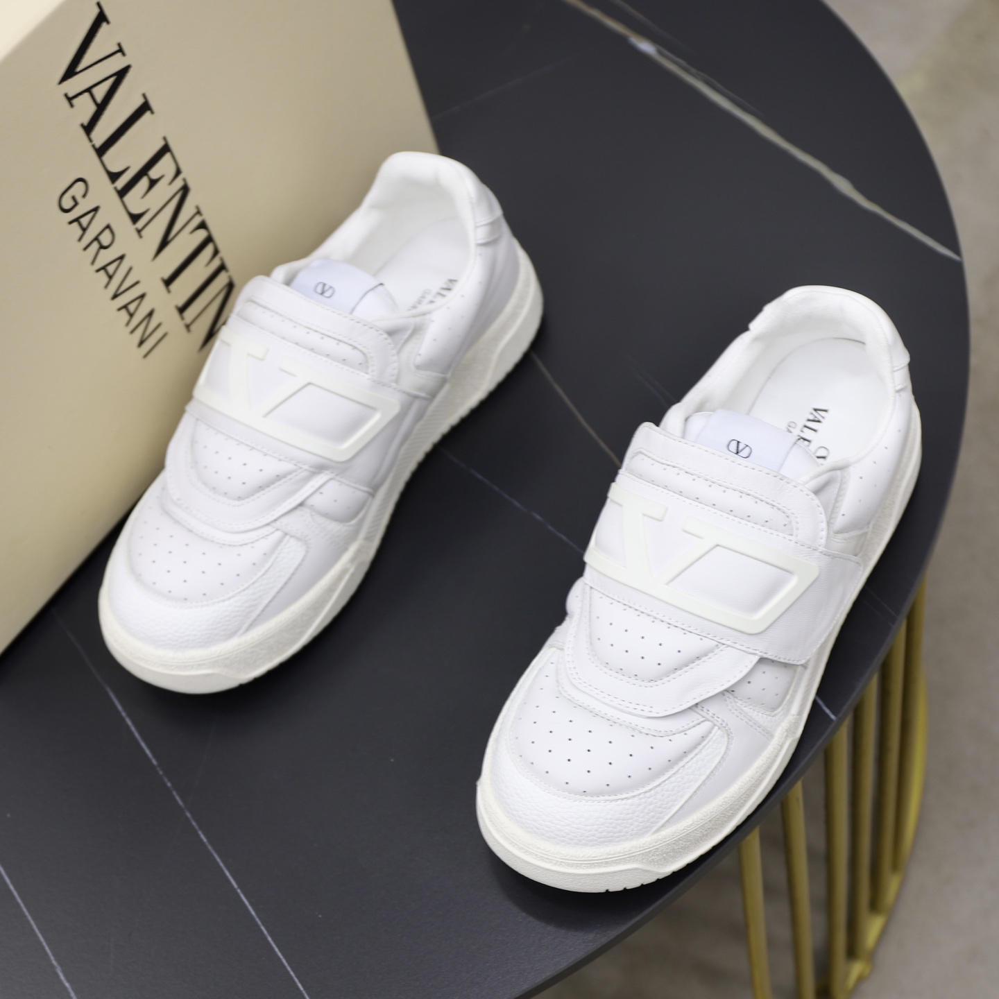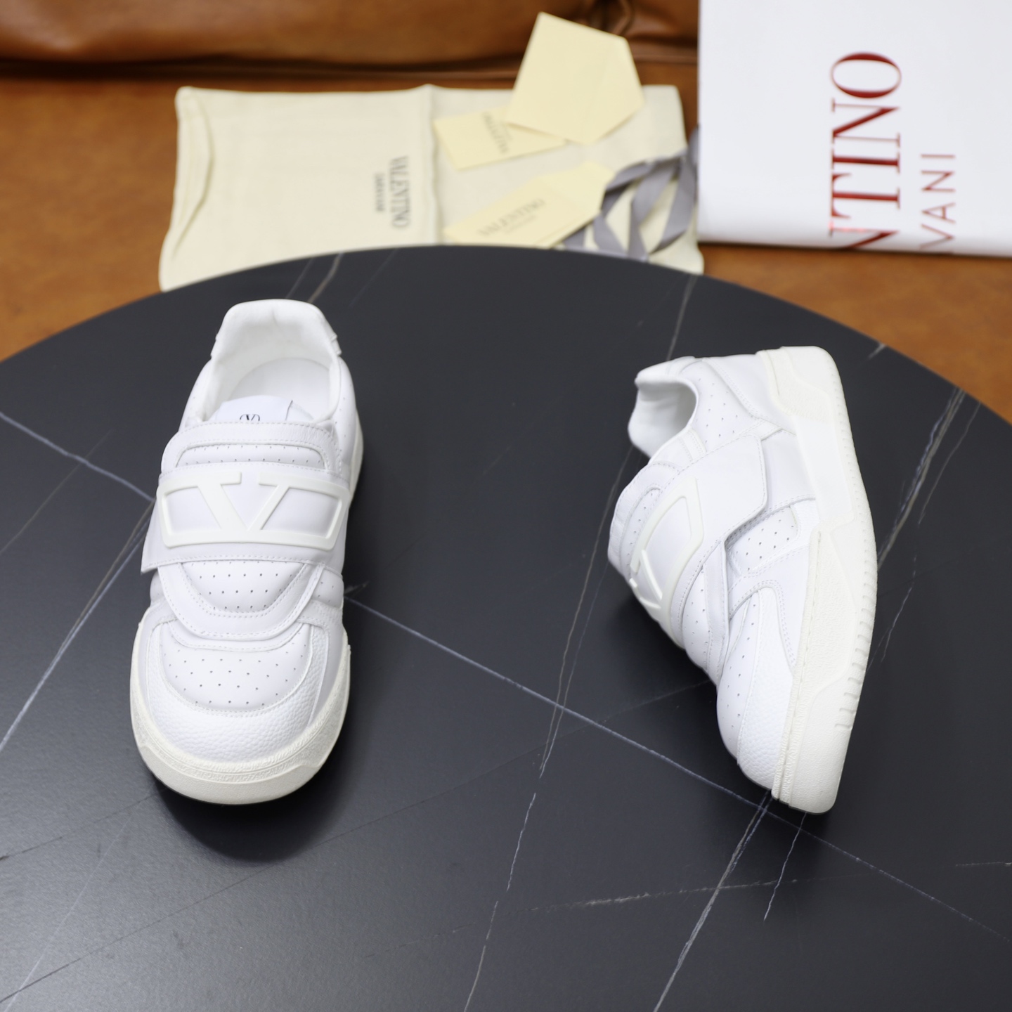 这款鞋子是AAAAA 1:1 质量 (非常棒). 使用了和原版一模一样的材料. 商标部分也保持了和华伦天奴/Valentino一样. 图片拍摄是实物鞋子拍摄, 您所收到的实物保证和我们图片一模一样.