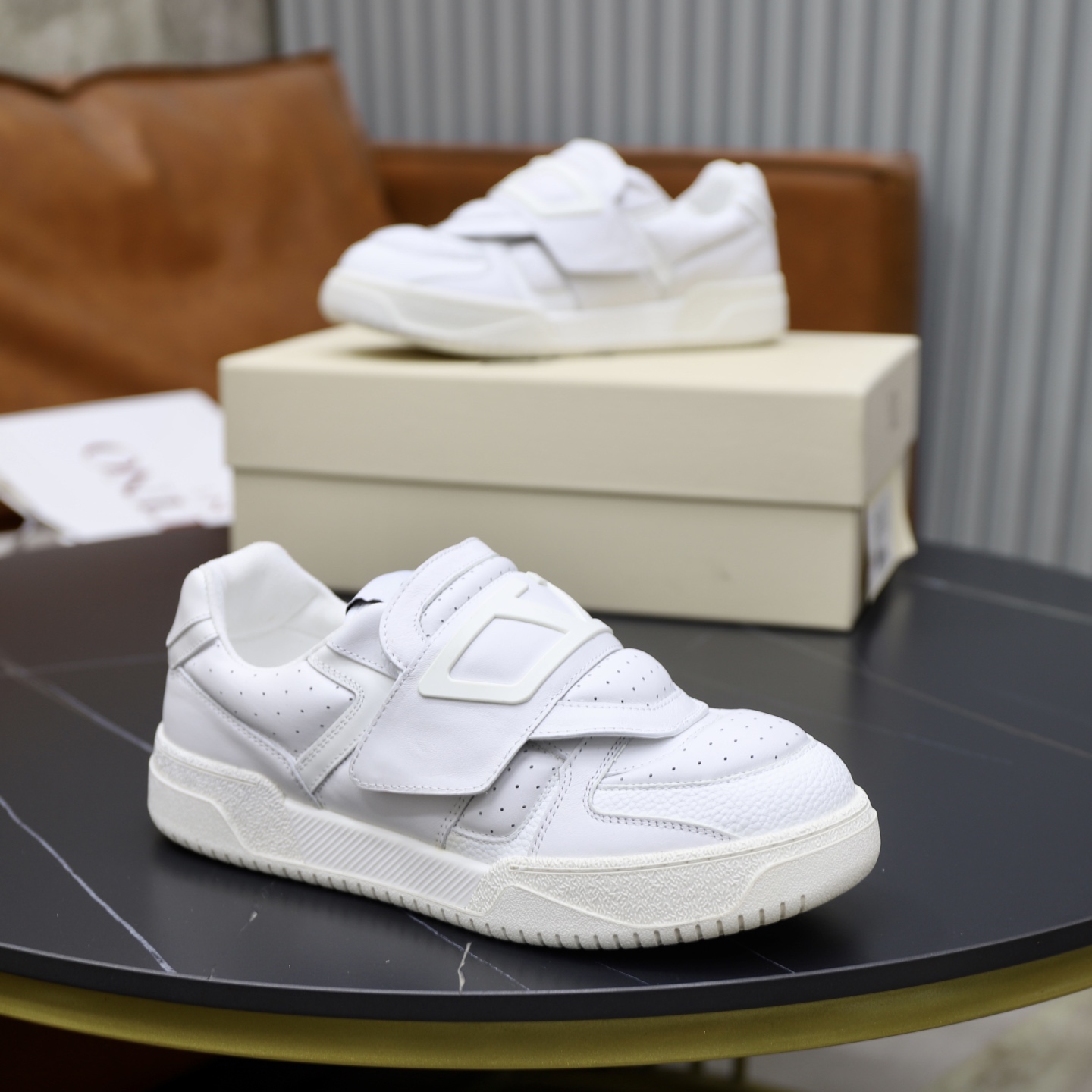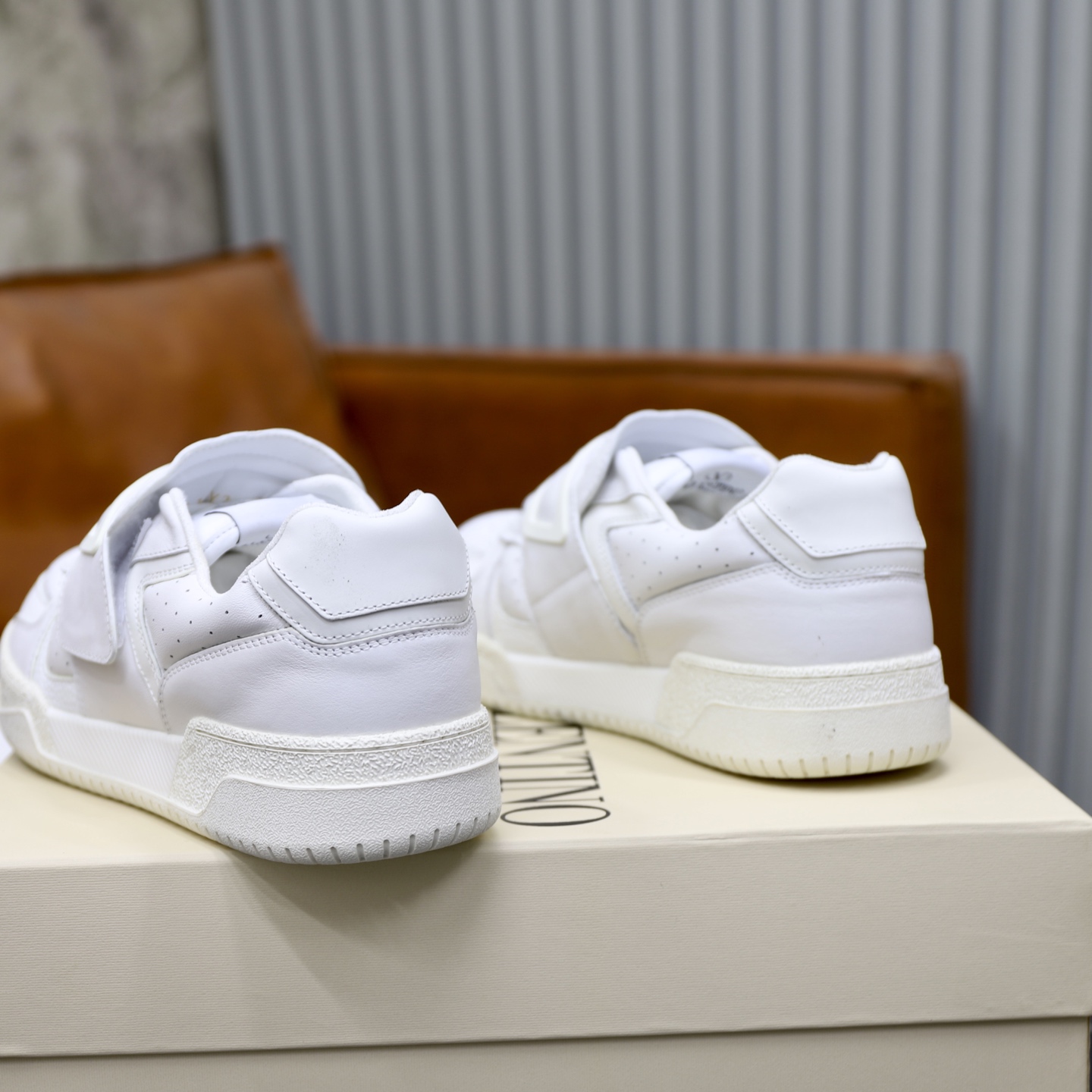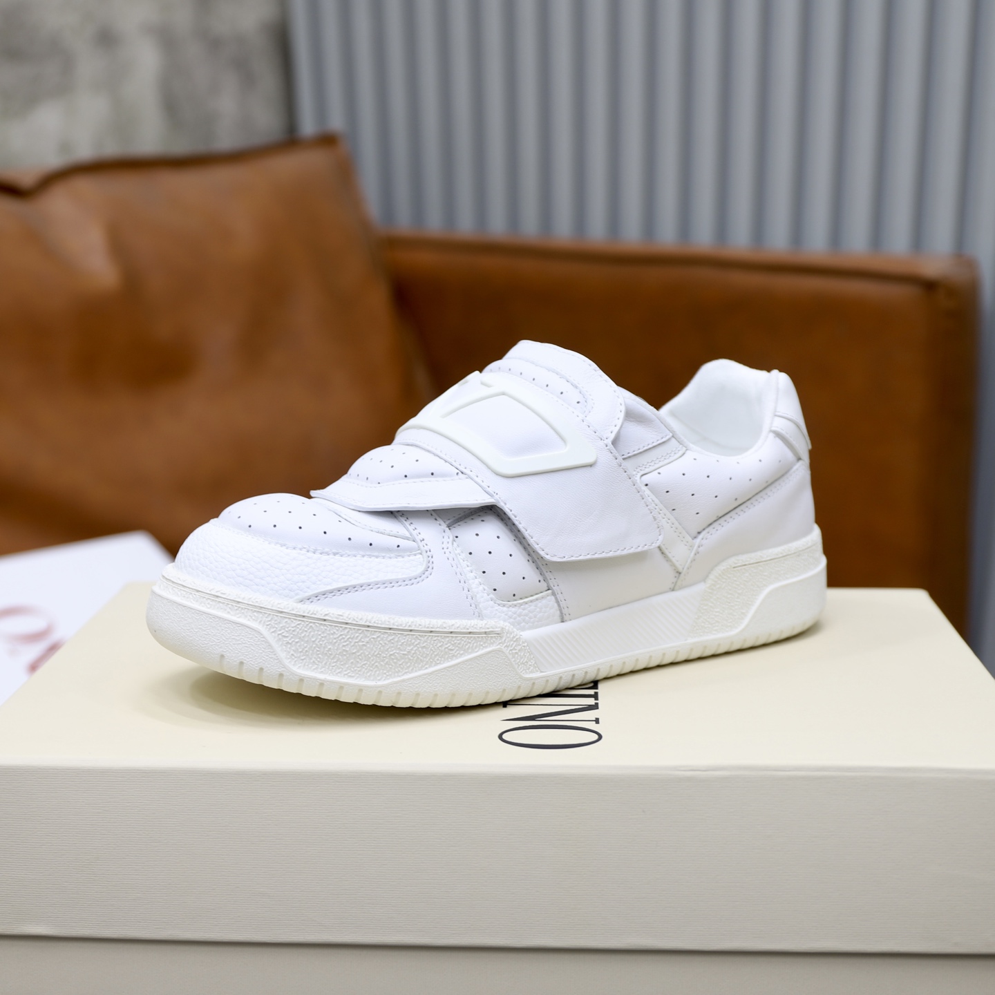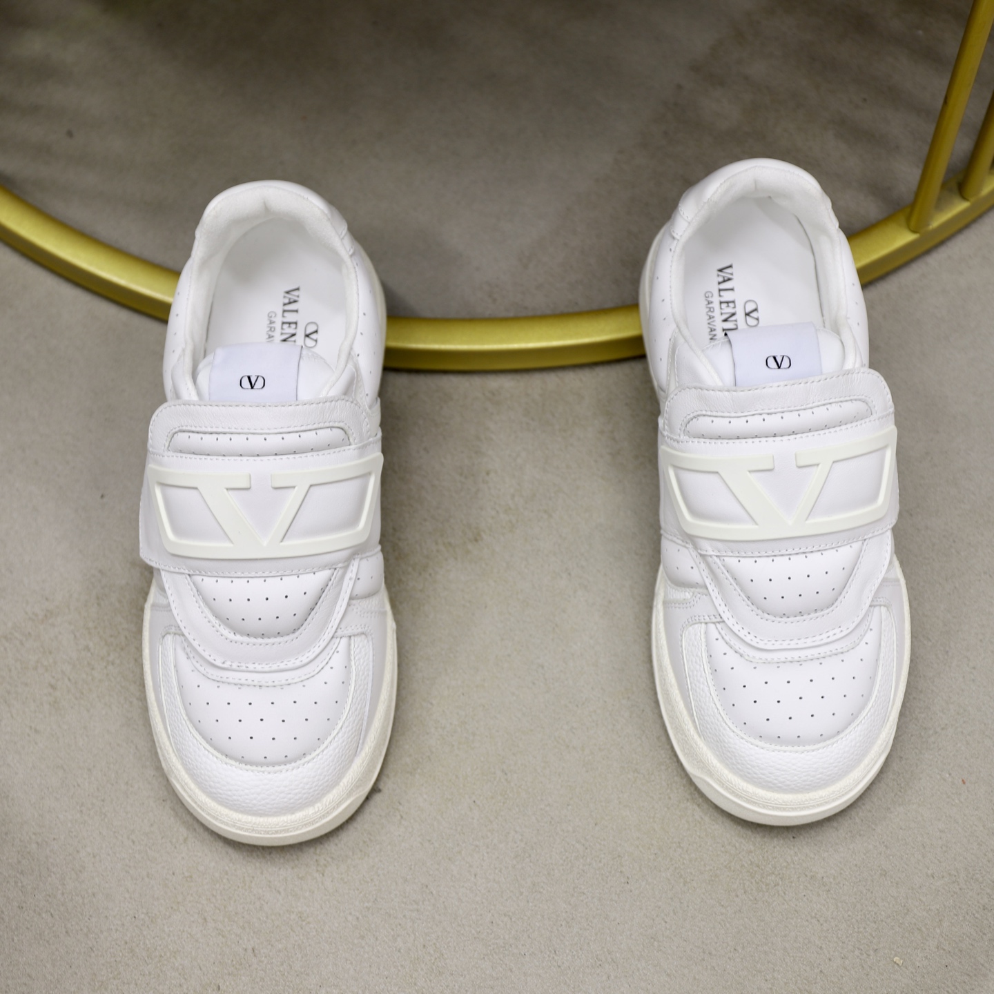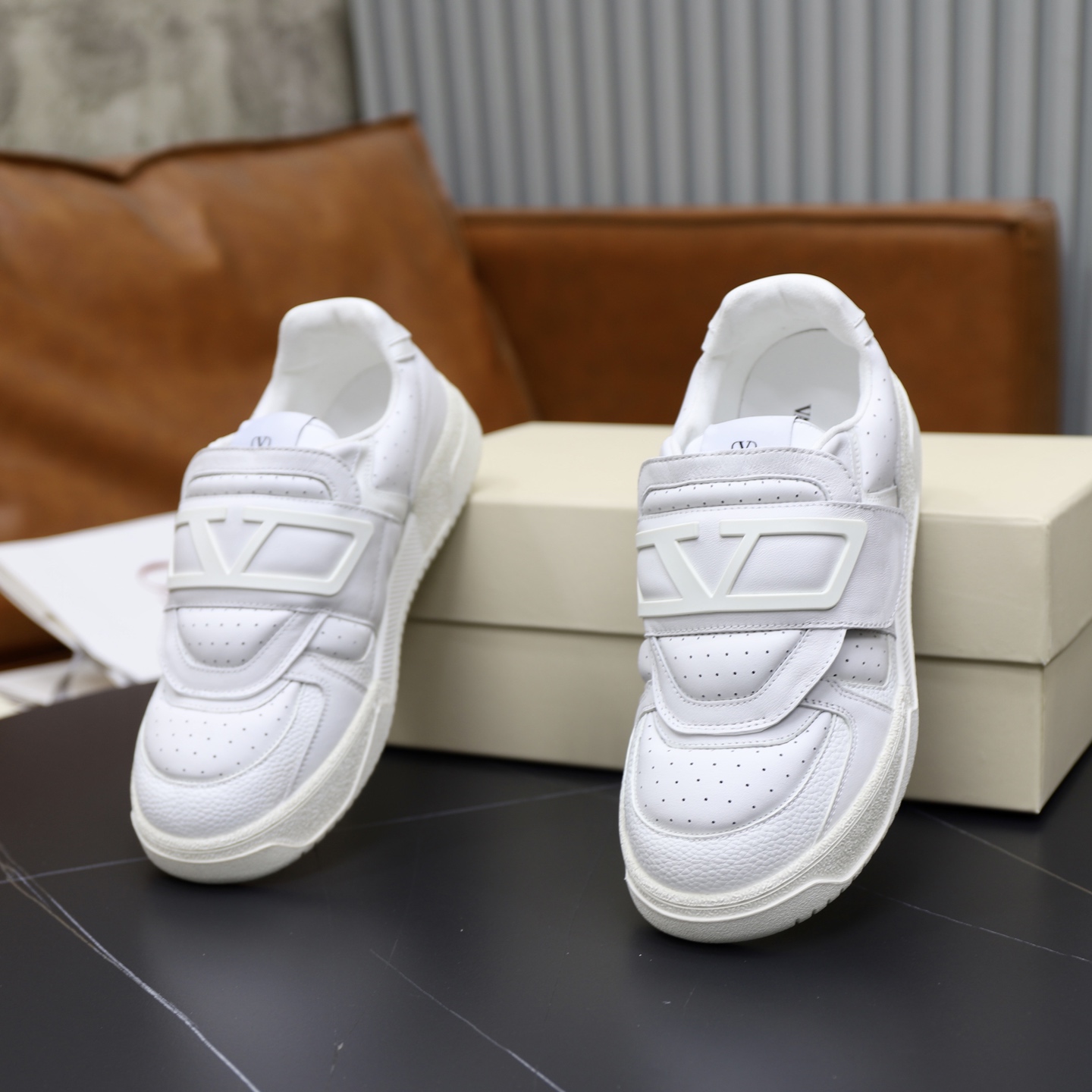 这款鞋子是AAAAA 1:1 质量 (非常棒). 使用了和原版一模一样的材料. 商标部分也保持了和华伦天奴/Valentino一样. 图片拍摄是实物鞋子拍摄, 您所收到的实物保证和我们图片一模一样.