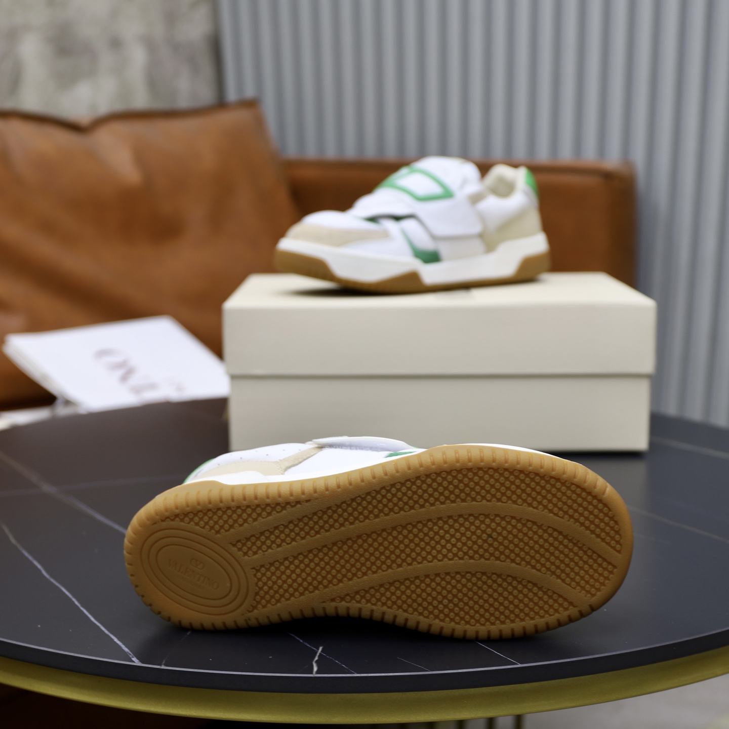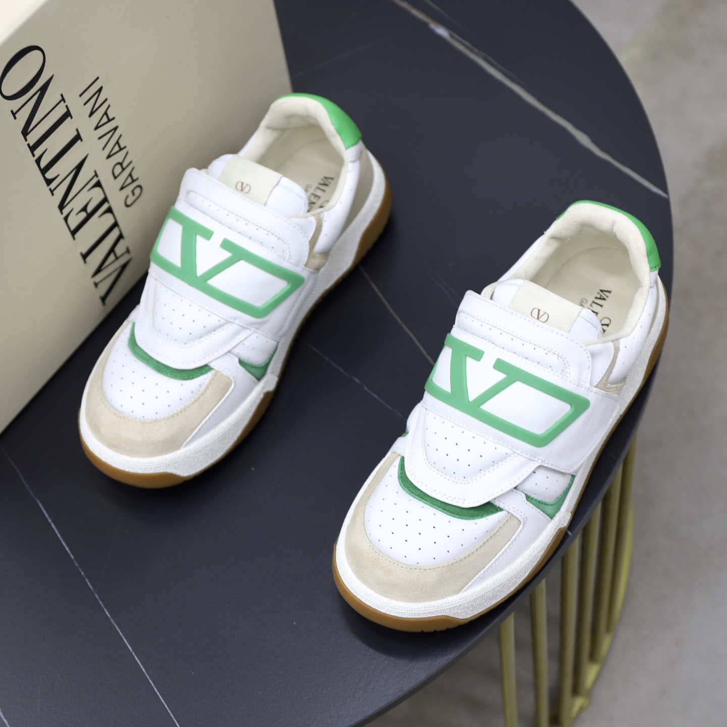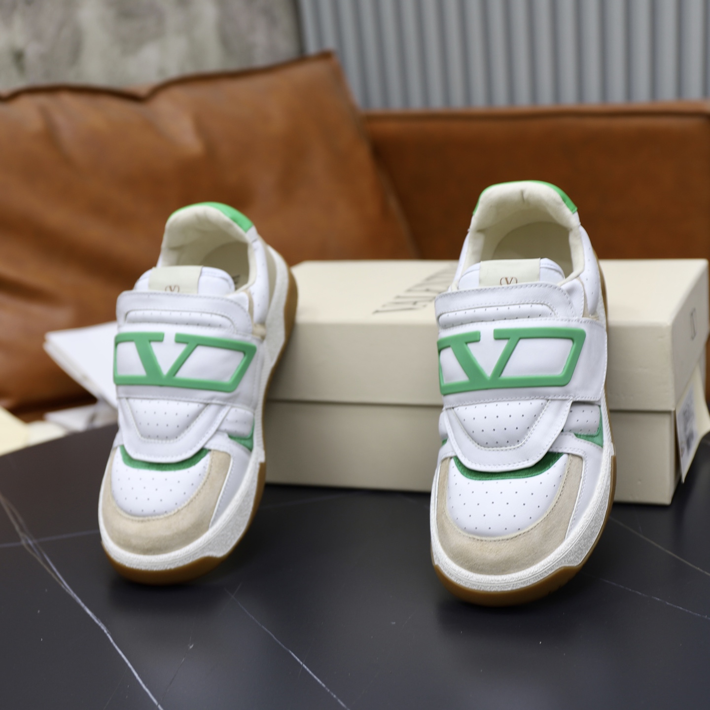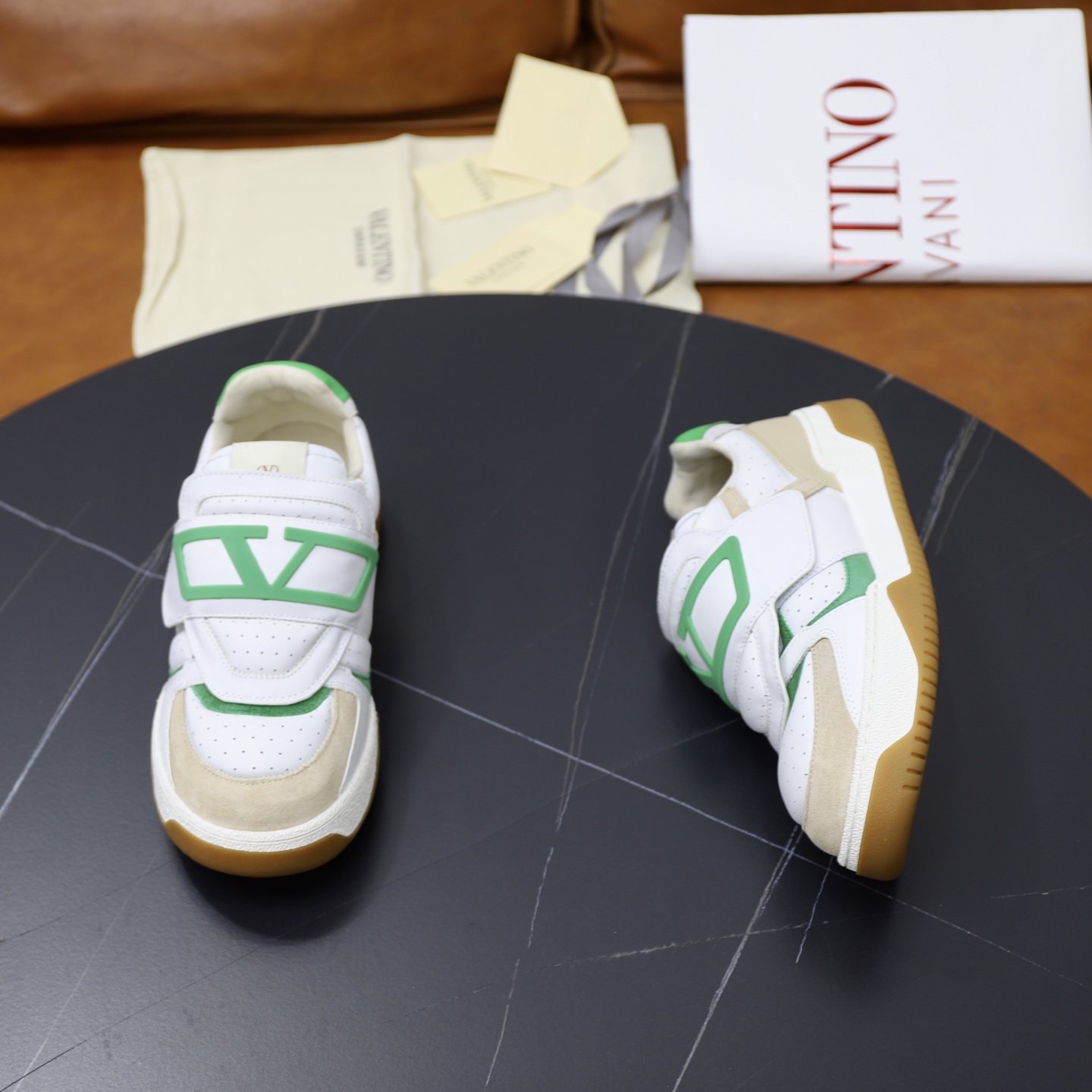 这款鞋子是AAAAA 1:1 质量 (非常棒). 使用了和原版一模一样的材料. 商标部分也保持了和华伦天奴/Valentino一样. 图片拍摄是实物鞋子拍摄, 您所收到的实物保证和我们图片一模一样.