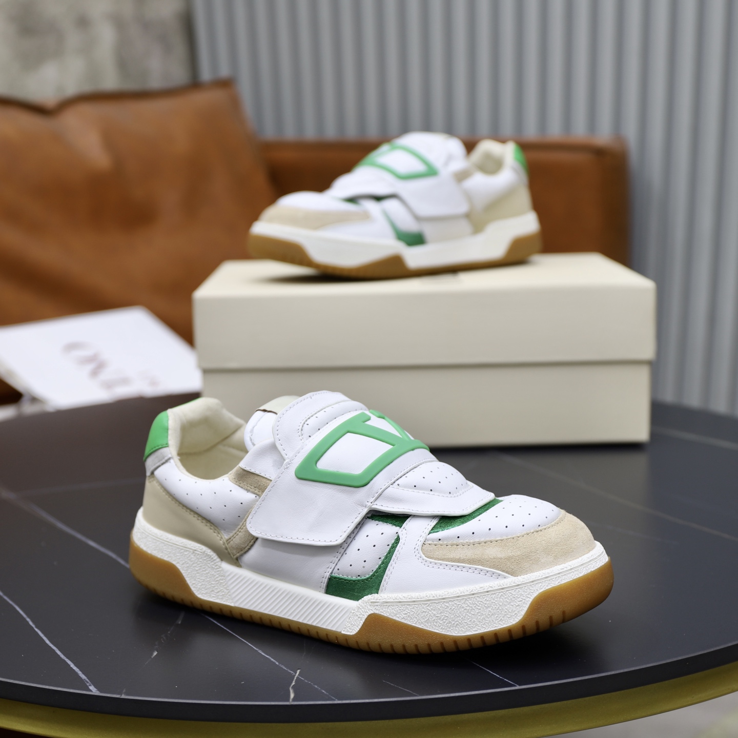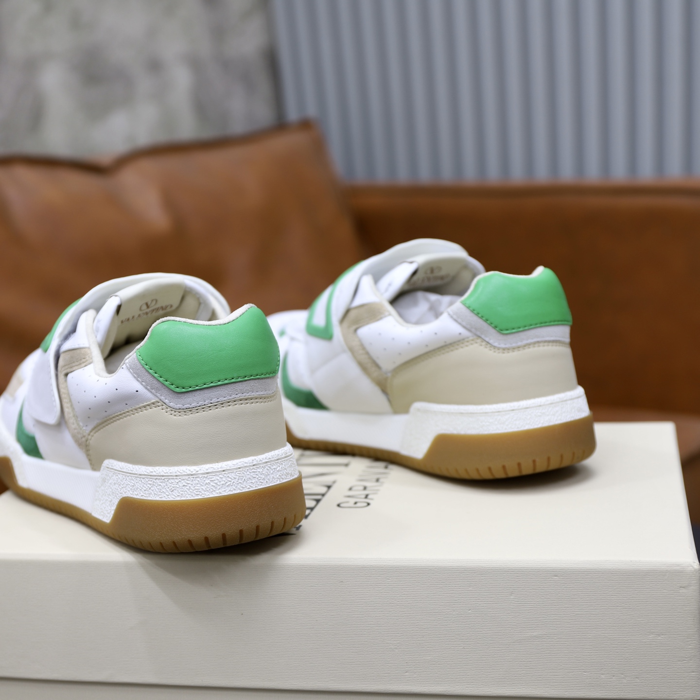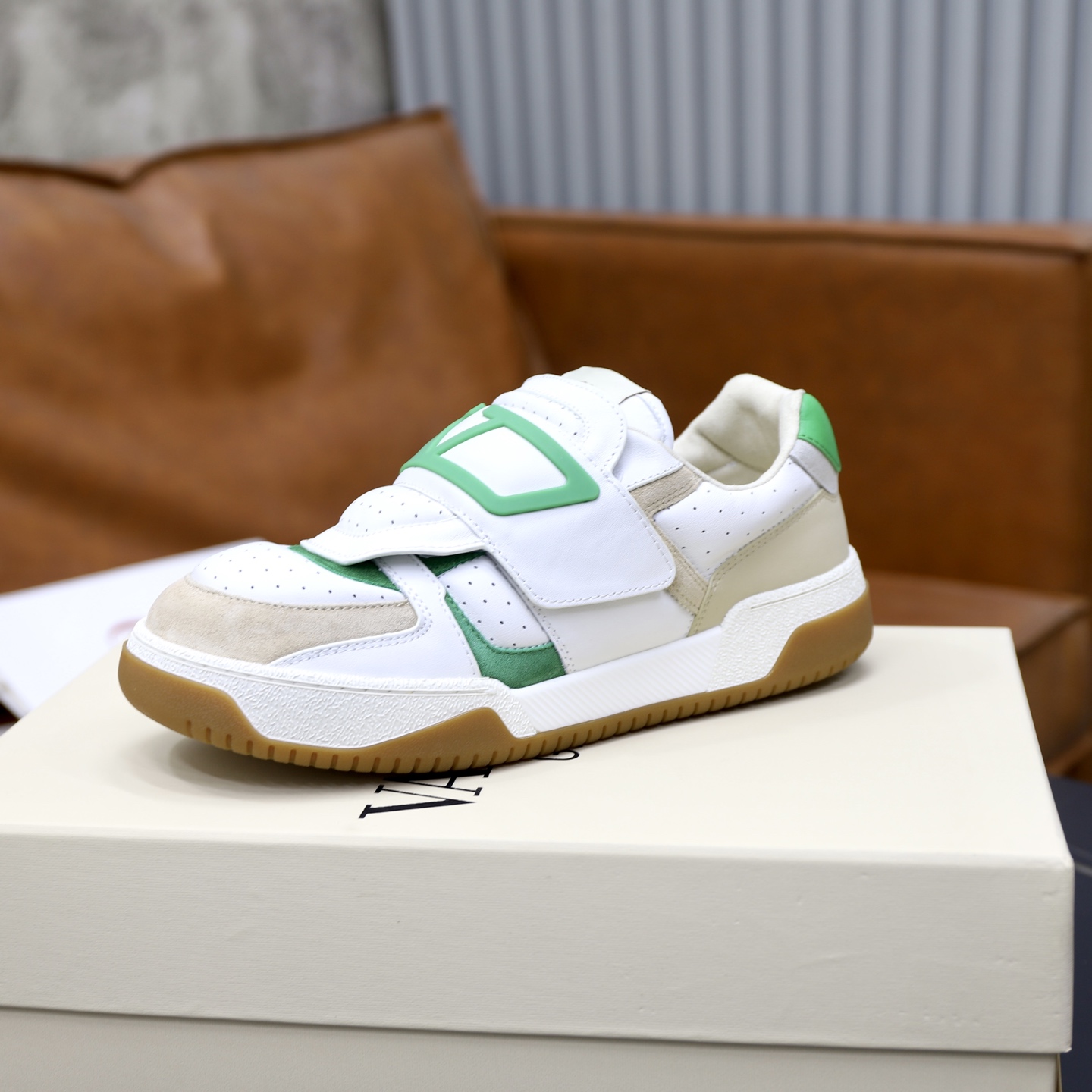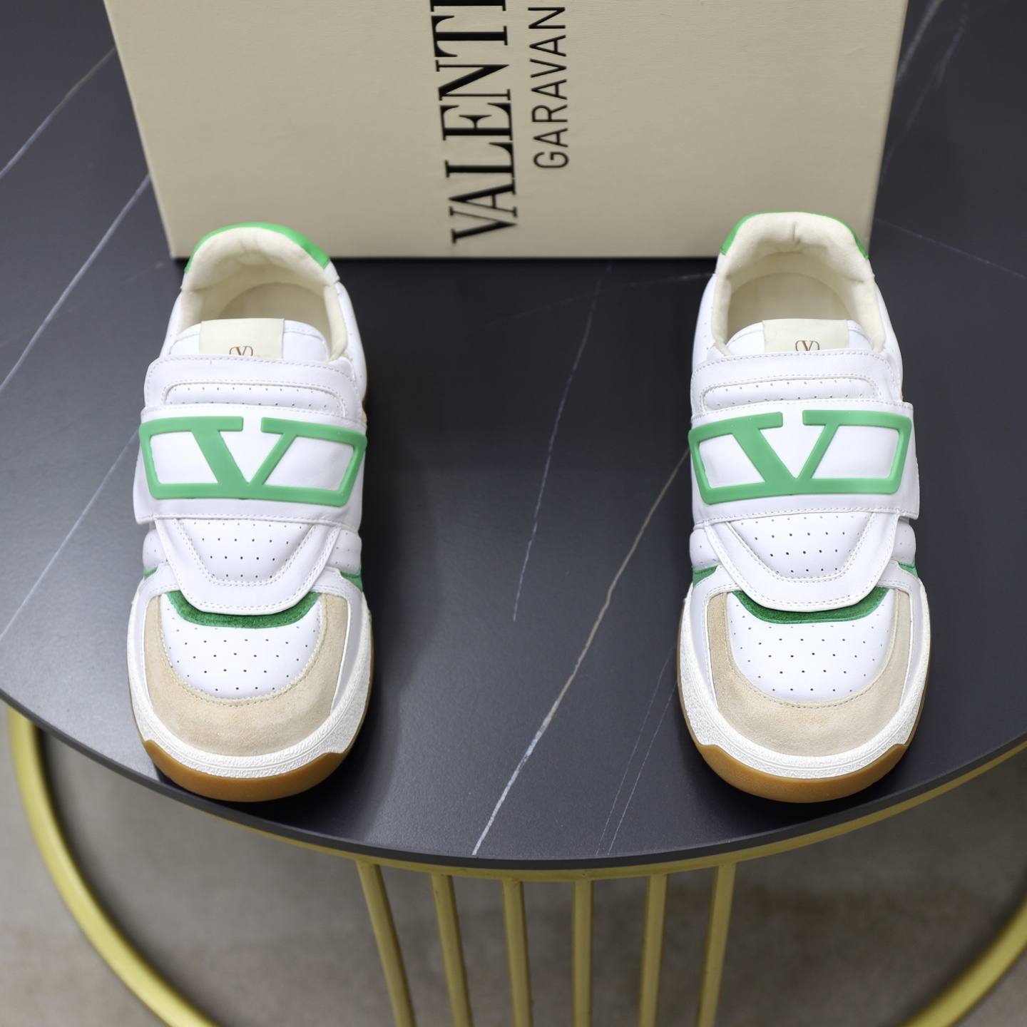 这款鞋子是AAAAA 1:1 质量 (非常棒). 使用了和原版一模一样的材料. 商标部分也保持了和华伦天奴/Valentino一样. 图片拍摄是实物鞋子拍摄, 您所收到的实物保证和我们图片一模一样.