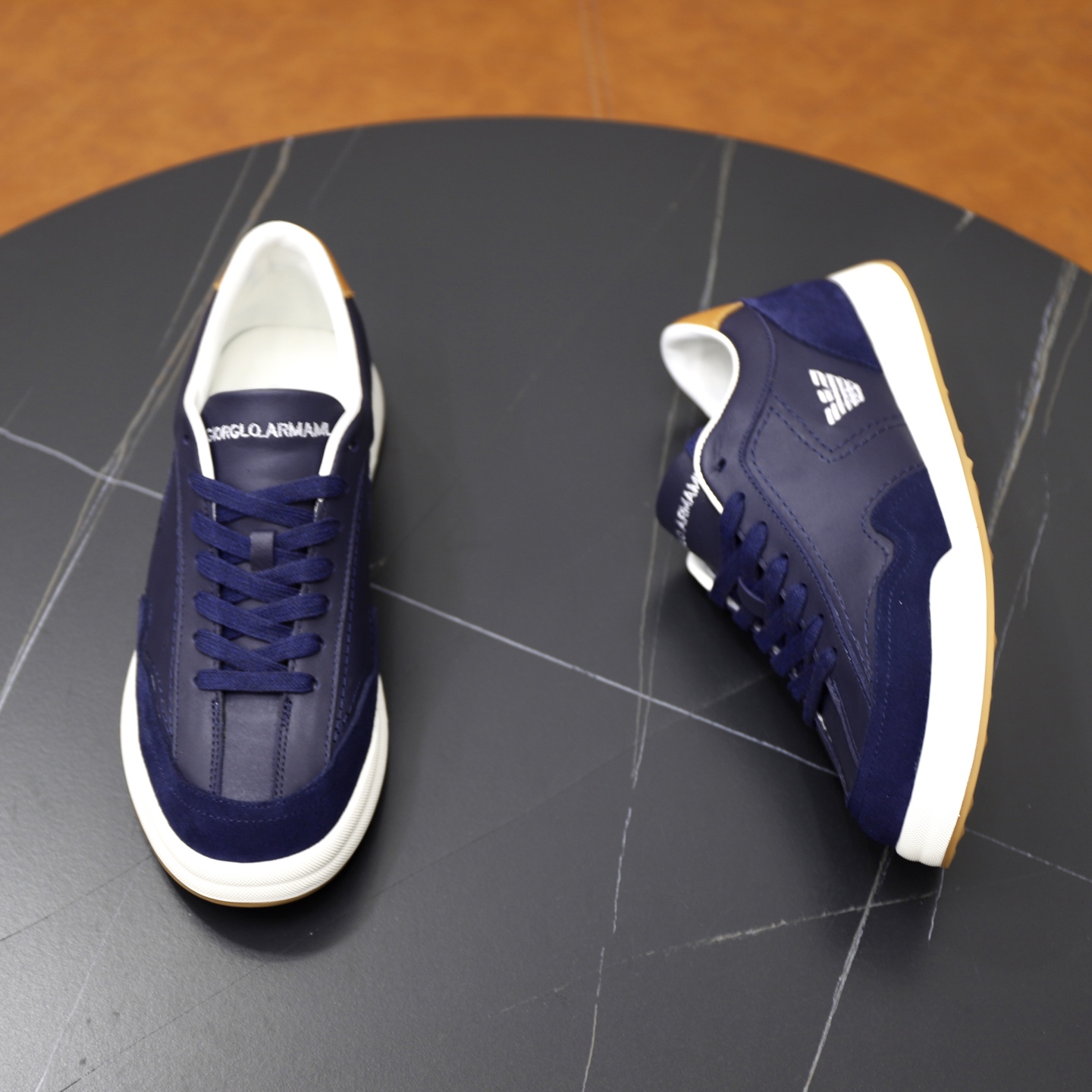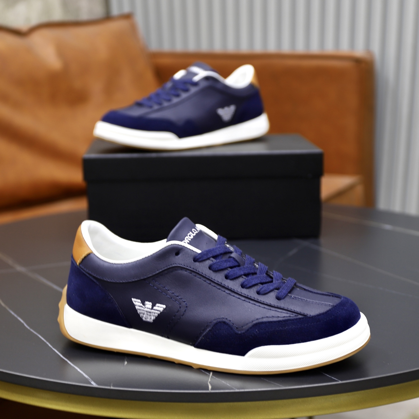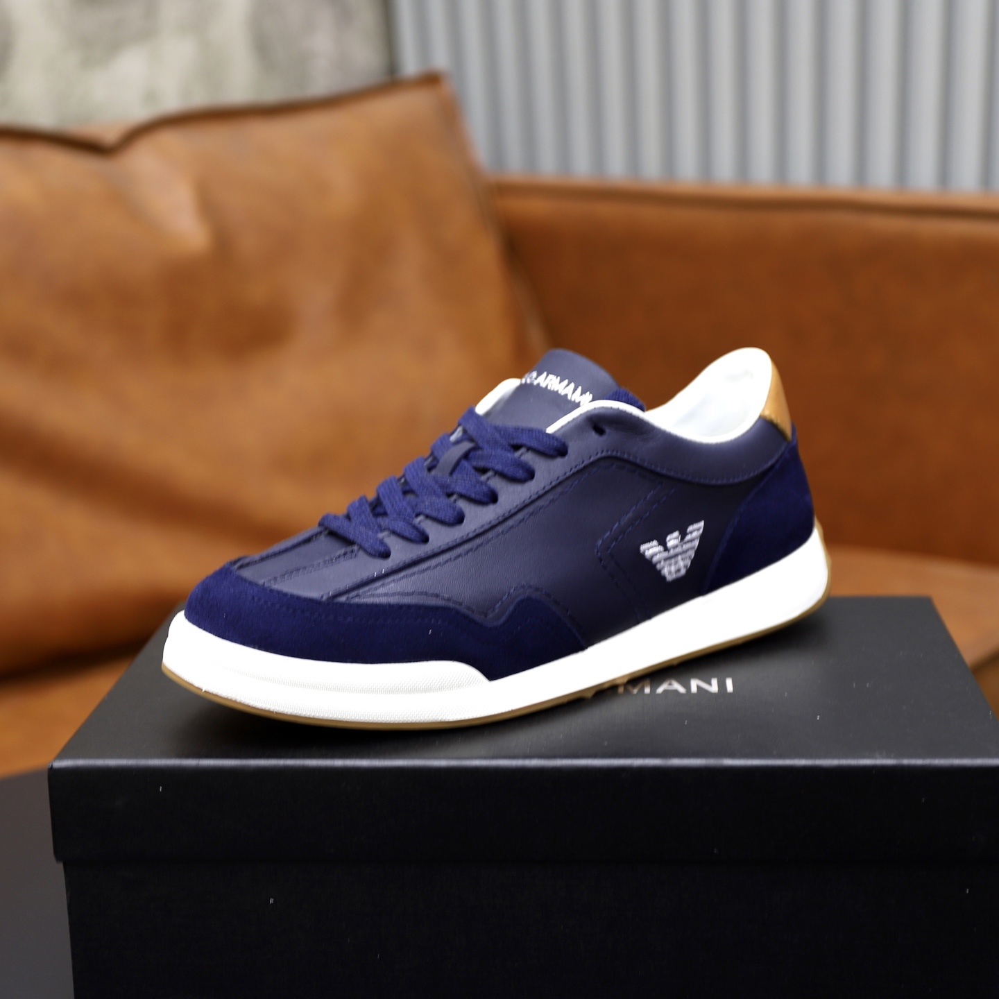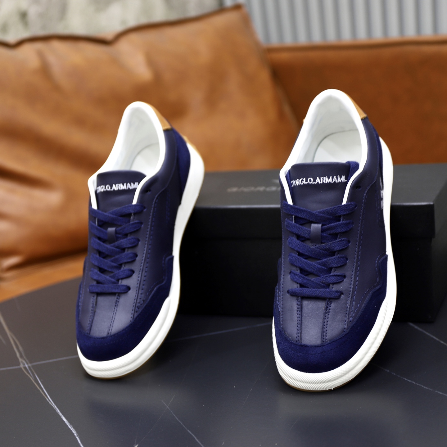 这款鞋子是AAAAA 1:1 质量 (非常棒). 使用了和原版一模一样的材料. 商标部分也保持了和阿玛尼/Armani一样. 图片拍摄是实物鞋子拍摄, 您所收到的实物保证和我们图片一模一样.