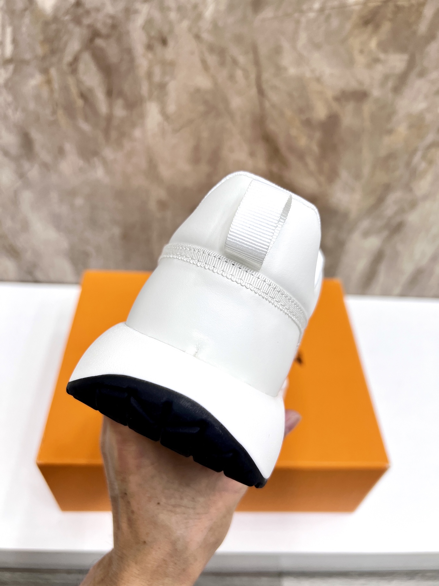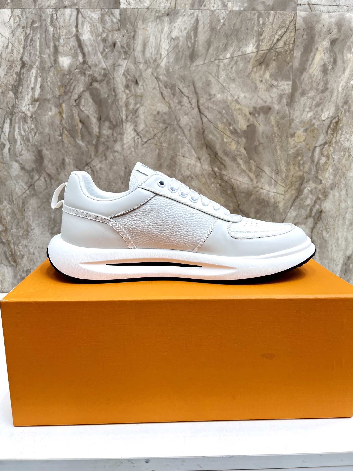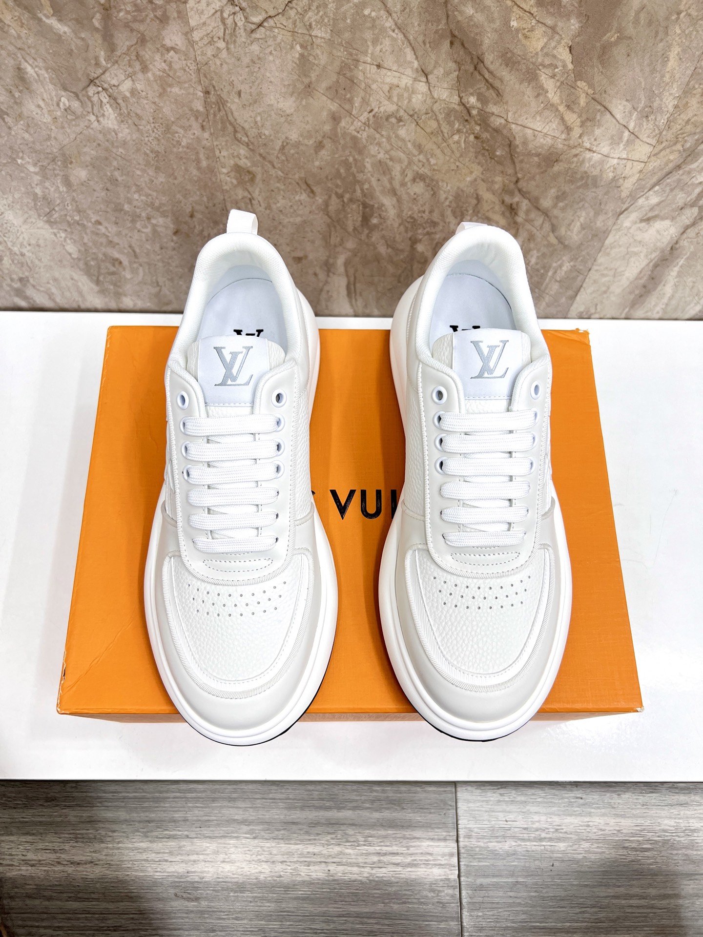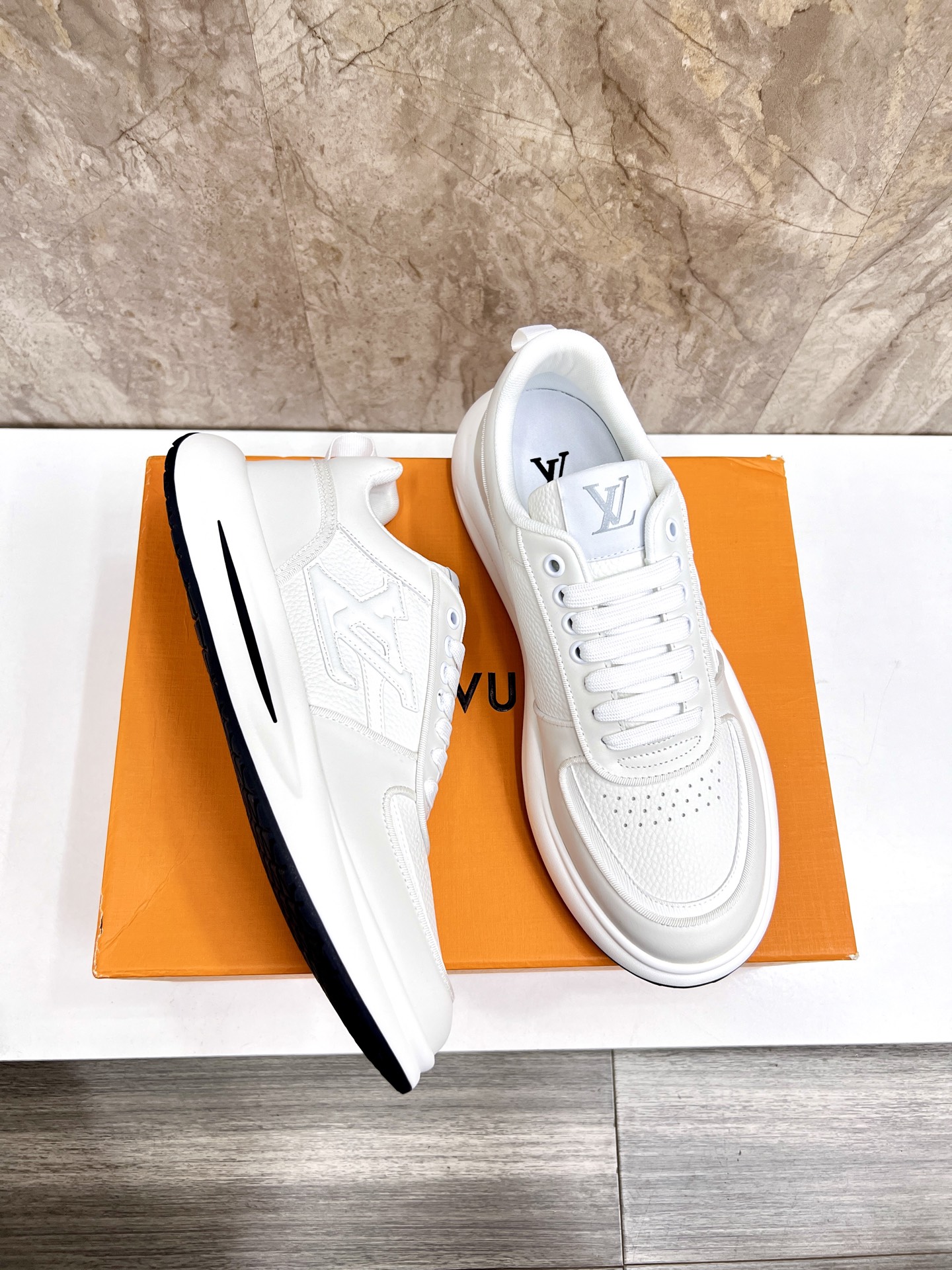 这款鞋子是AAAAA 1:1 质量 (非常棒). 使用了和原版一模一样的材料. 商标部分也保持了和路易威登/Louis Vuitton一样. 图片拍摄是实物鞋子拍摄, 您所收到的实物保证和我们图片一模一样.