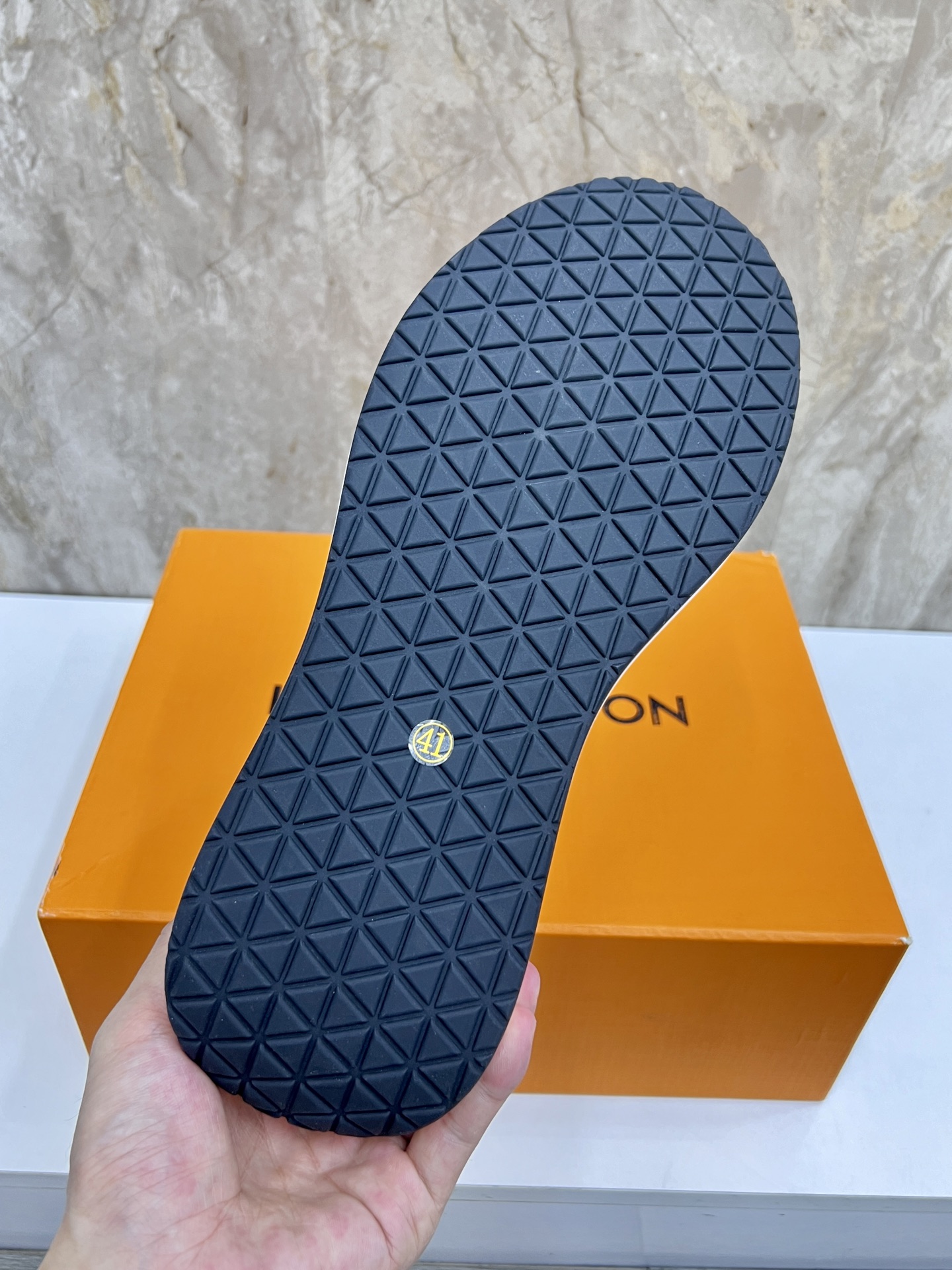 这款鞋子是AAAAA 1:1 质量 (非常棒). 使用了和原版一模一样的材料. 商标部分也保持了和路易威登/Louis Vuitton一样. 图片拍摄是实物鞋子拍摄, 您所收到的实物保证和我们图片一模一样.