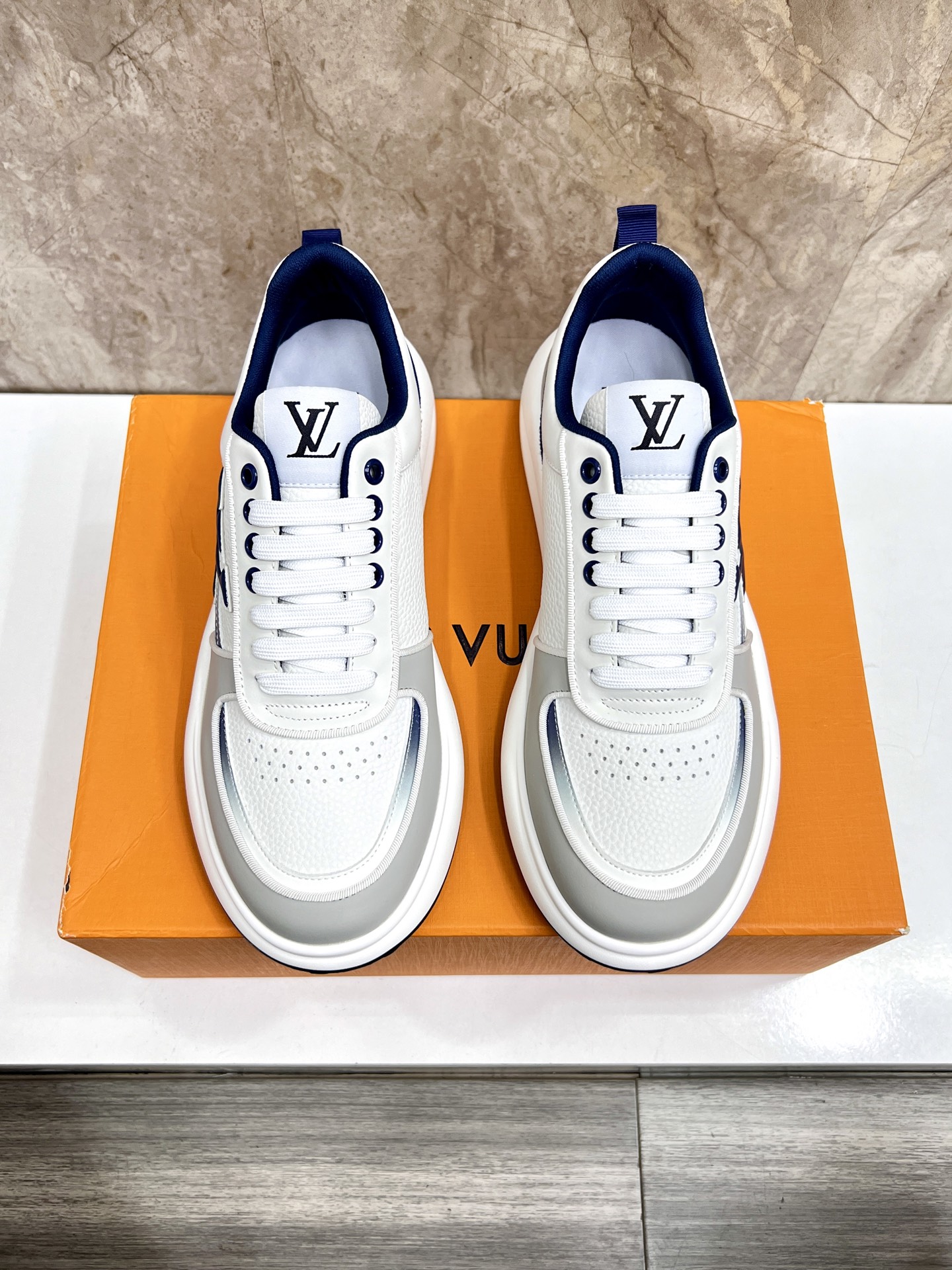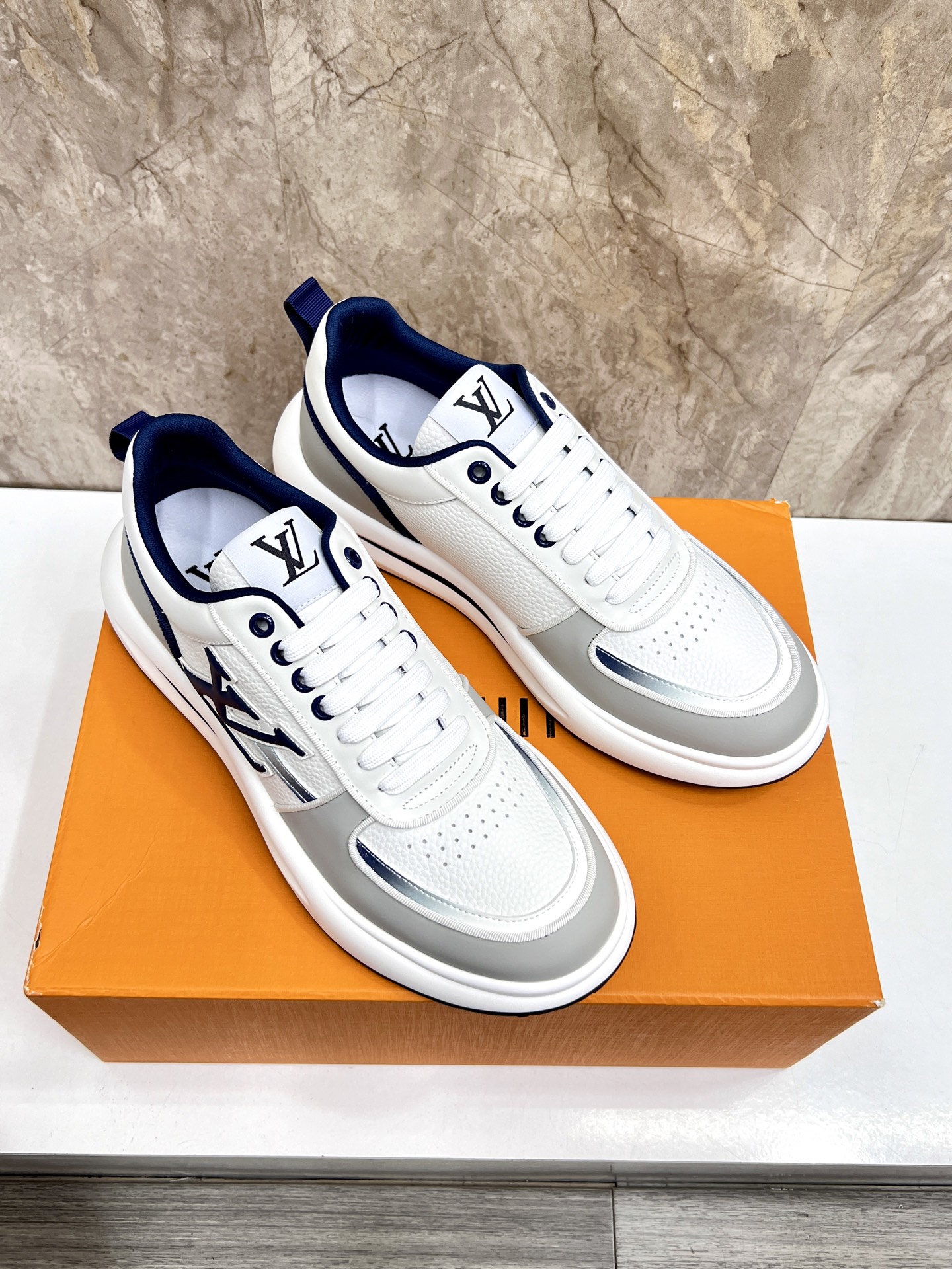 这款鞋子是AAAAA 1:1 质量 (非常棒). 使用了和原版一模一样的材料. 商标部分也保持了和路易威登/Louis Vuitton一样. 图片拍摄是实物鞋子拍摄, 您所收到的实物保证和我们图片一模一样.