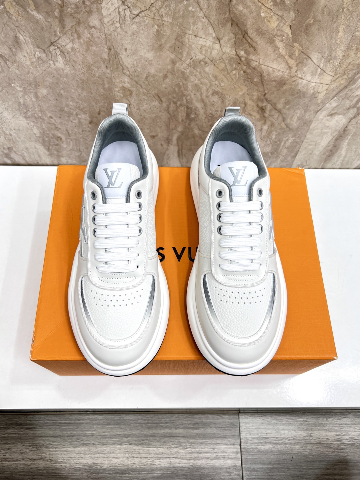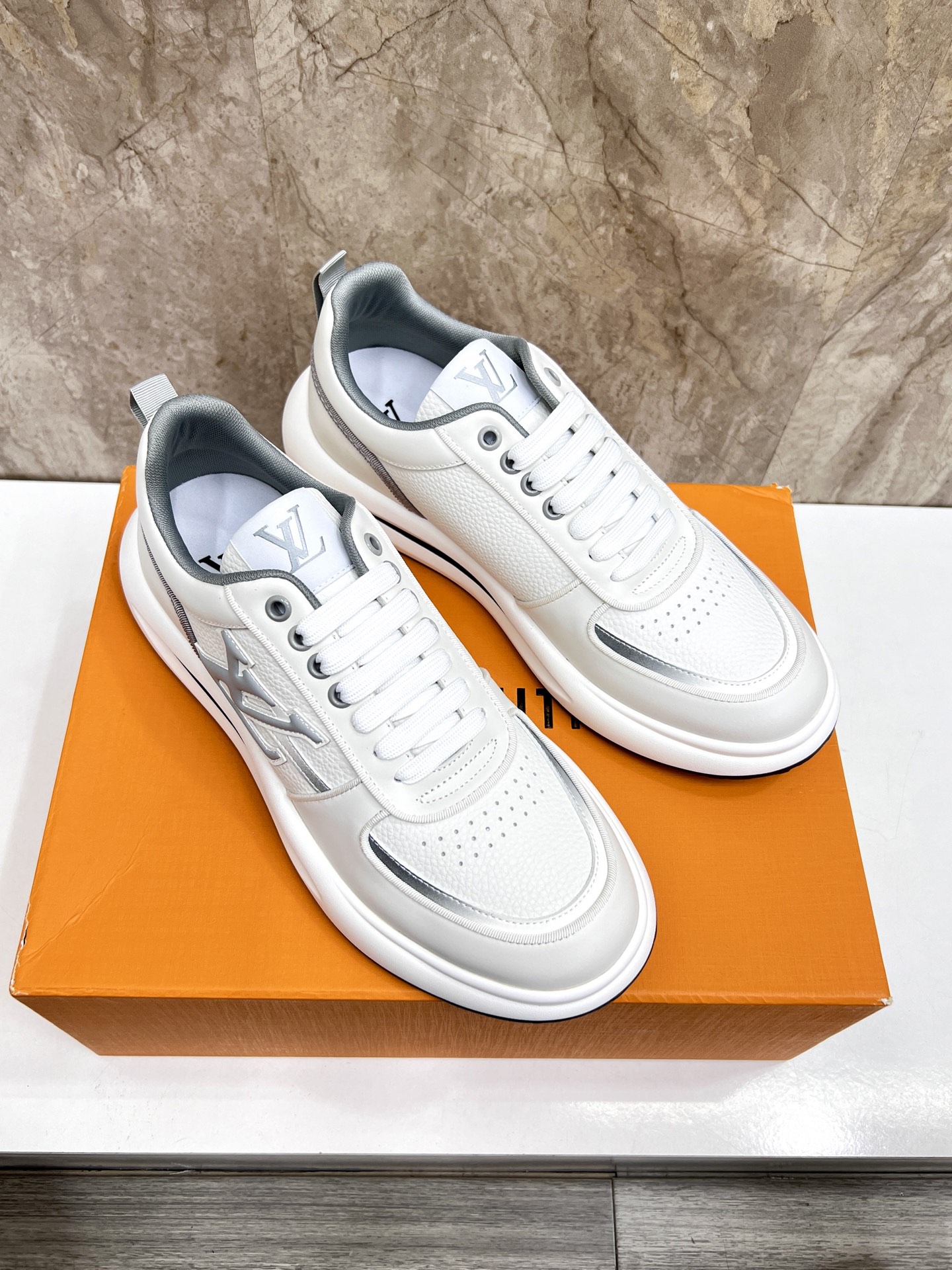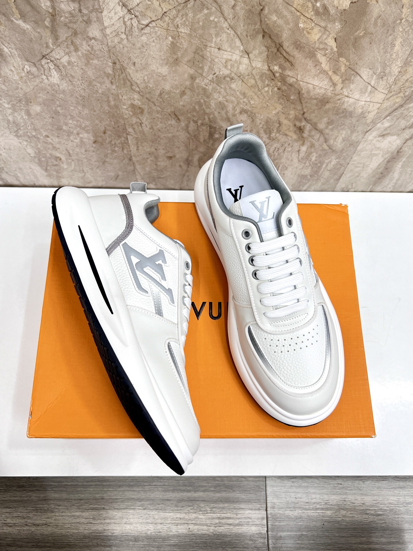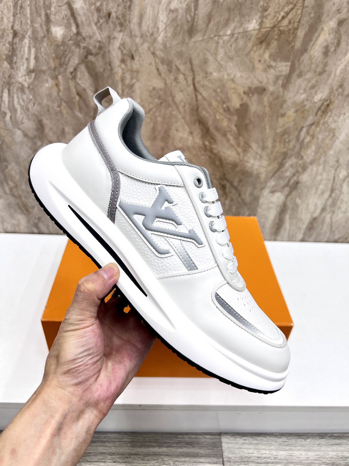 这款鞋子是AAAAA 1:1 质量 (非常棒). 使用了和原版一模一样的材料. 商标部分也保持了和路易威登/Louis Vuitton一样. 图片拍摄是实物鞋子拍摄, 您所收到的实物保证和我们图片一模一样.