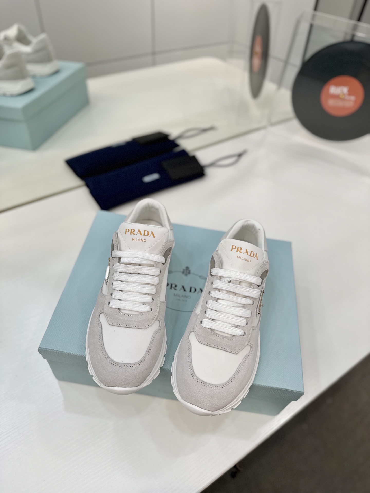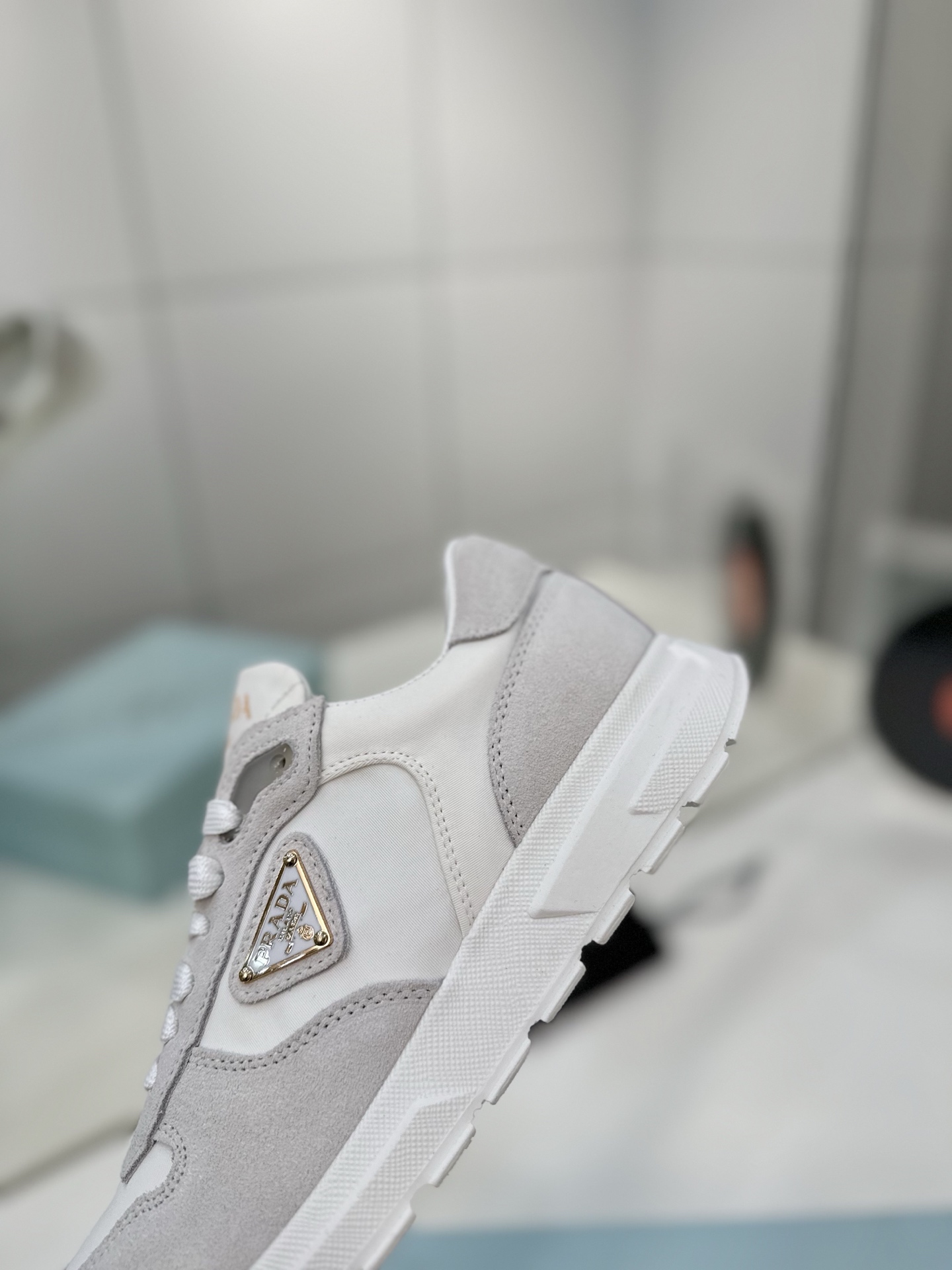 这款鞋子是AAAAA 1:1 质量 (非常棒). 使用了和原版一模一样的材料. 商标部分也保持了和普拉达/Prada一样. 图片拍摄是实物鞋子拍摄, 您所收到的实物保证和我们图片一模一样.