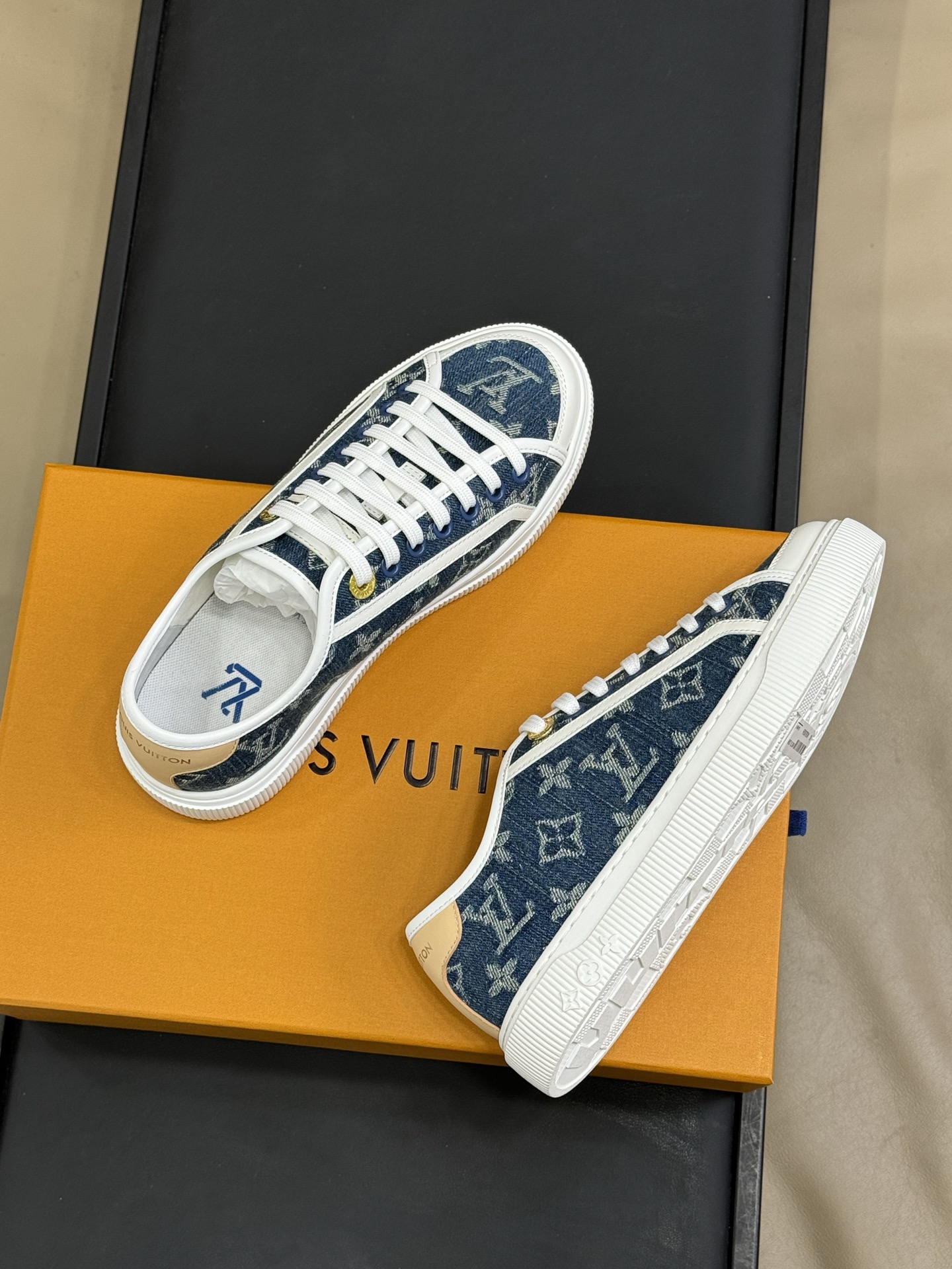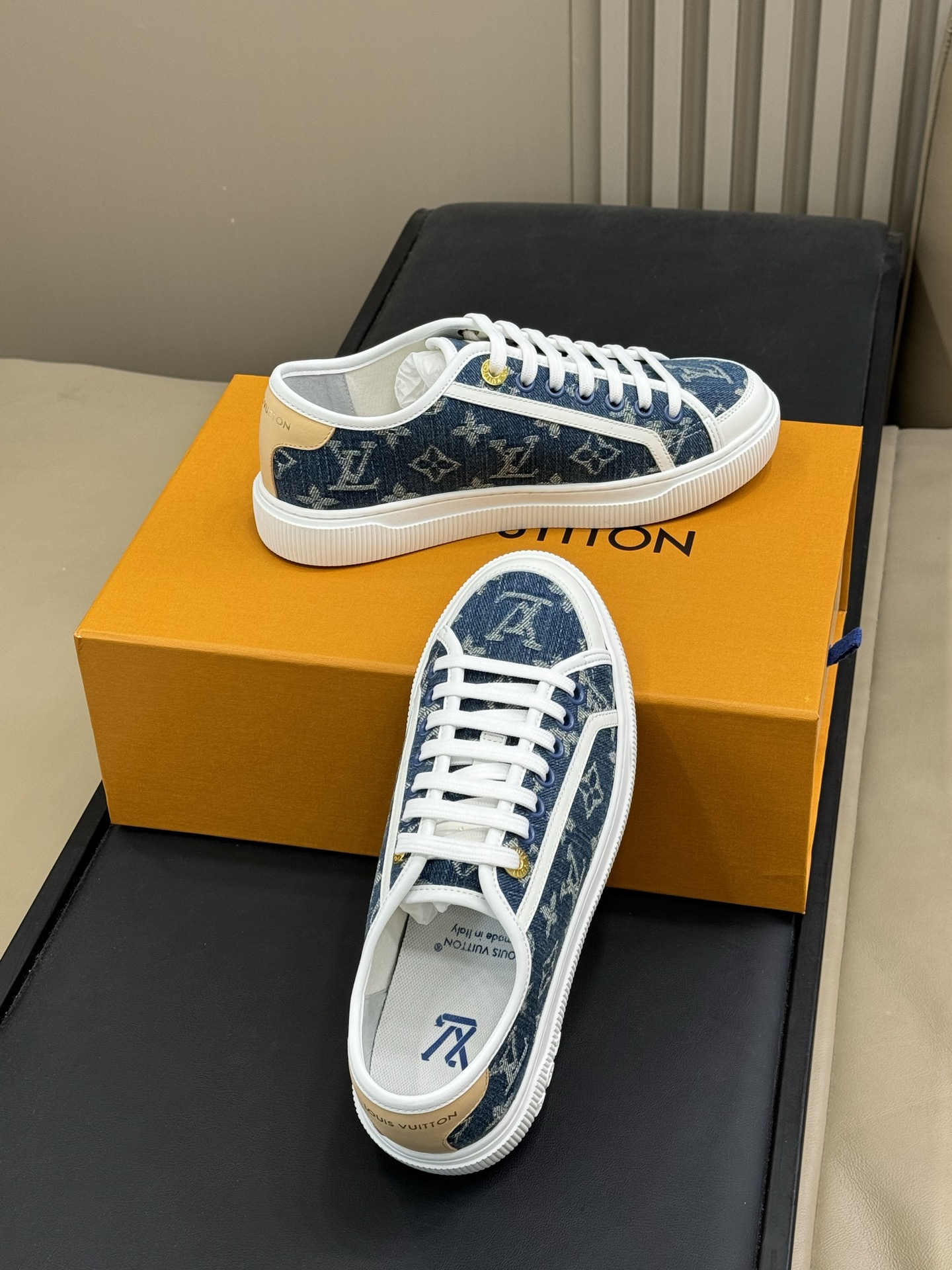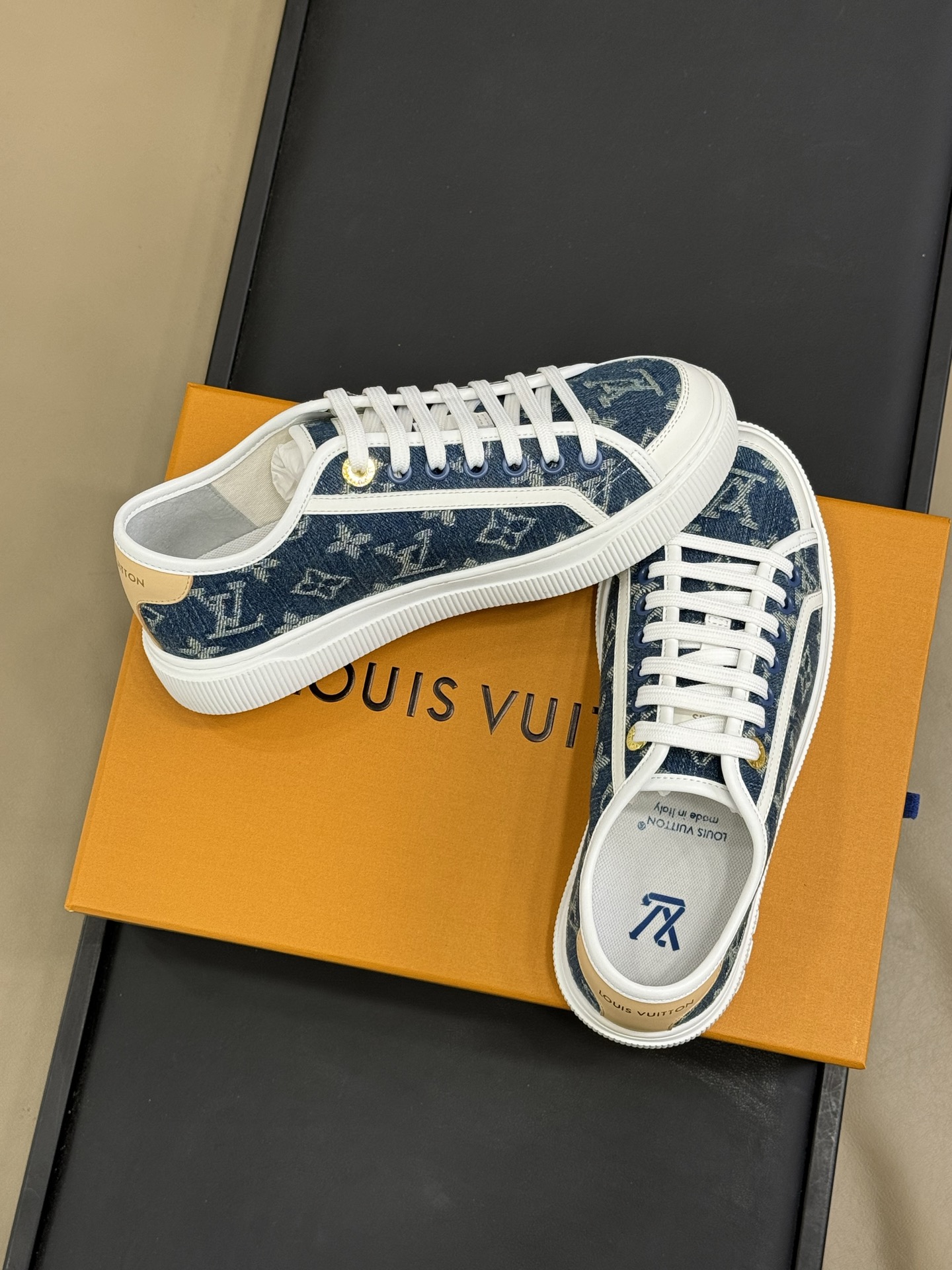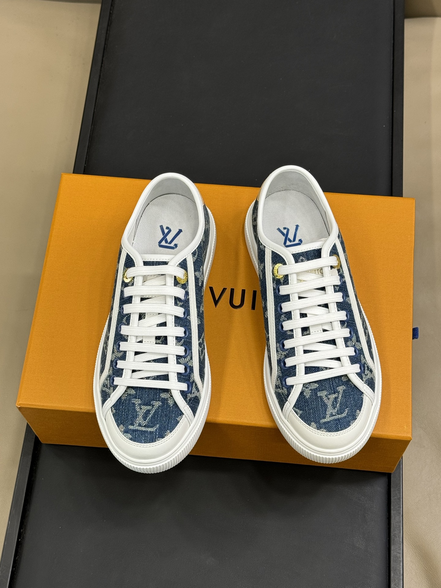 这款鞋子是AAAAA 1:1 质量 (非常棒). 使用了和原版一模一样的材料. 商标部分也保持了和路易威登/Louis Vuitton一样. 图片拍摄是实物鞋子拍摄, 您所收到的实物保证和我们图片一模一样.