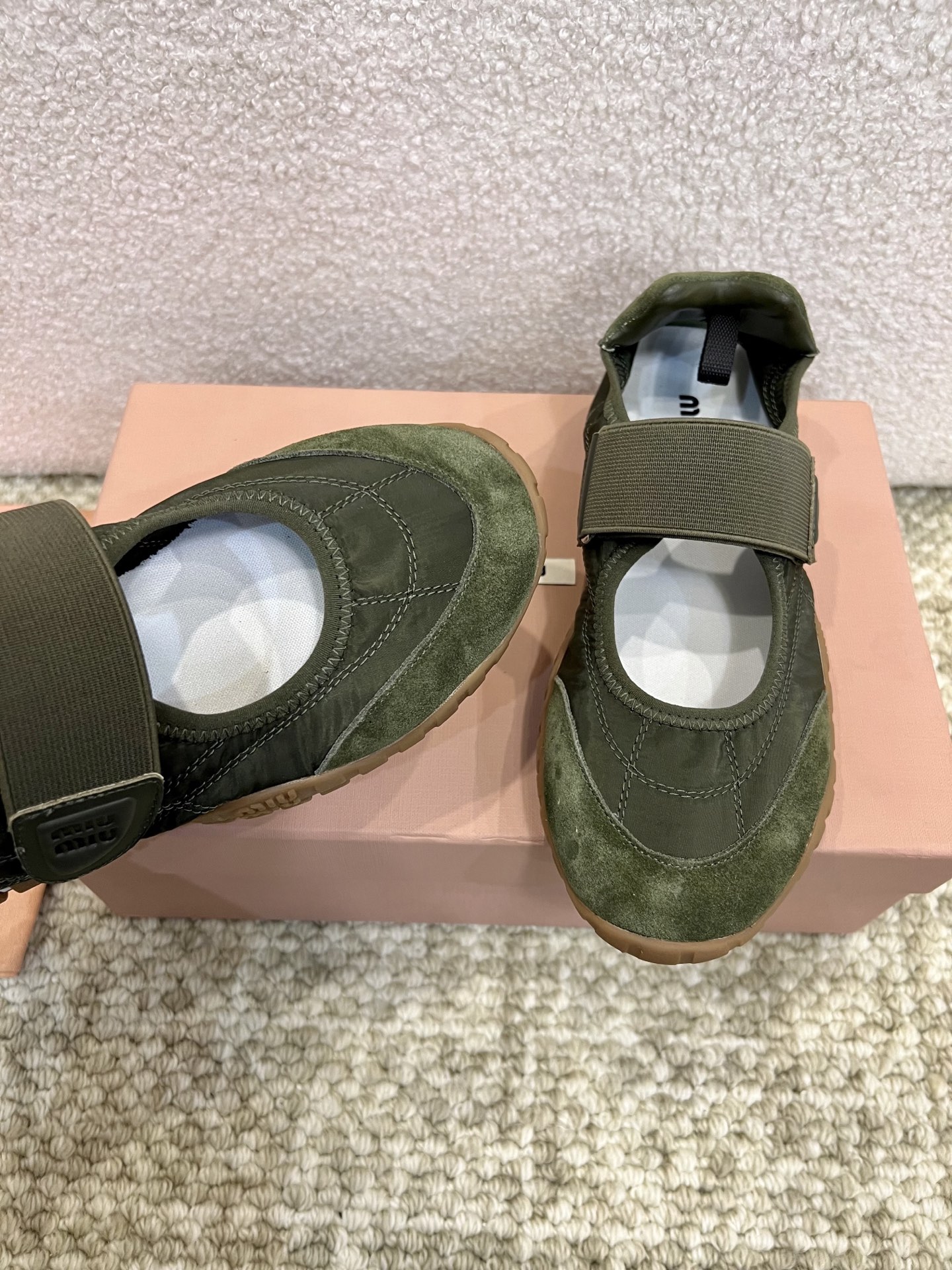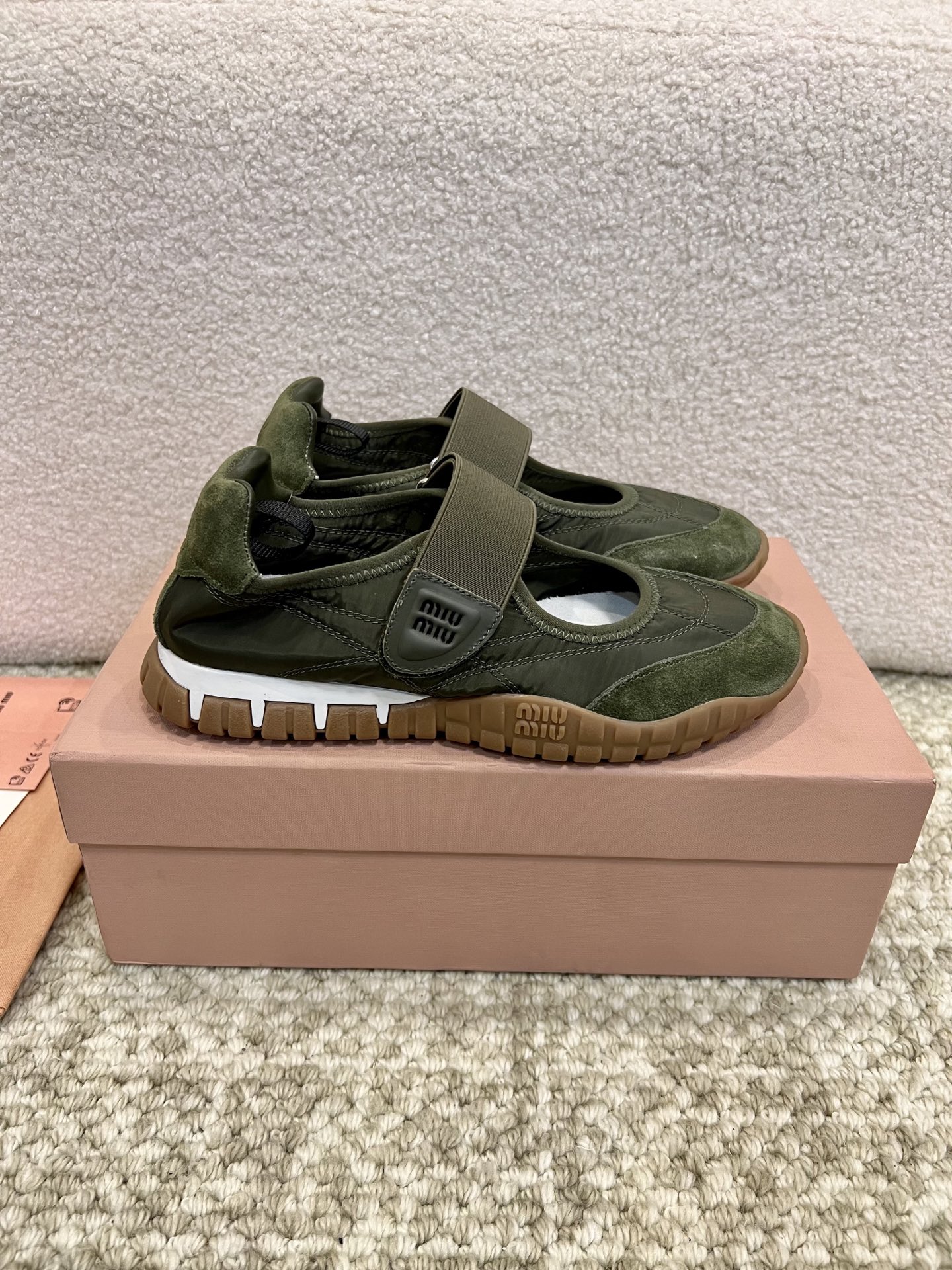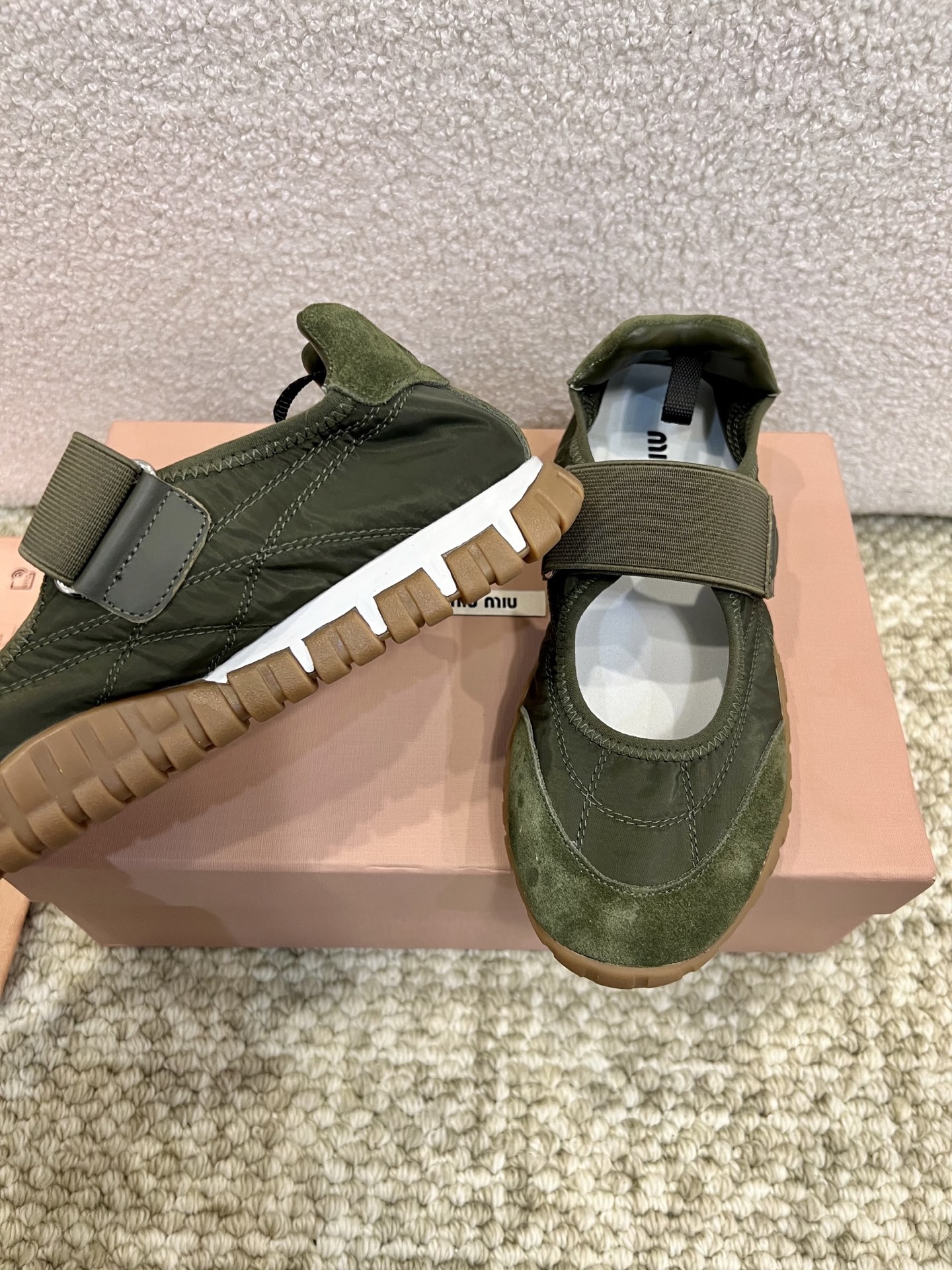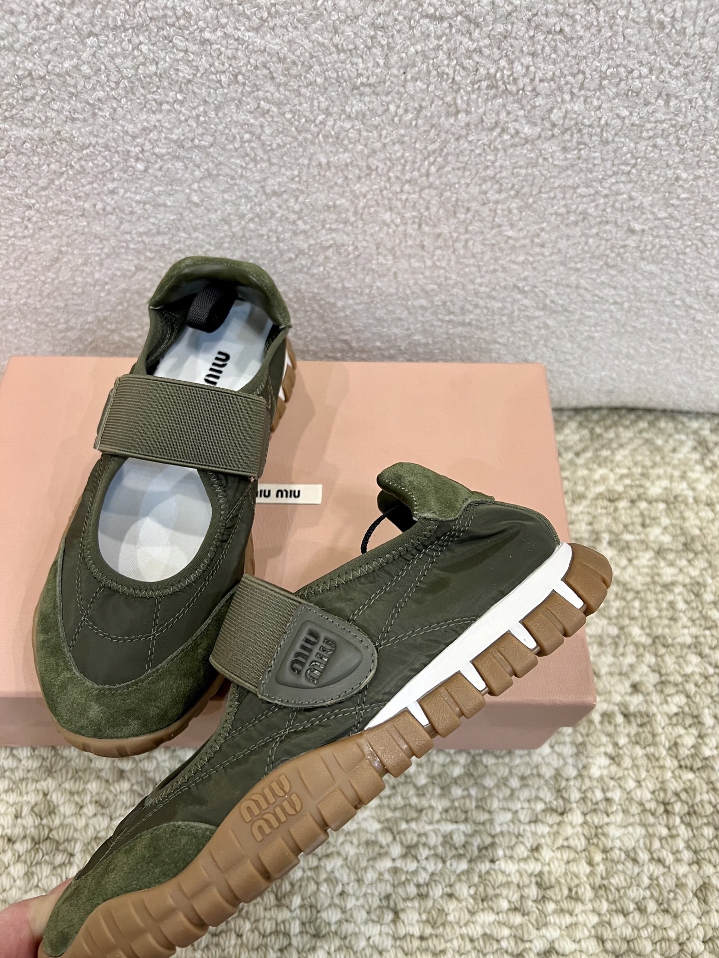这款鞋子是AAAAA 1:1 质量 (非常棒). 使用了和原版一模一样的材料. 商标部分也保持了和缪缪/Miu Miu一样. 图片拍摄是实物鞋子拍摄, 您所收到的实物保证和我们图片一模一样.