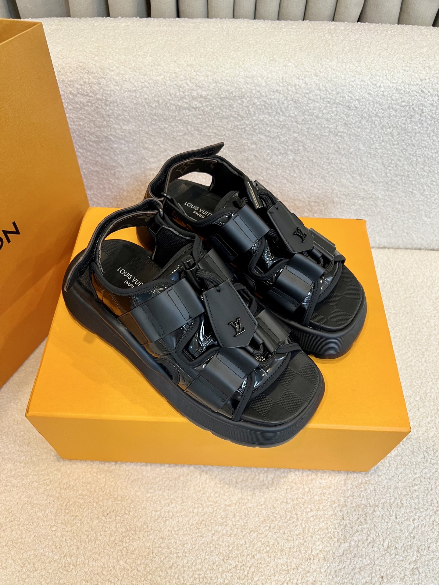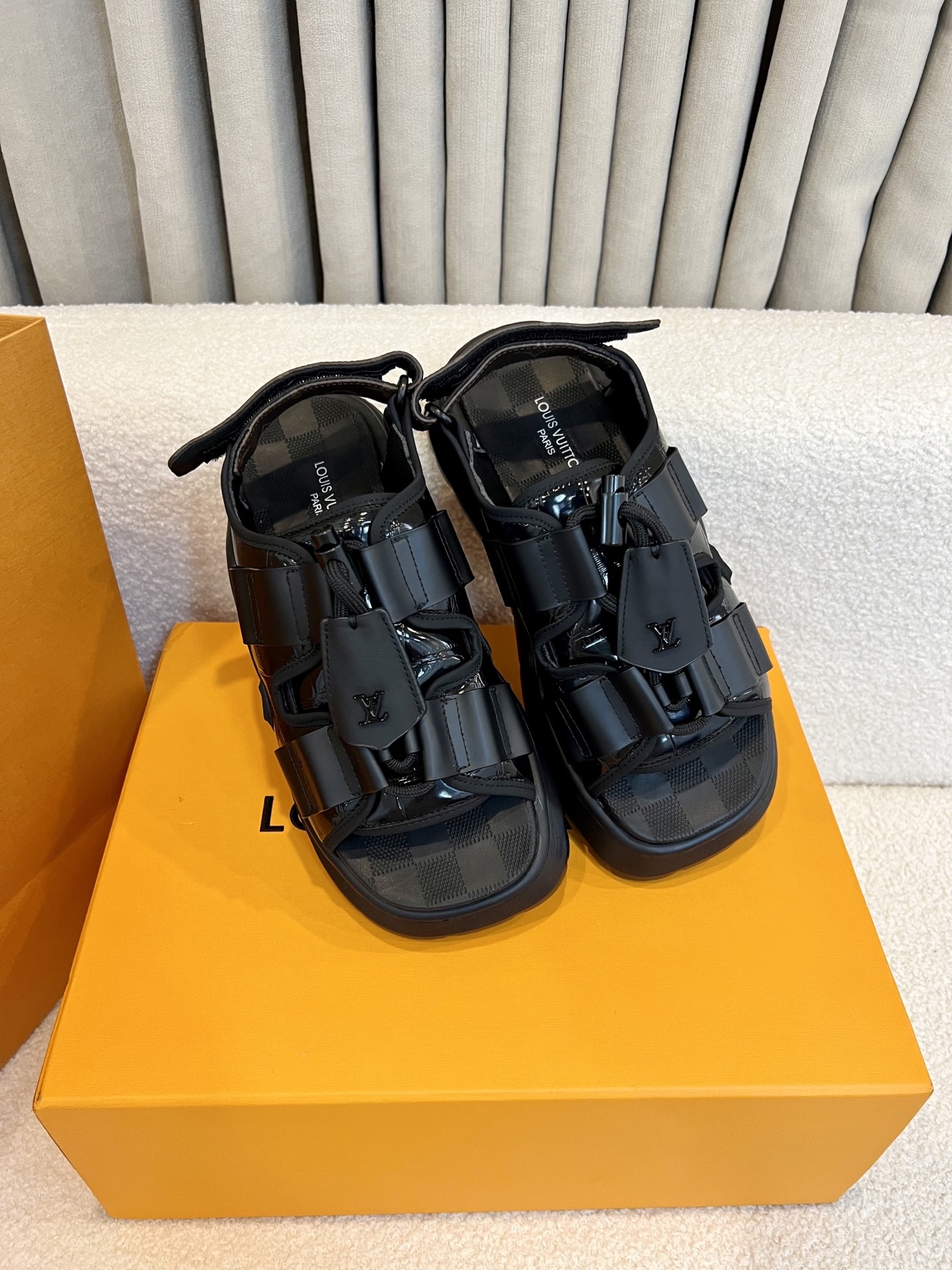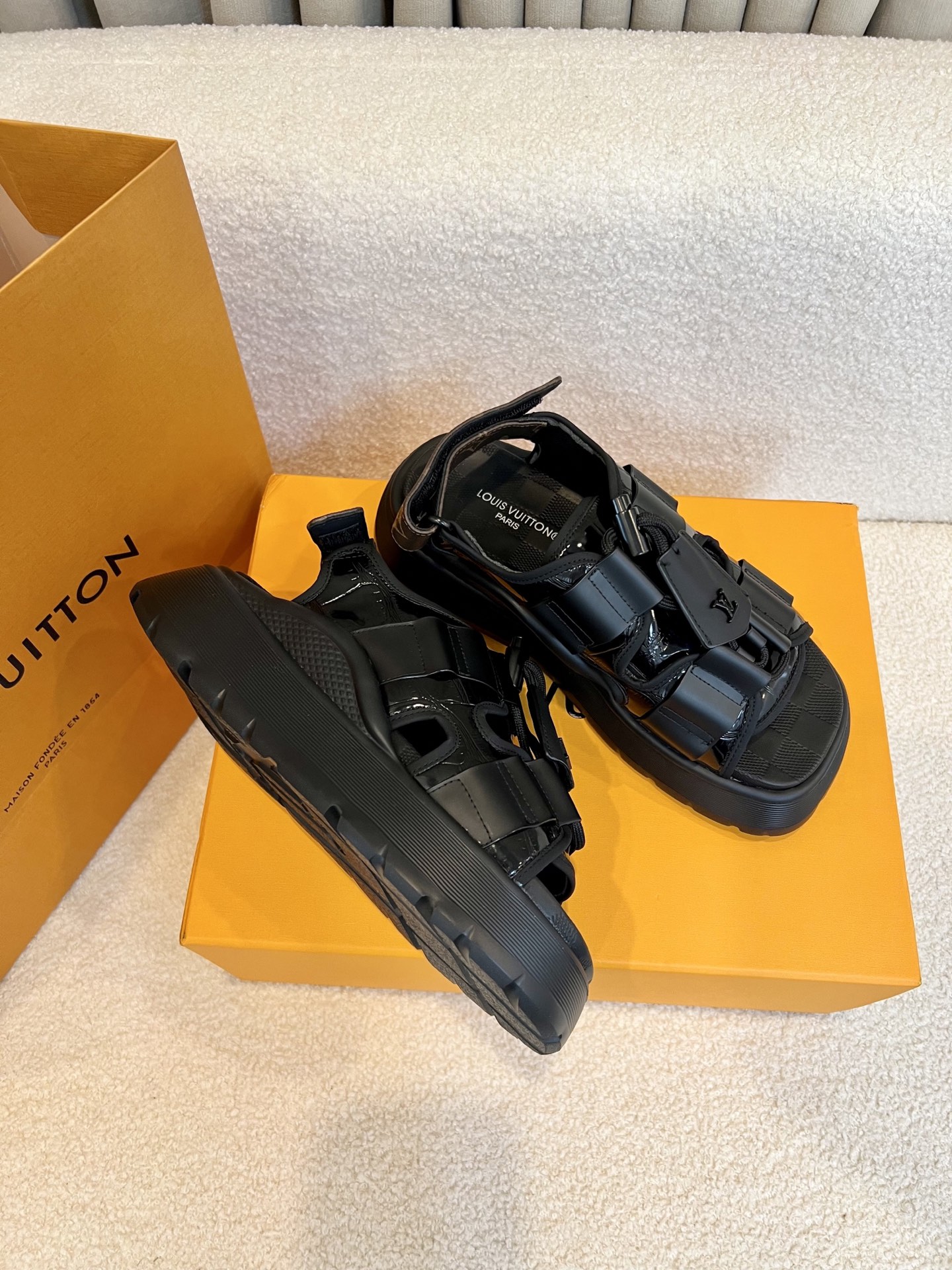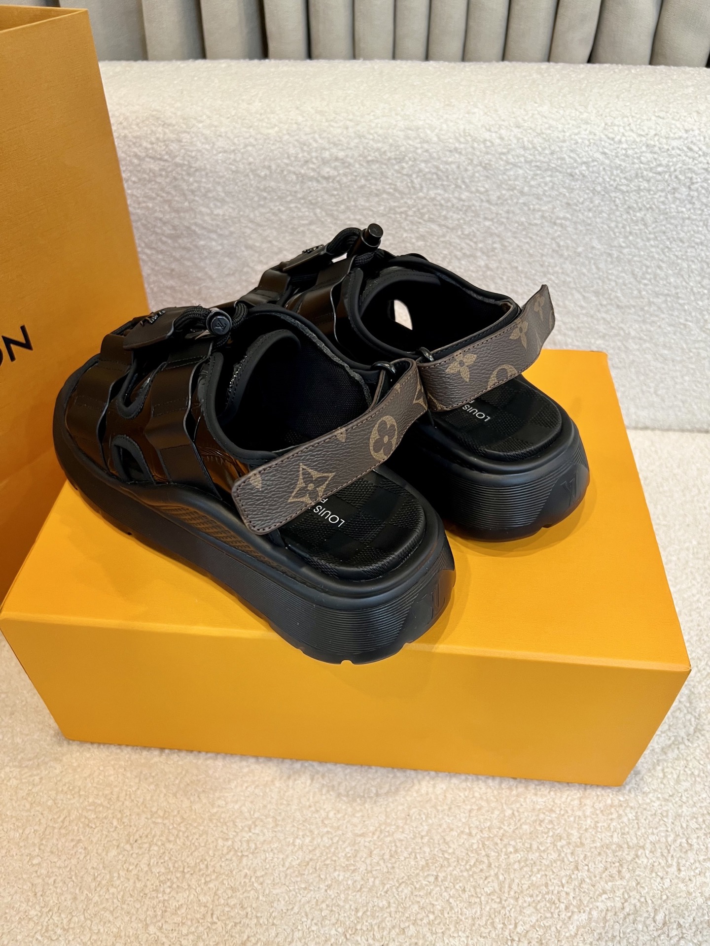 这款鞋子是AAAAA 1:1 质量 (非常棒). 使用了和原版一模一样的材料. 商标部分也保持了和路易威登/Louis Vuitton一样. 图片拍摄是实物鞋子拍摄, 您所收到的实物保证和我们图片一模一样.