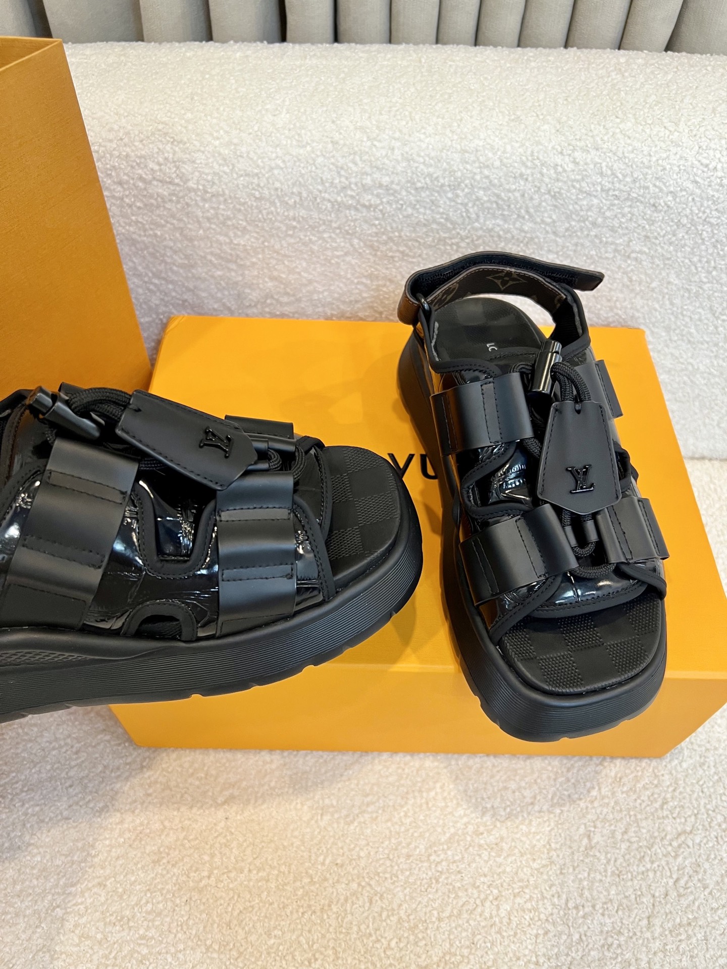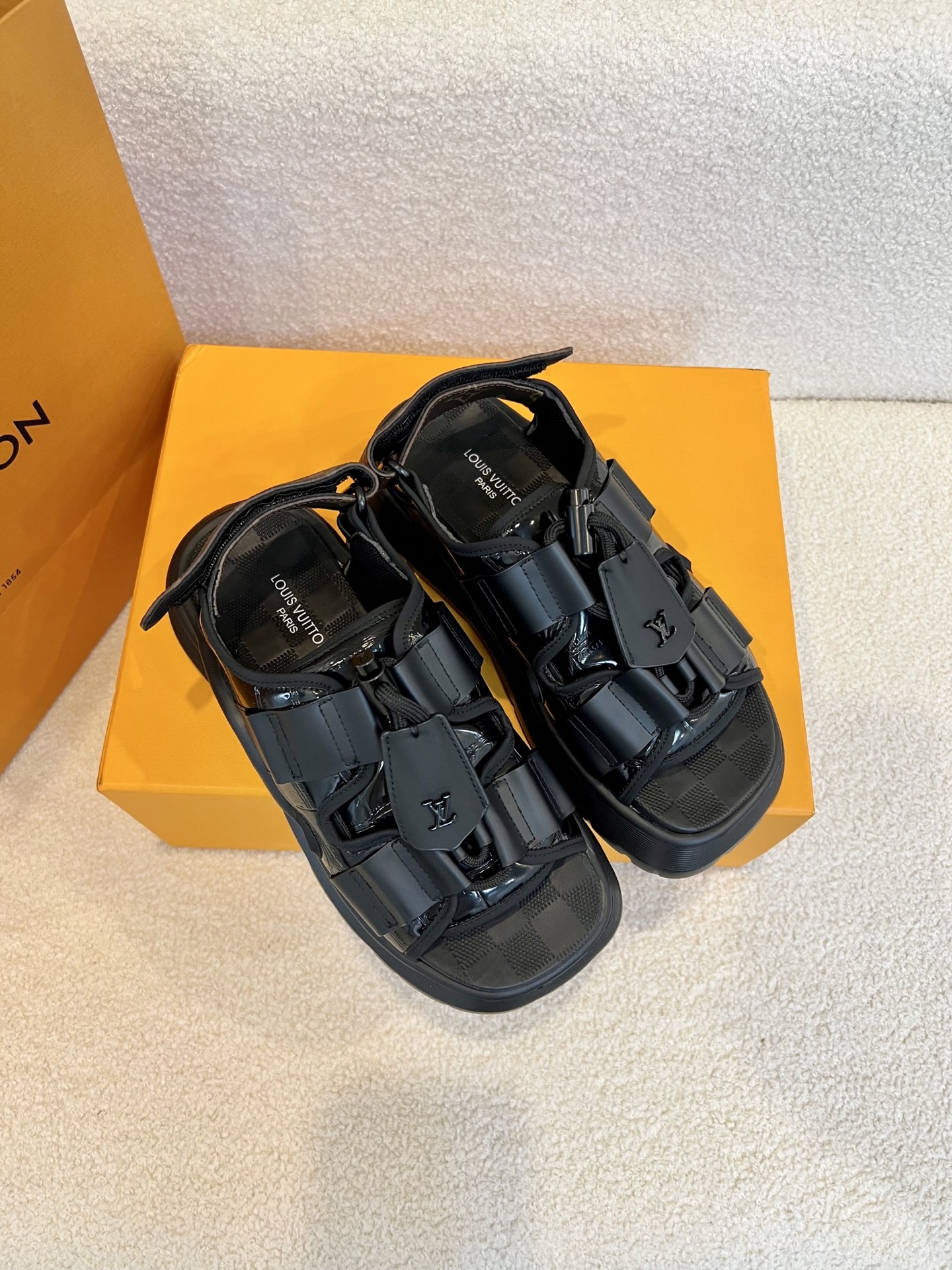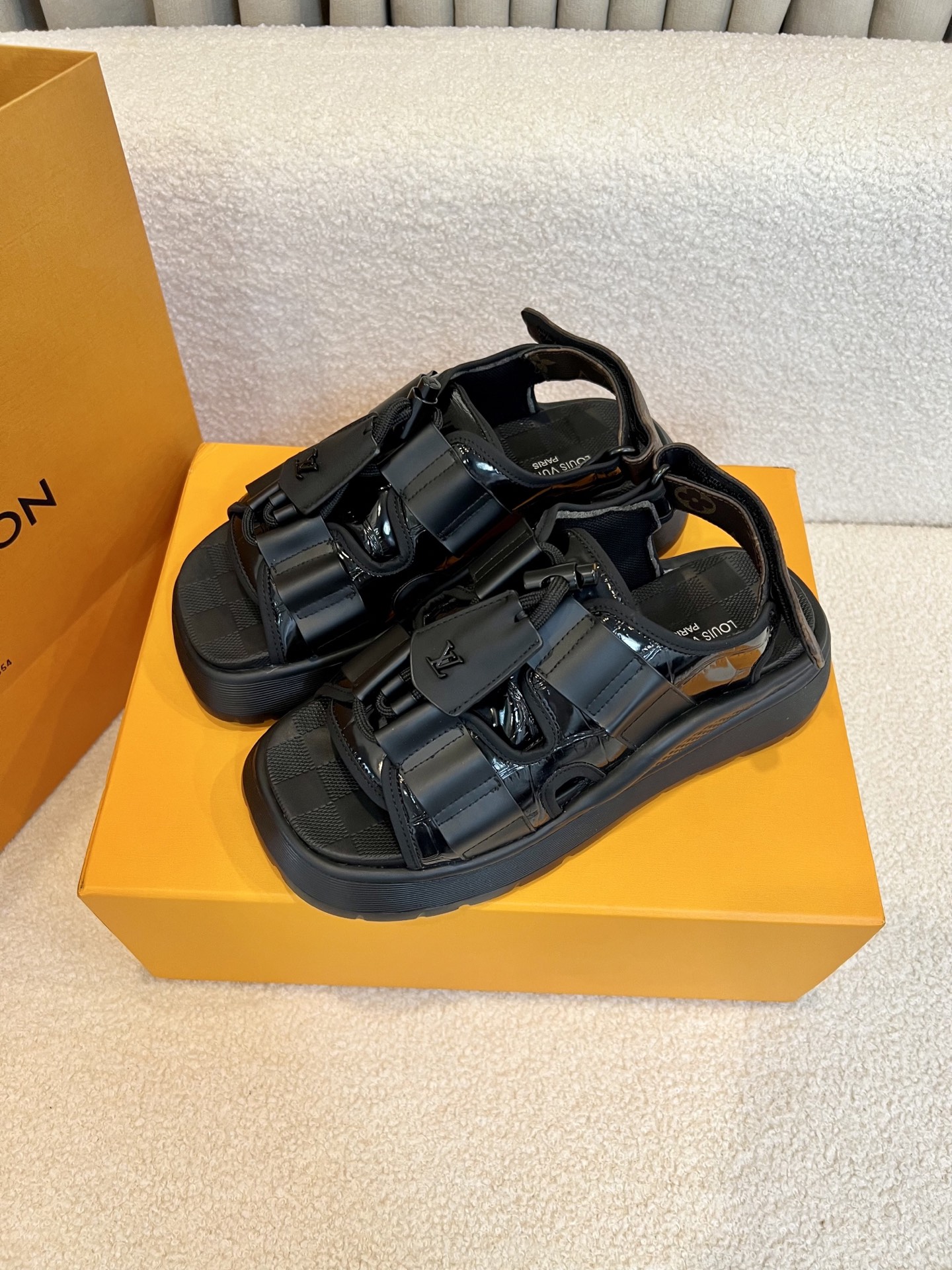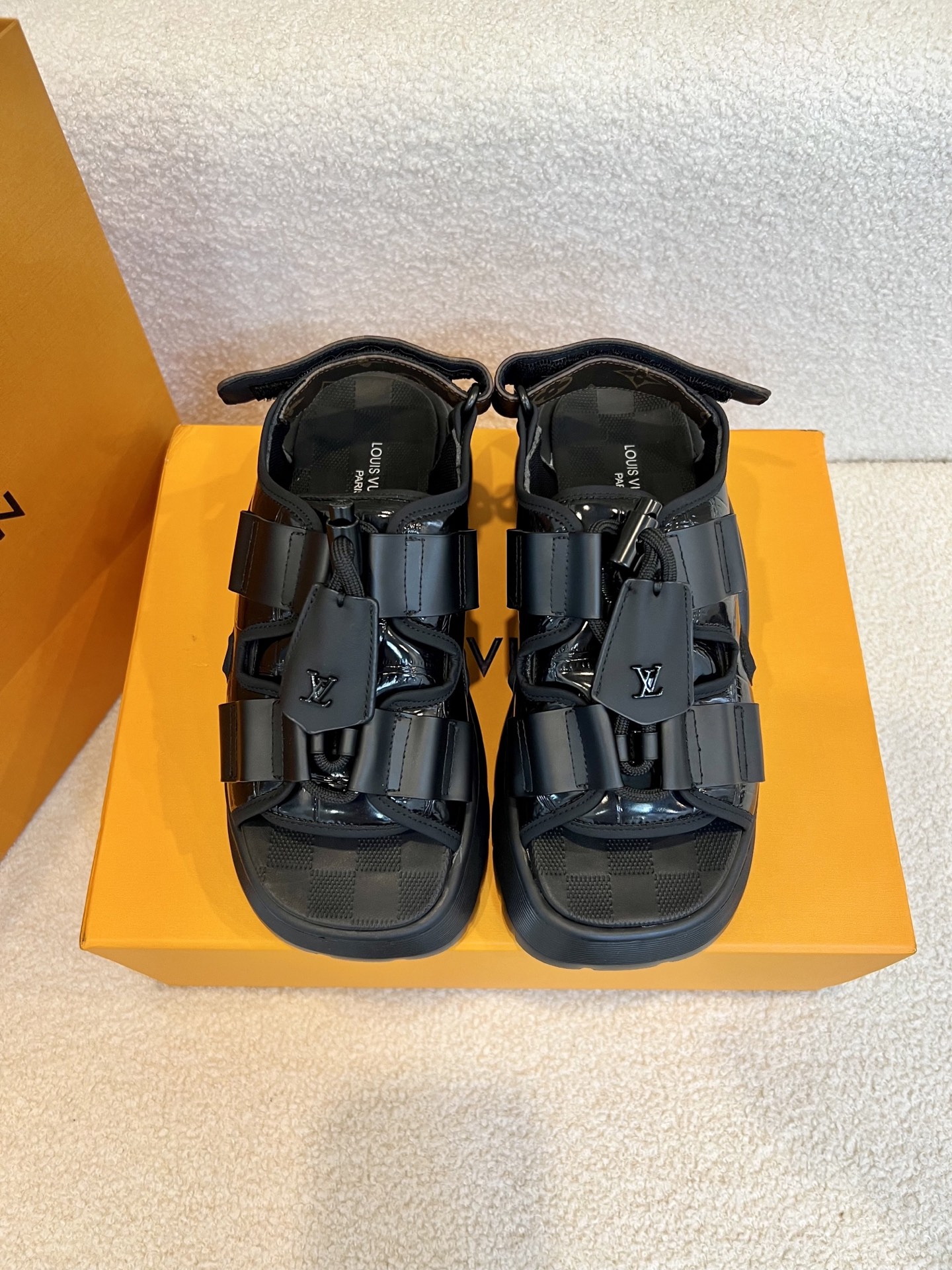 这款鞋子是AAAAA 1:1 质量 (非常棒). 使用了和原版一模一样的材料. 商标部分也保持了和路易威登/Louis Vuitton一样. 图片拍摄是实物鞋子拍摄, 您所收到的实物保证和我们图片一模一样.