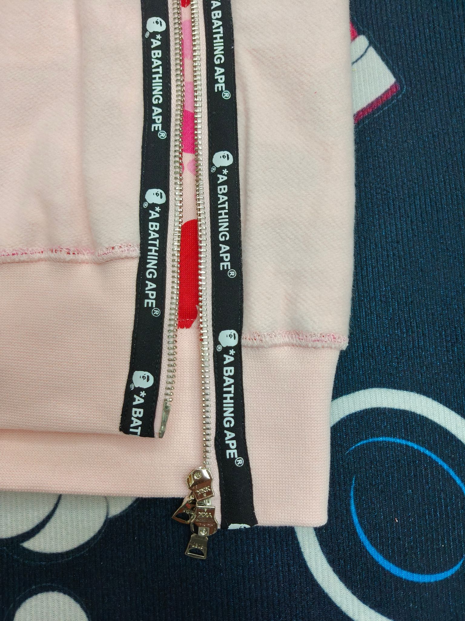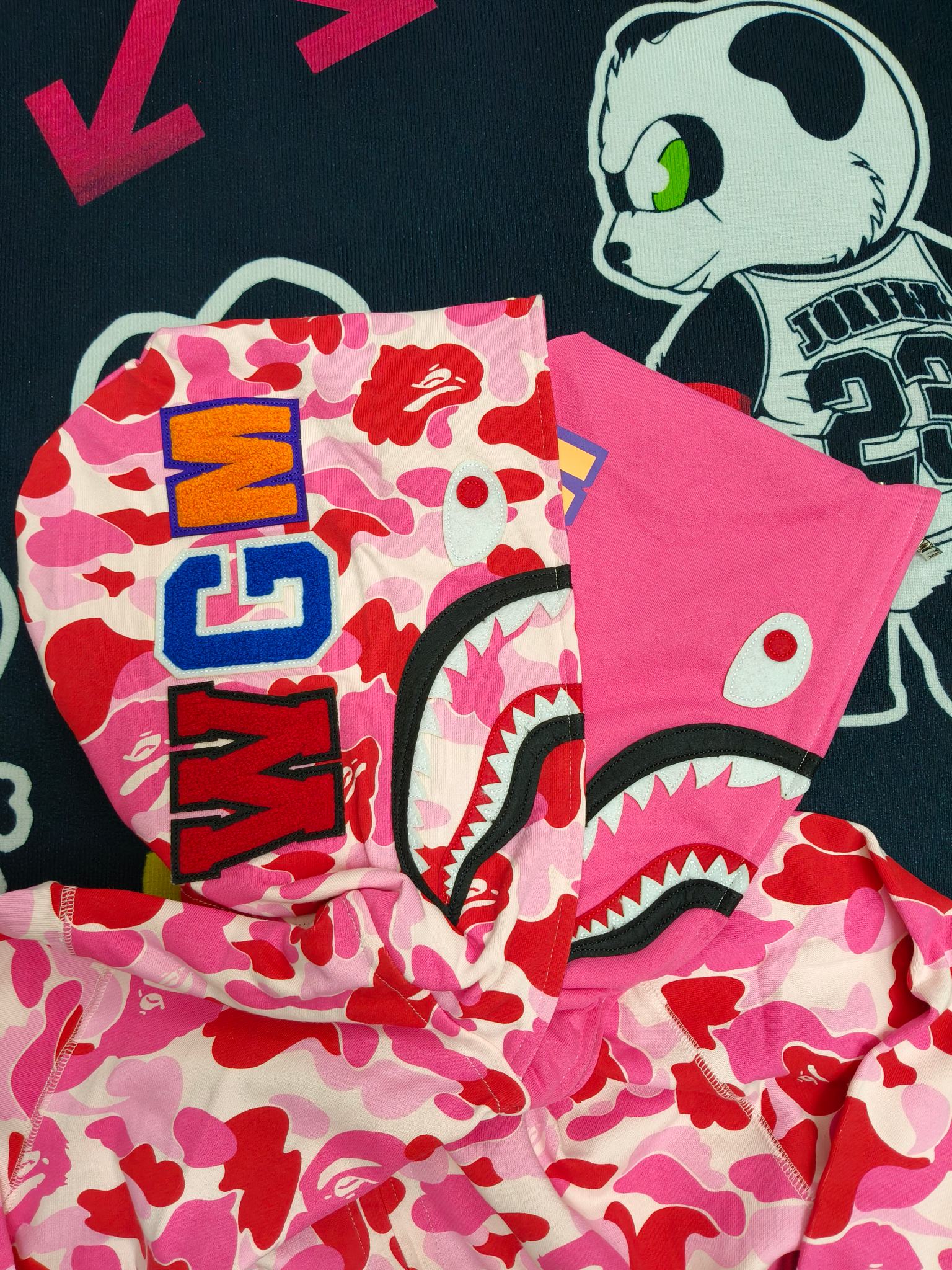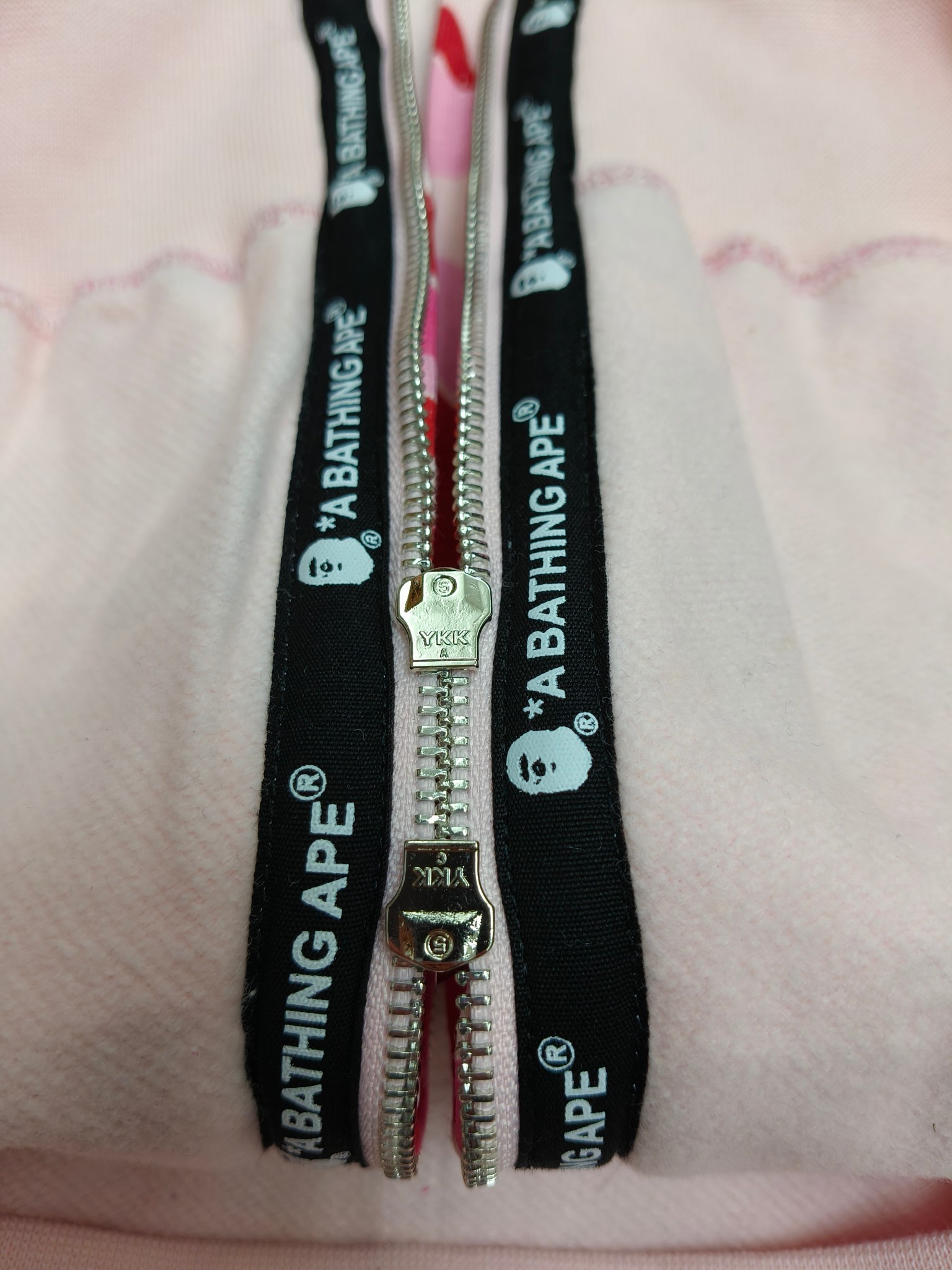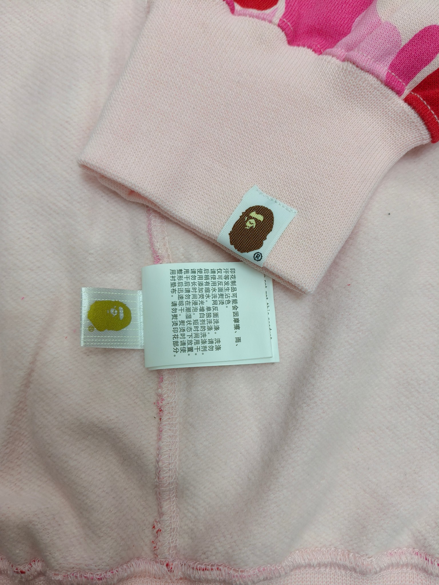 这款衣服是AAAAA 1:1 质量 (非常棒). 使用了和原版一模一样的材料. 商标部分也保持了和Bape一样. 图片拍摄是实物衣服拍摄, 您所收到的实物保证和我们图片一模一样.