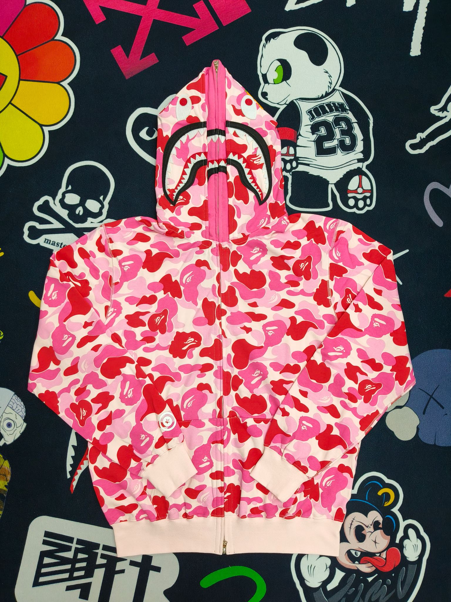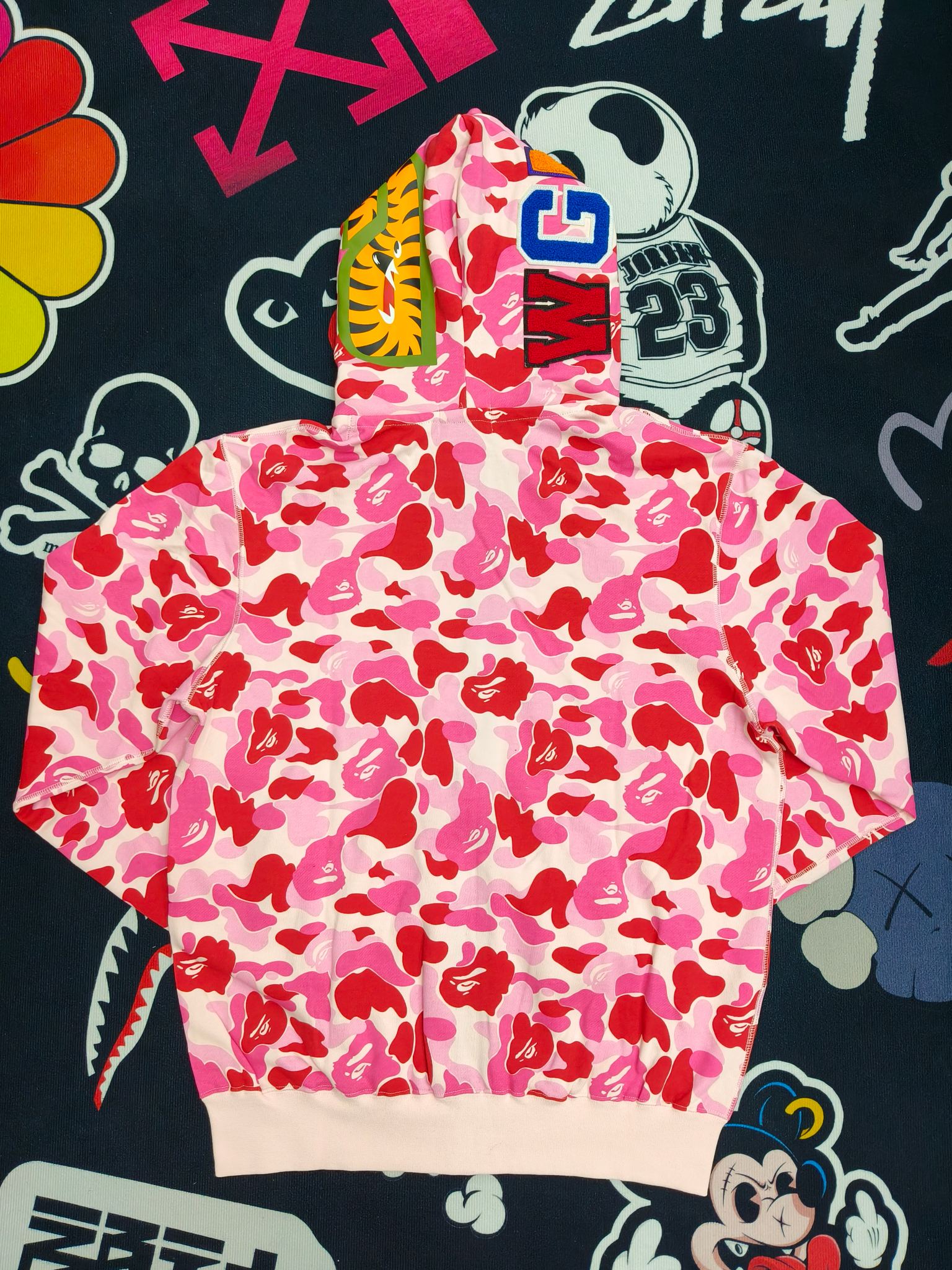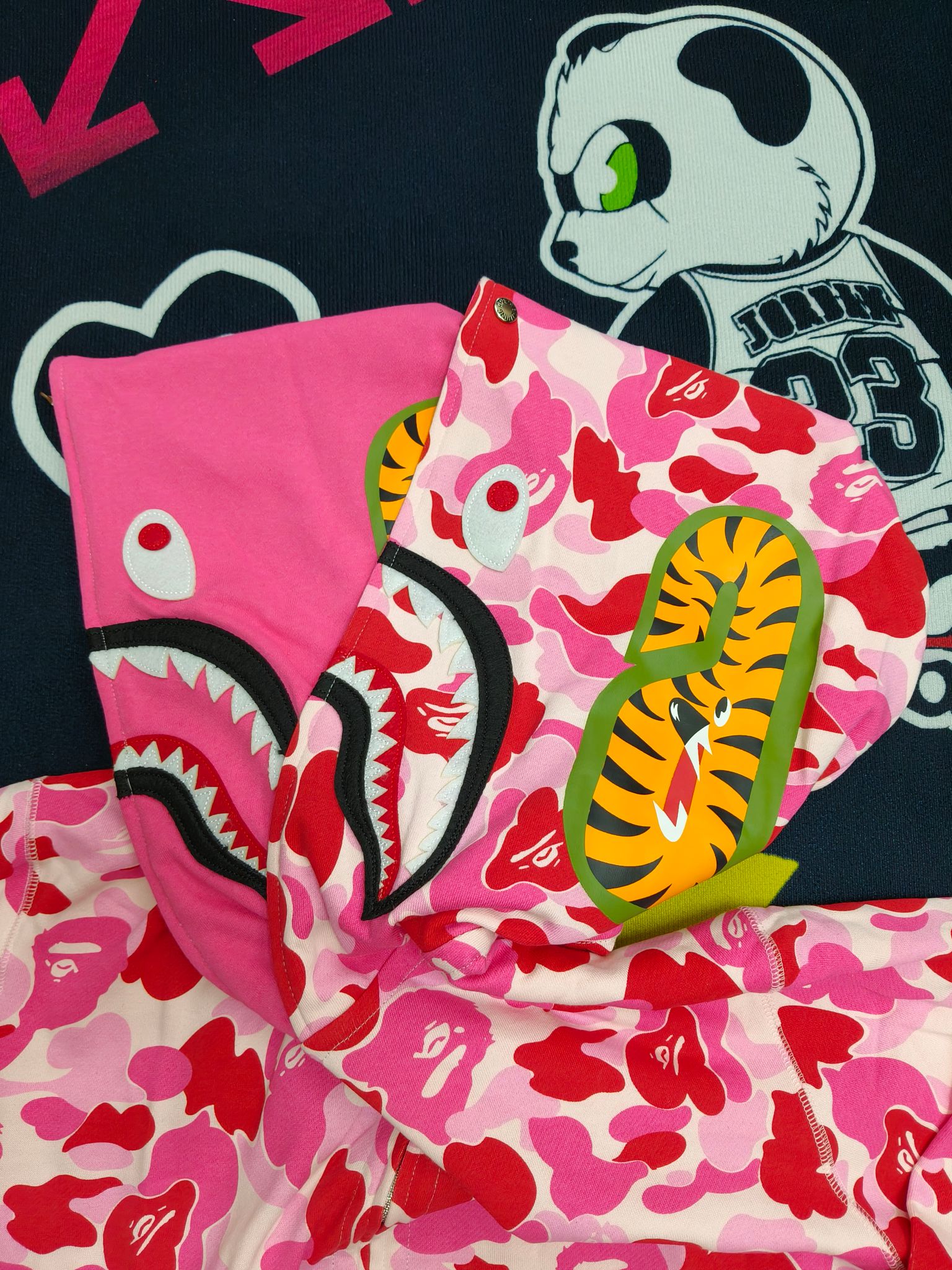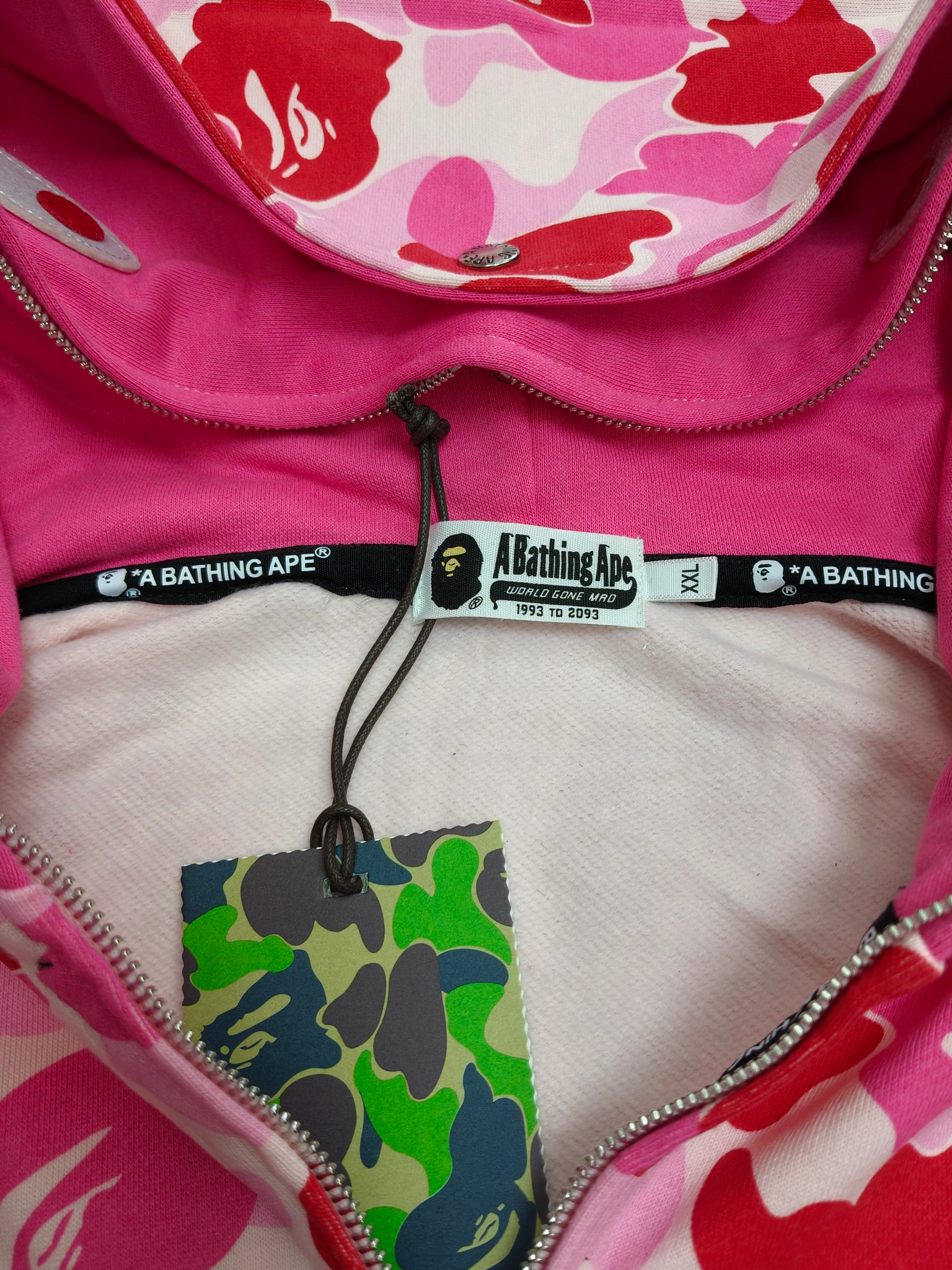 这款衣服是AAAAA 1:1 质量 (非常棒). 使用了和原版一模一样的材料. 商标部分也保持了和Bape一样. 图片拍摄是实物衣服拍摄, 您所收到的实物保证和我们图片一模一样.