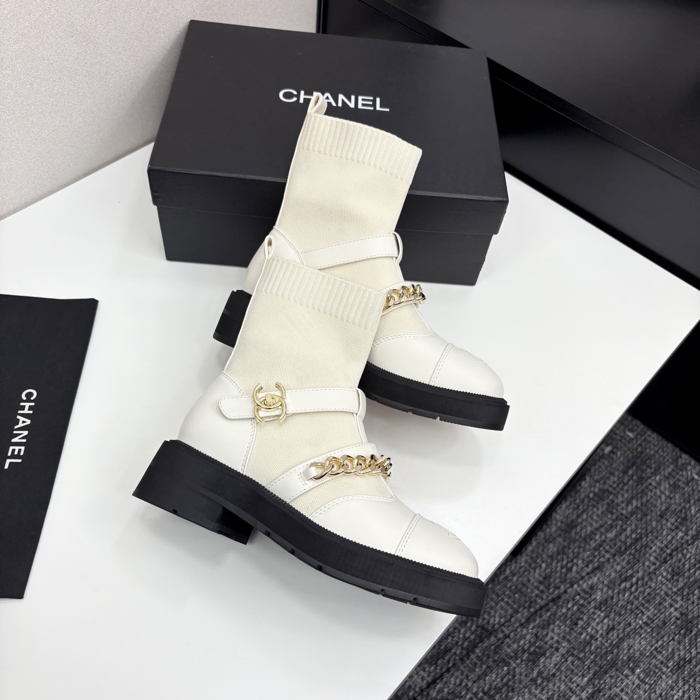 这款鞋子是AAAAA 1:1 质量 (非常棒). 使用了和原版一模一样的材料. 商标部分也保持了和香奈儿/Chanel一样. 图片拍摄是实物鞋子拍摄, 您所收到的实物保证和我们图片一模一样.
