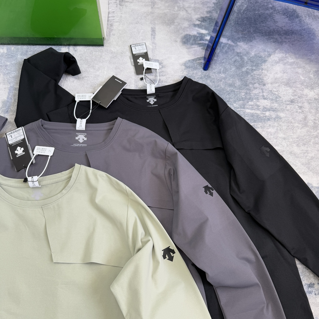 这款衣服是AAAAA 1:1 质量 (非常棒). 使用了和原版一模一样的材料. 商标部分也保持了和Descente一样. 图片拍摄是实物衣服拍摄, 您所收到的实物保证和我们图片一模一样.