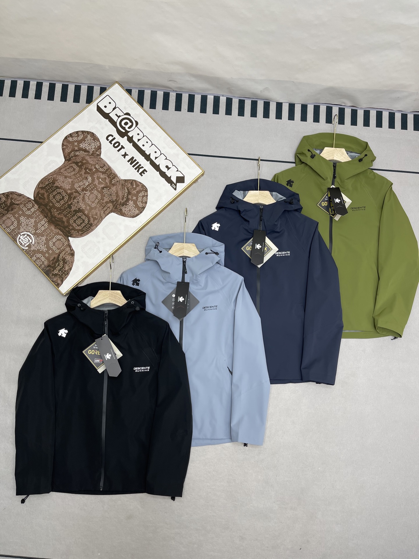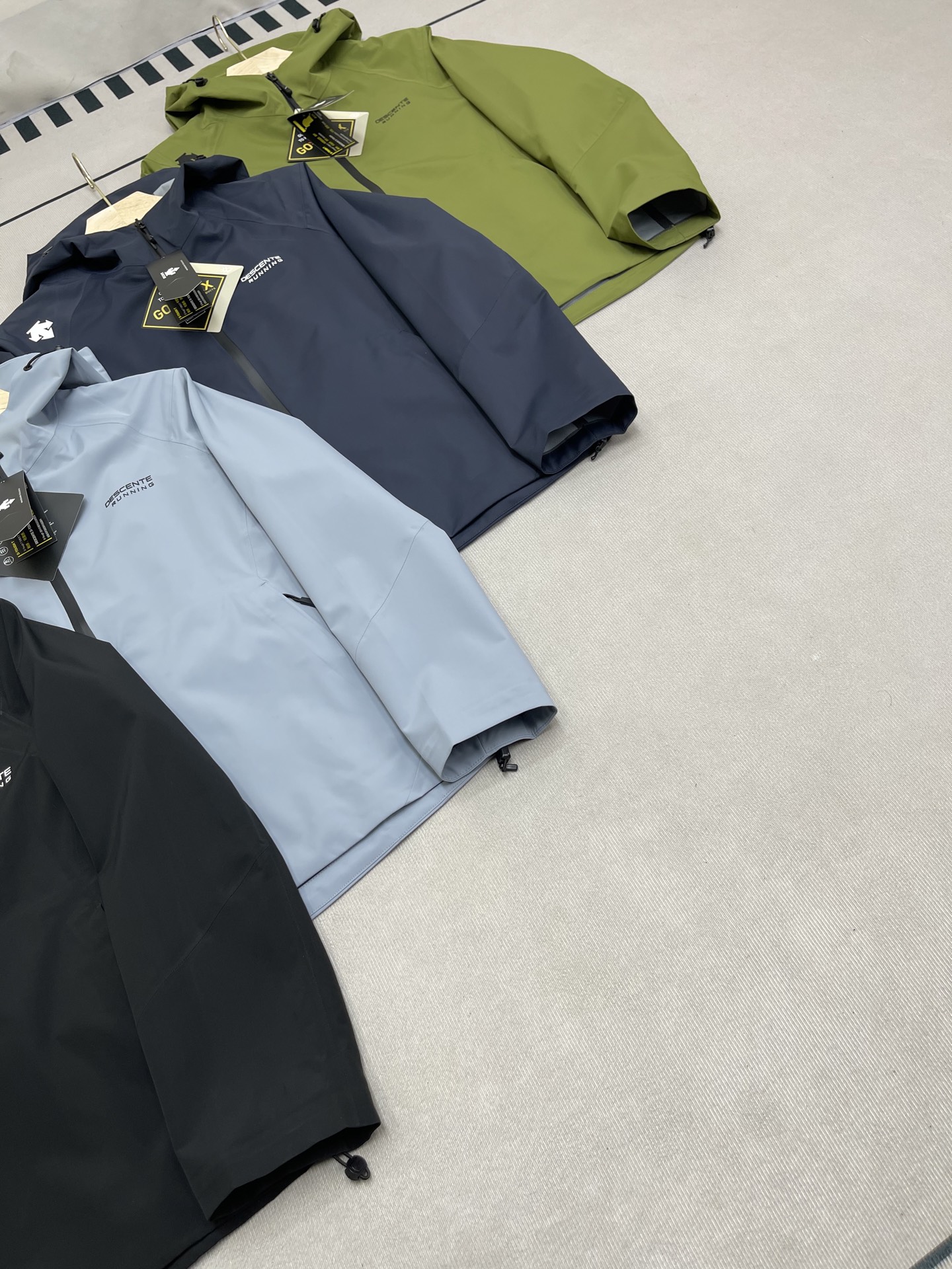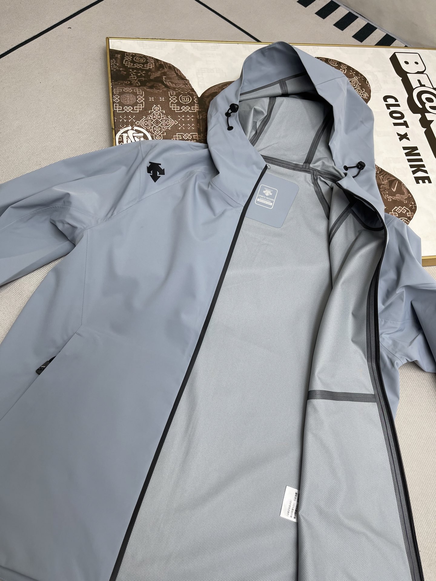 这款衣服是AAAAA 1:1 质量 (非常棒). 使用了和原版一模一样的材料. 商标部分也保持了和Descente一样. 图片拍摄是实物衣服拍摄, 您所收到的实物保证和我们图片一模一样.