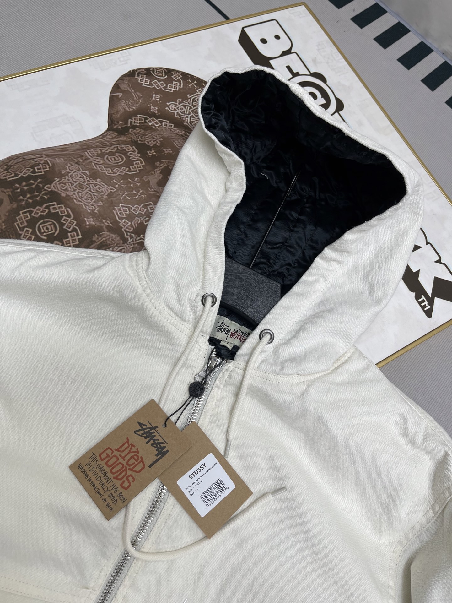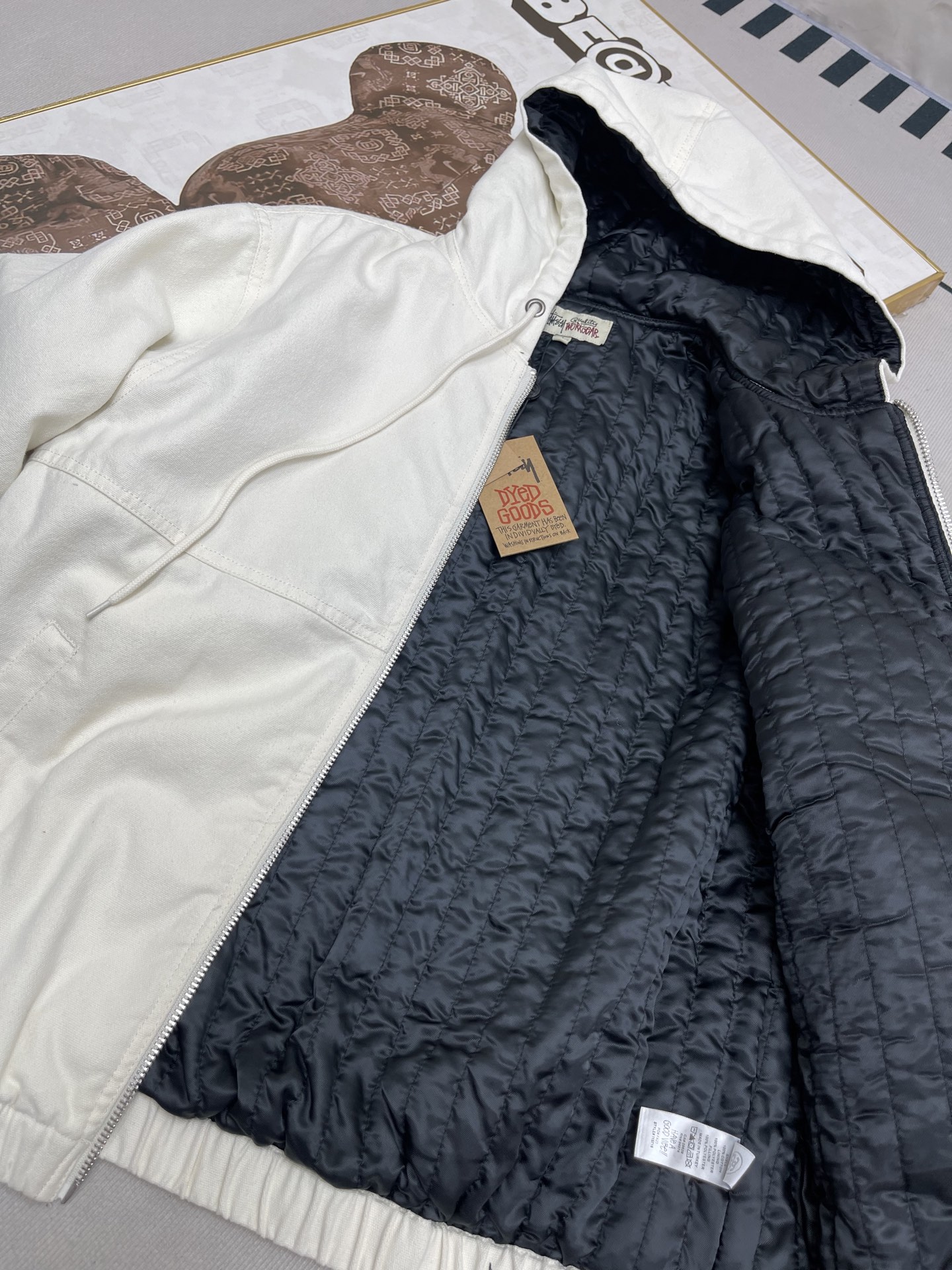 这款衣服是AAAAA 1:1 质量 (非常棒). 使用了和原版一模一样的材料. 商标部分也保持了和Stussy一样. 图片拍摄是实物衣服拍摄, 您所收到的实物保证和我们图片一模一样.