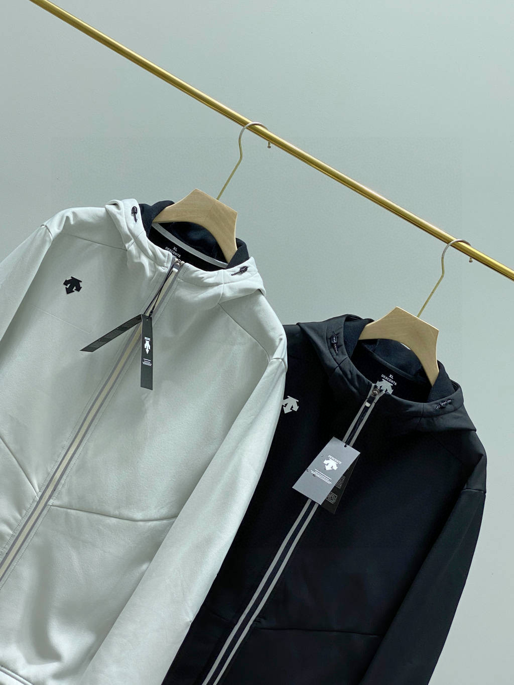 这款衣服是AAAAA 1:1 质量 (非常棒). 使用了和原版一模一样的材料. 商标部分也保持了和Descente一样. 图片拍摄是实物衣服拍摄, 您所收到的实物保证和我们图片一模一样.