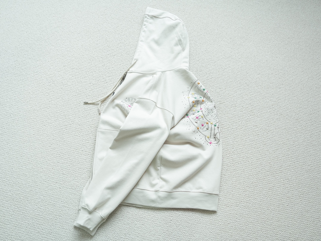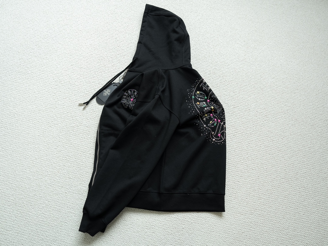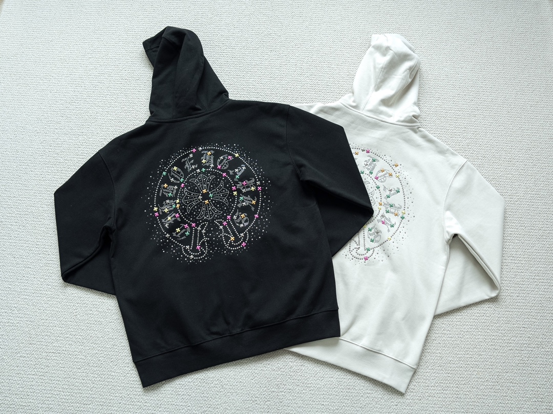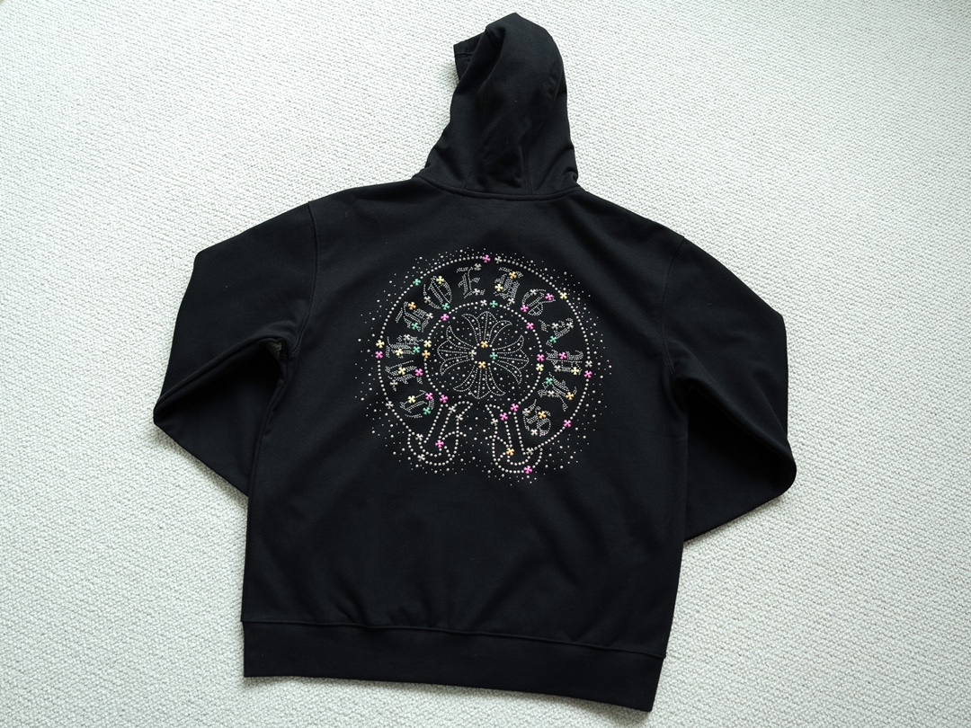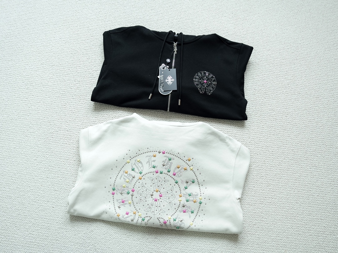 这款衣服是AAAAA 1:1 质量 (非常棒). 使用了和原版一模一样的材料. 商标部分也保持了和克罗心/Chrome Hearts一样. 图片拍摄是实物衣服拍摄, 您所收到的实物保证和我们图片一模一样.