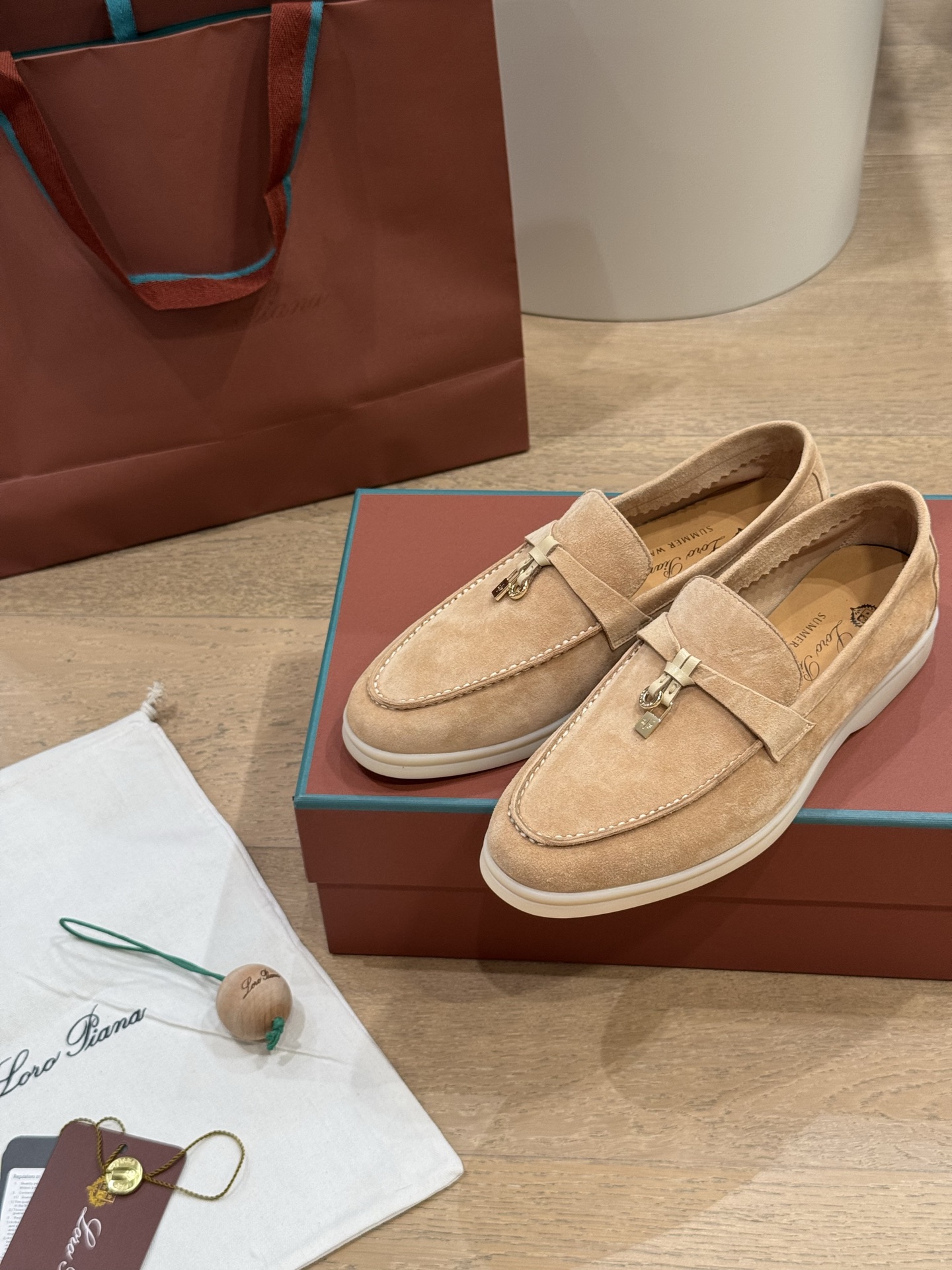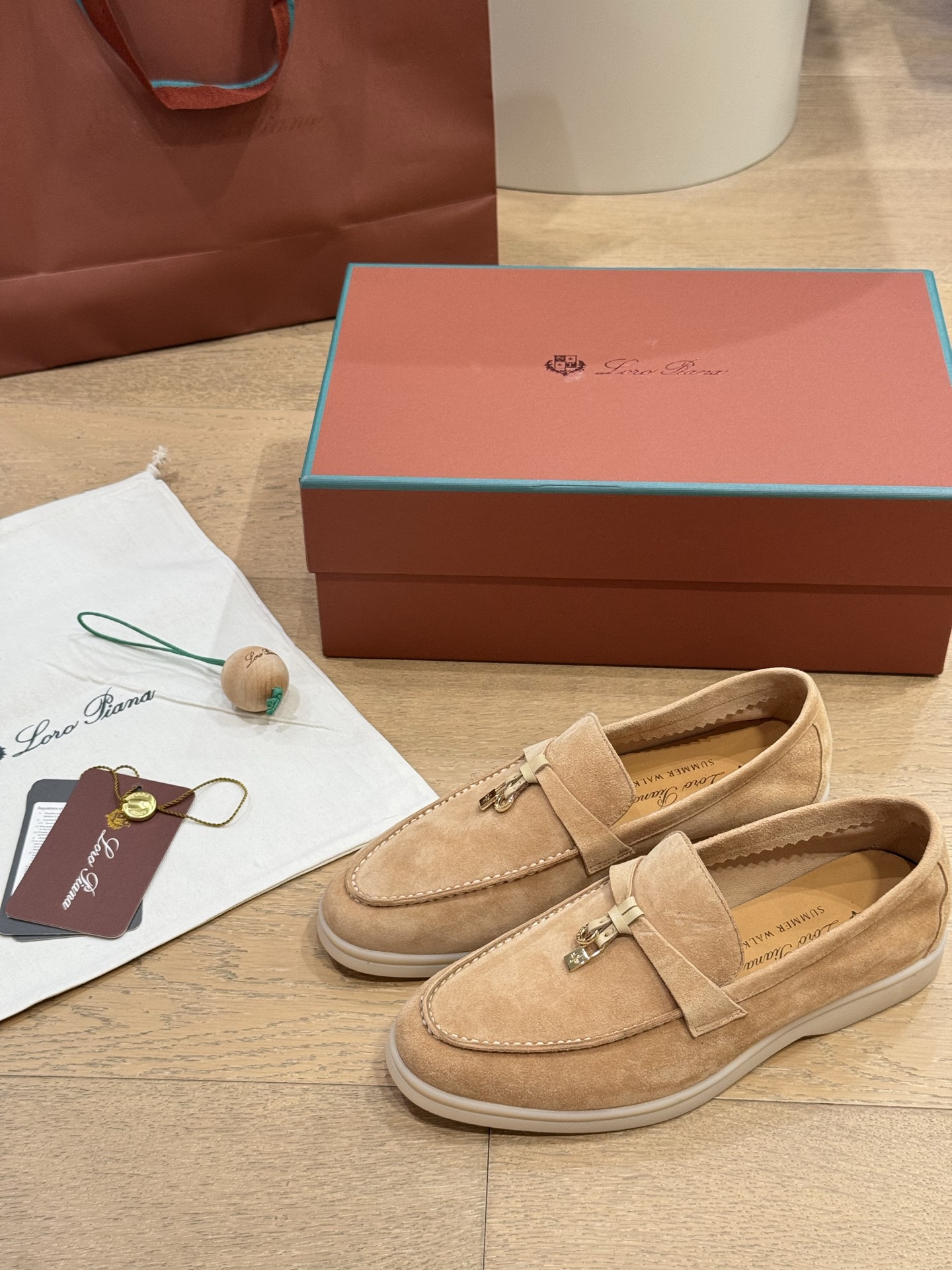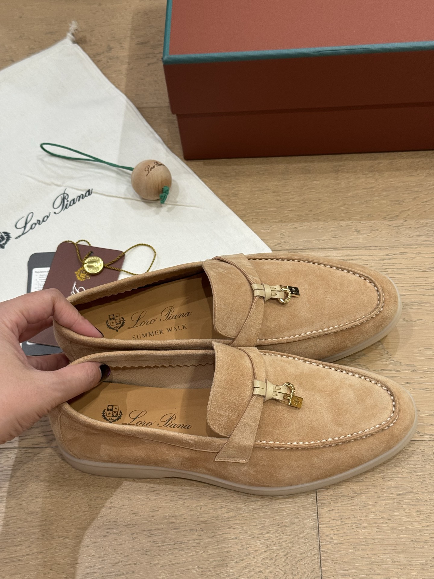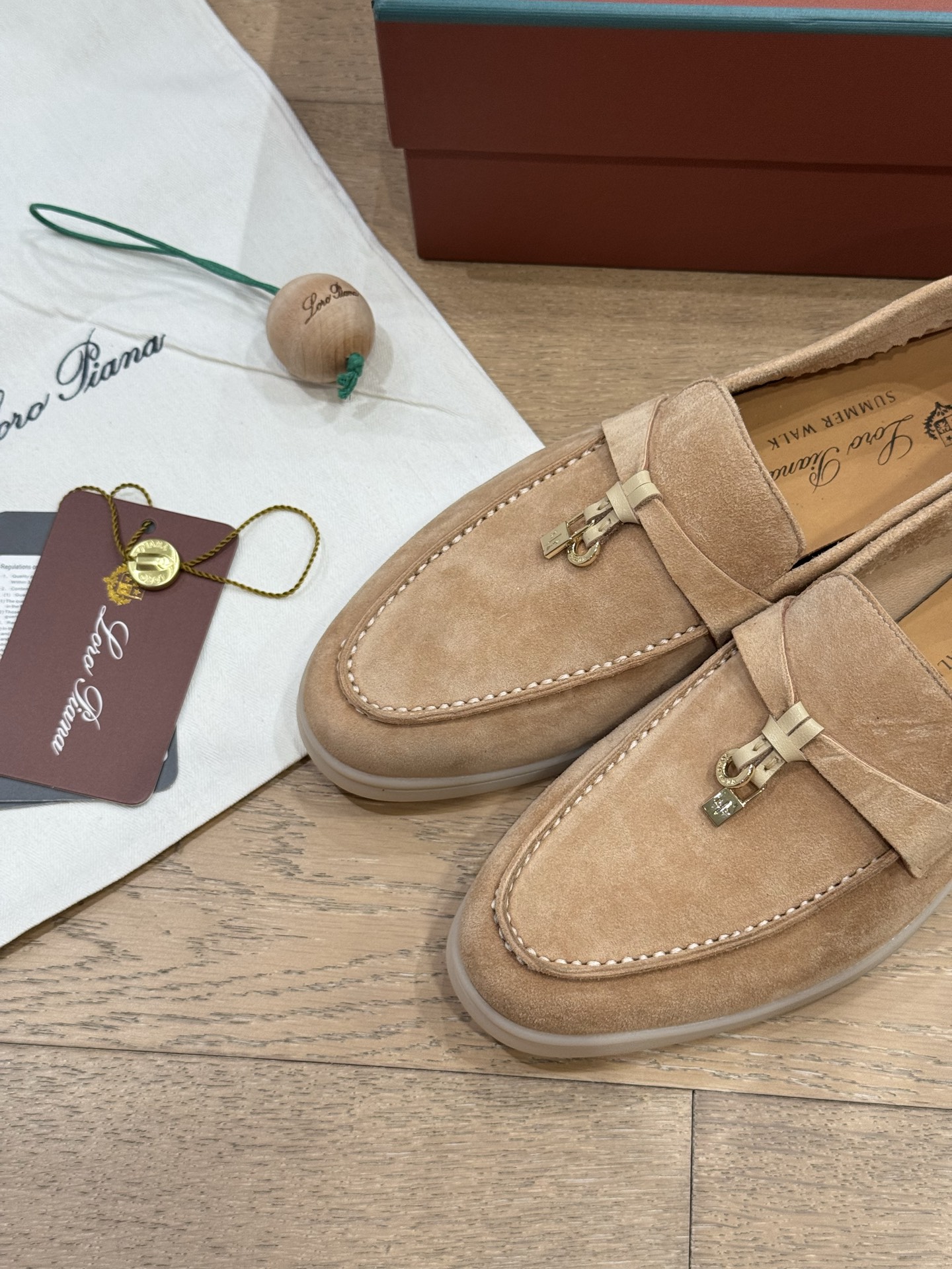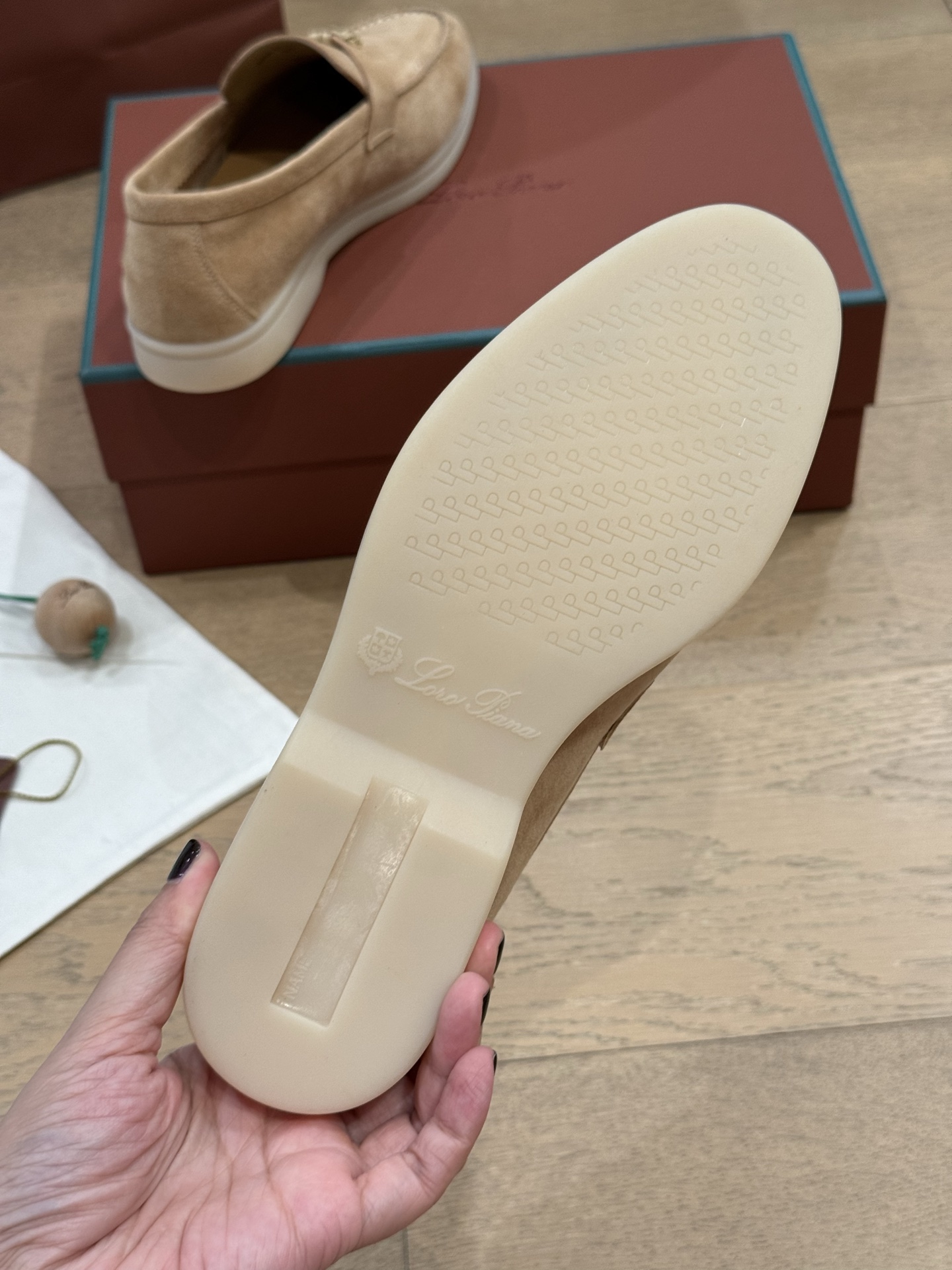 这款鞋子是AAAAA 1:1 质量 (非常棒). 使用了和原版一模一样的材料. 商标部分也保持了和洛罗皮亚纳/Loro Piana一样. 图片拍摄是实物鞋子拍摄, 您所收到的实物保证和我们图片一模一样.