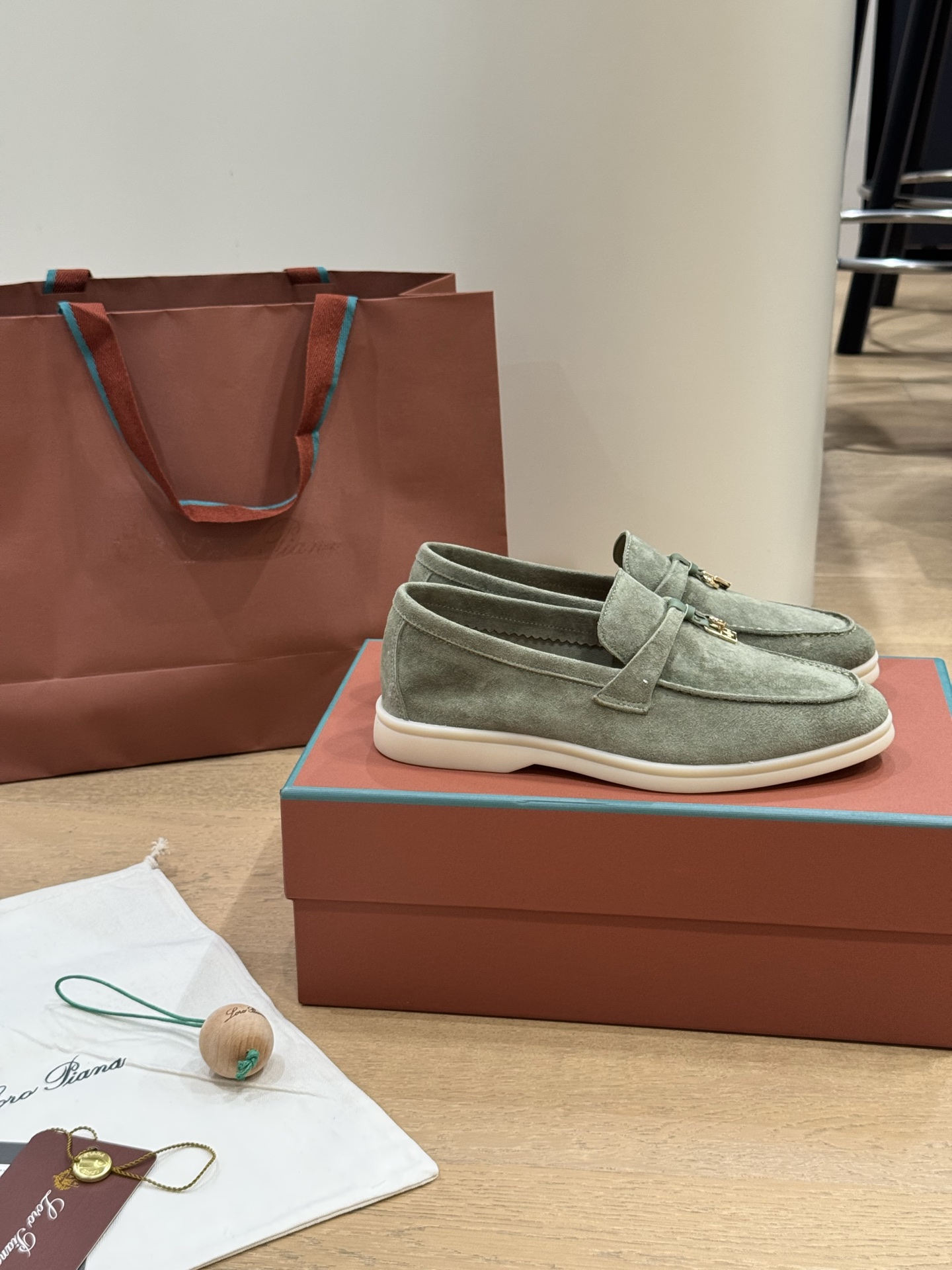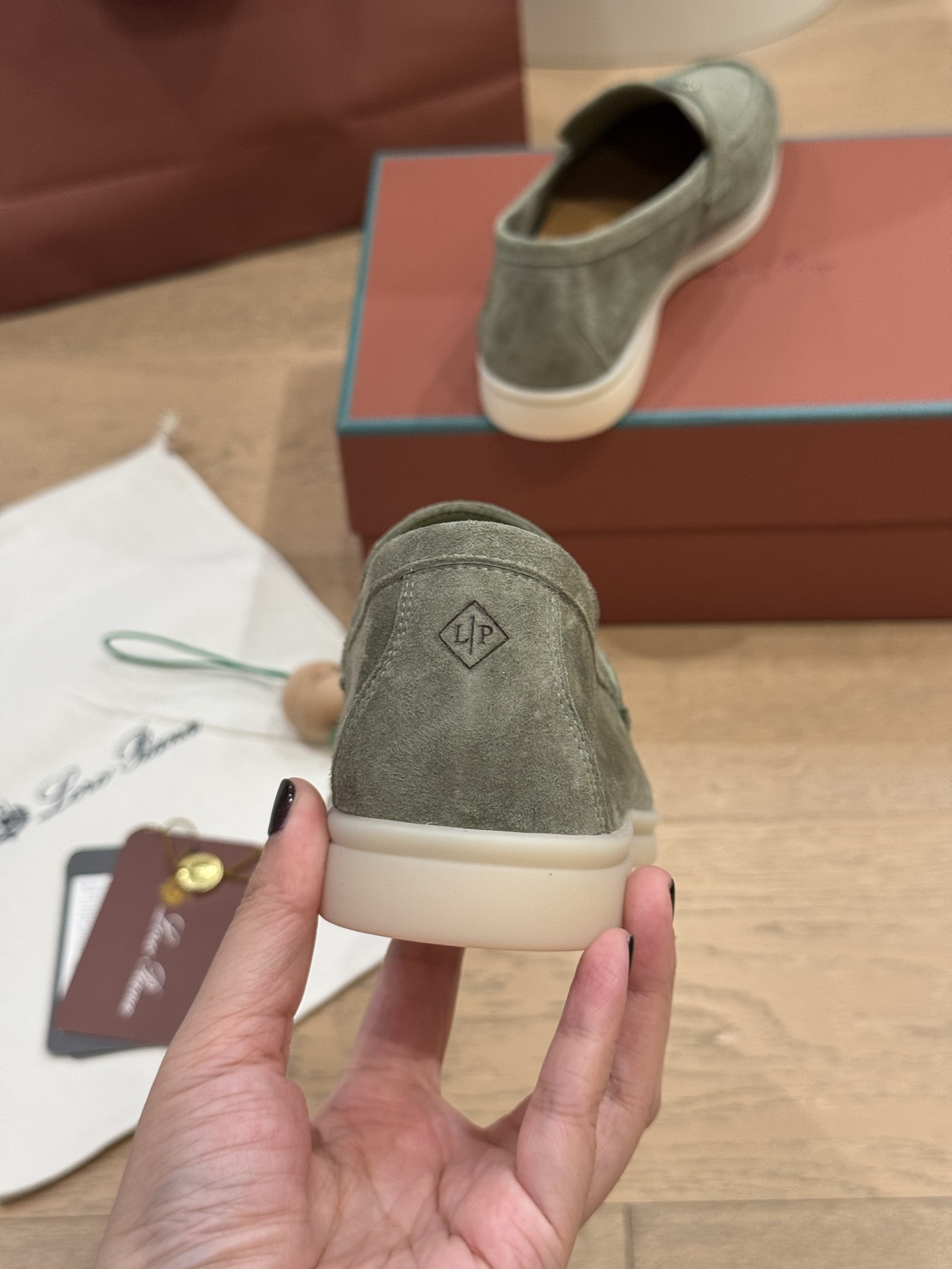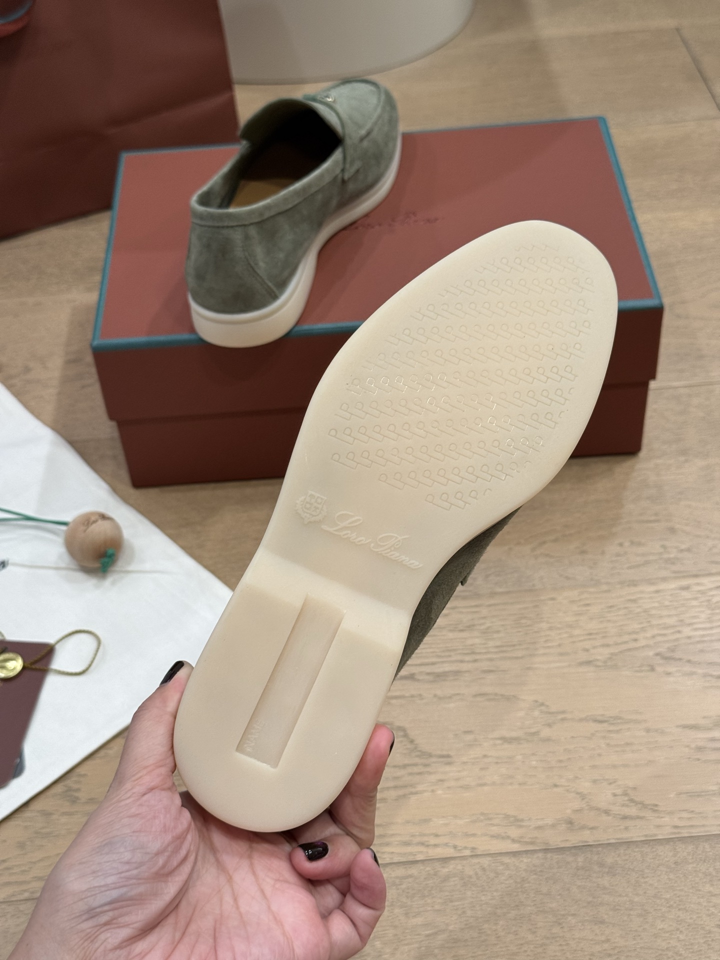 这款鞋子是AAAAA 1:1 质量 (非常棒). 使用了和原版一模一样的材料. 商标部分也保持了和洛罗皮亚纳/Loro Piana一样. 图片拍摄是实物鞋子拍摄, 您所收到的实物保证和我们图片一模一样.
