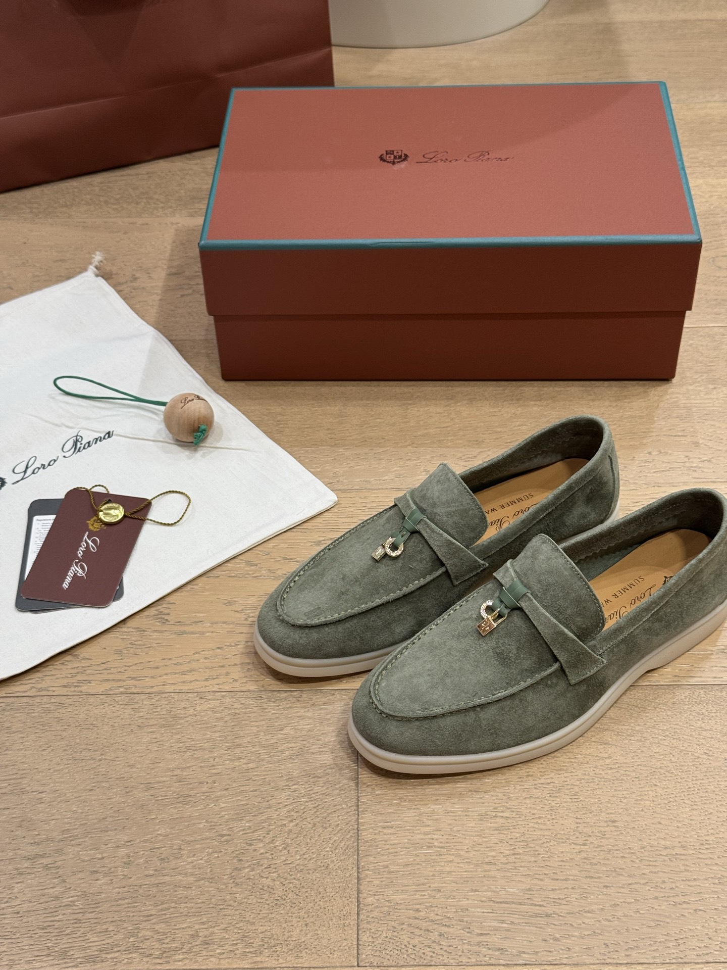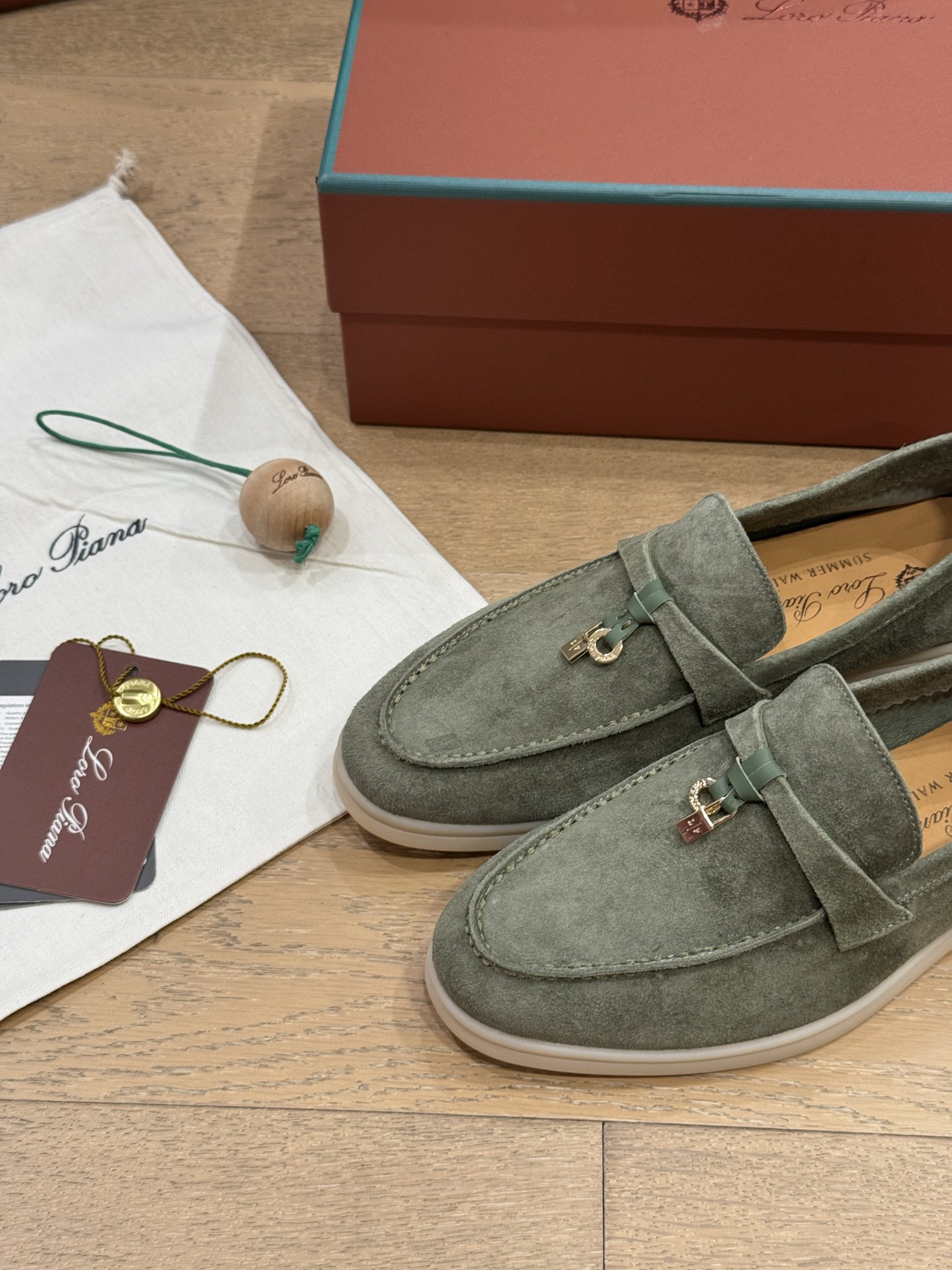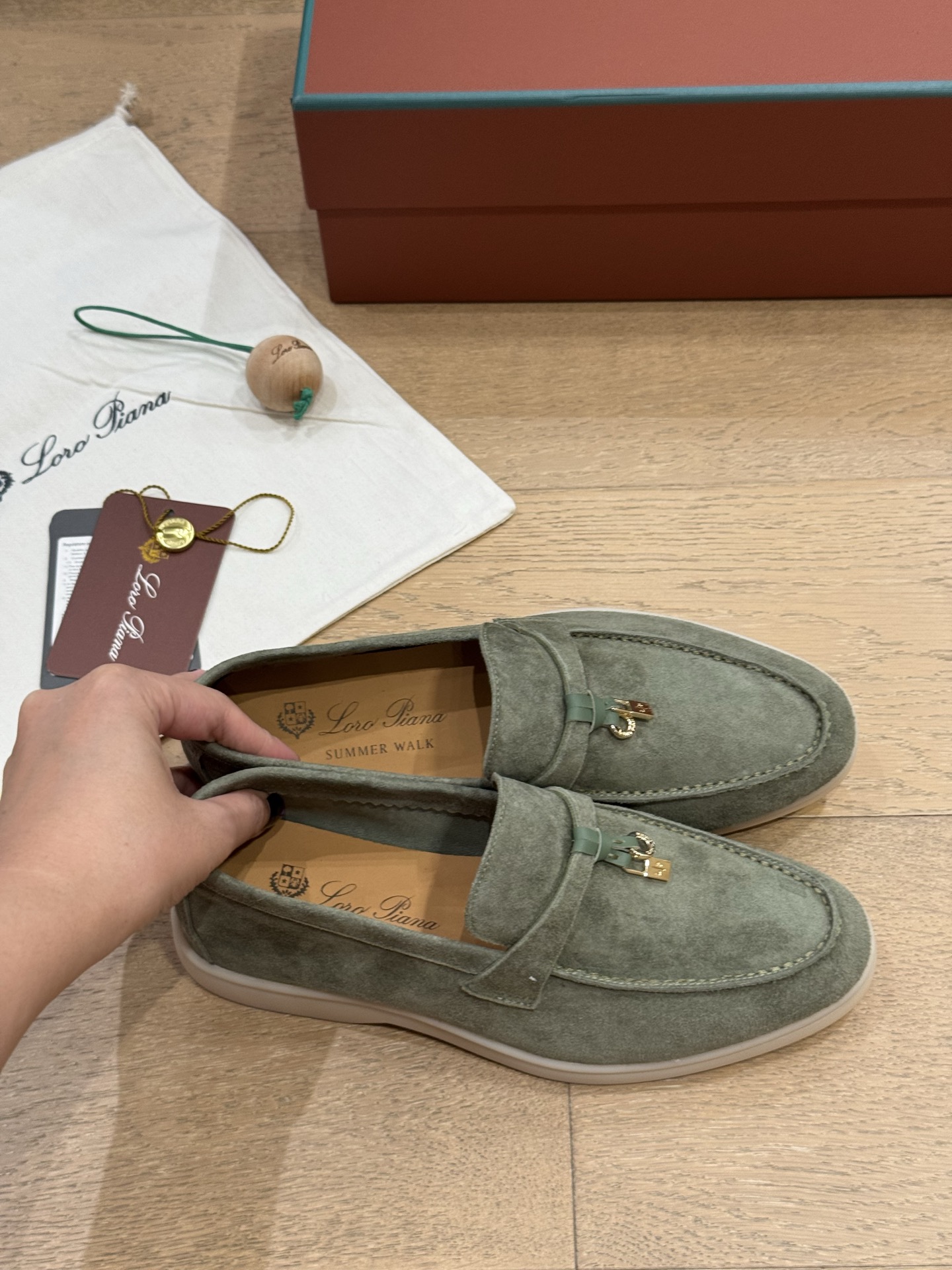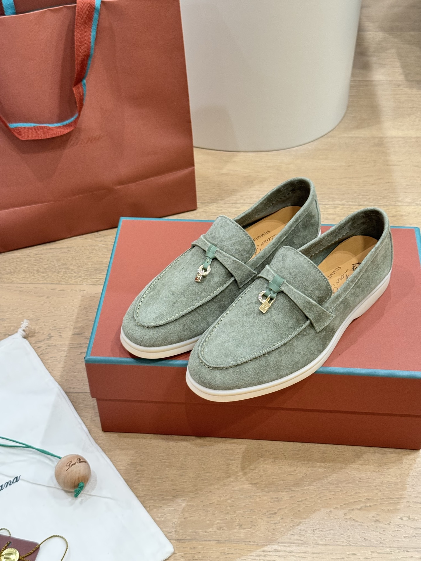 这款鞋子是AAAAA 1:1 质量 (非常棒). 使用了和原版一模一样的材料. 商标部分也保持了和洛罗皮亚纳/Loro Piana一样. 图片拍摄是实物鞋子拍摄, 您所收到的实物保证和我们图片一模一样.