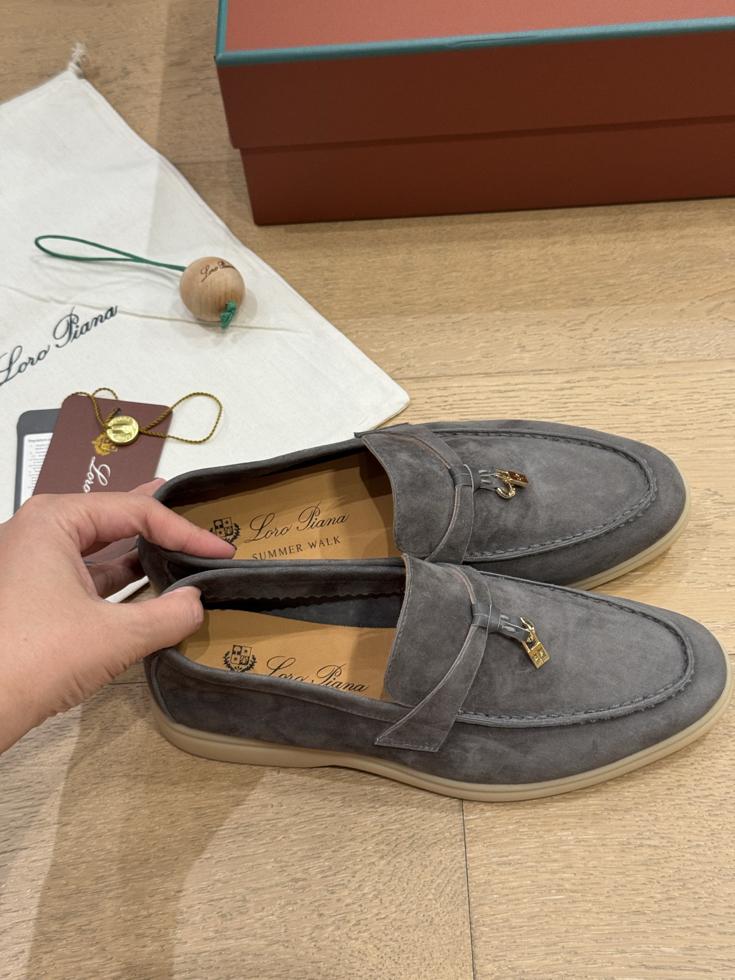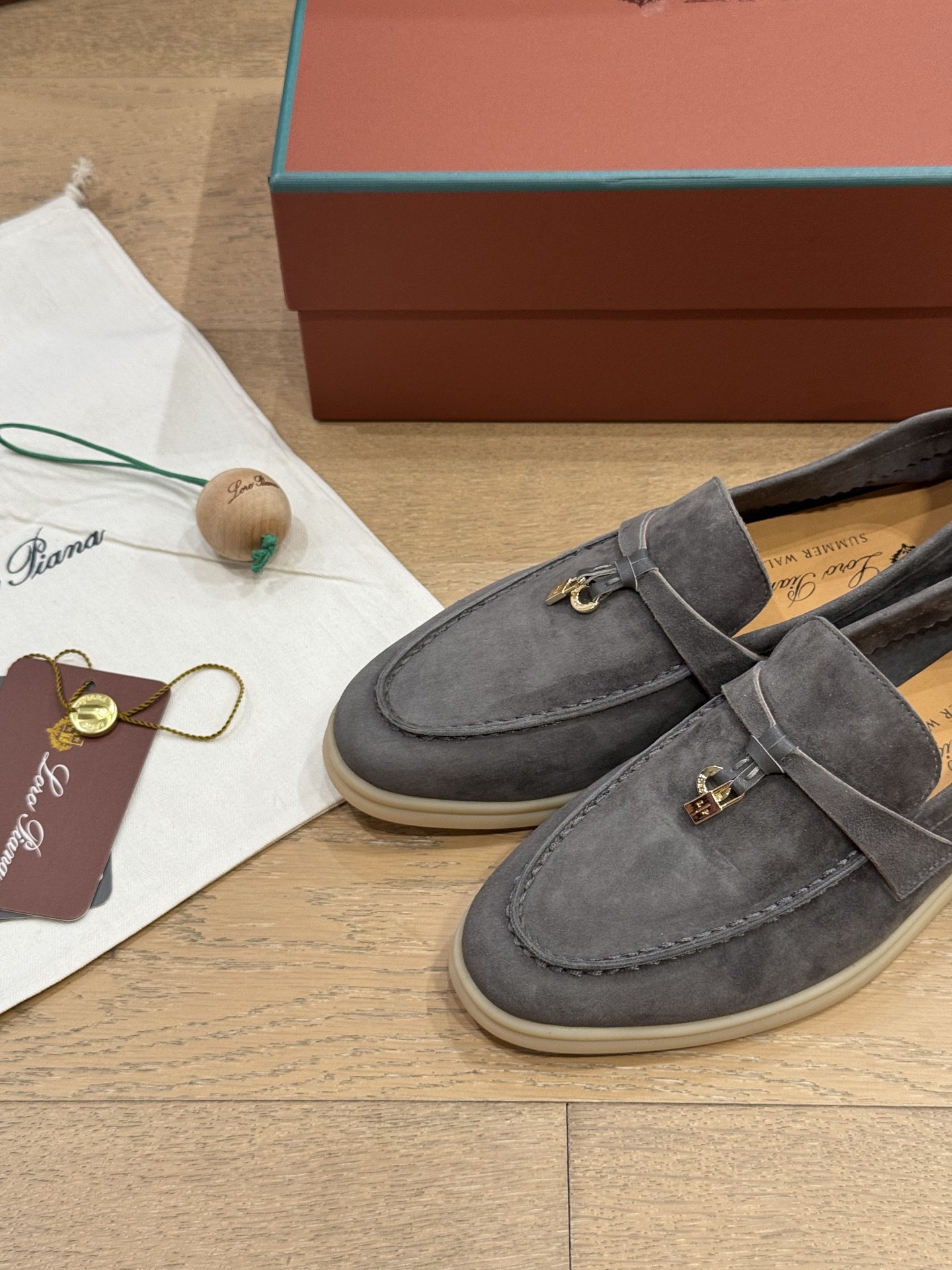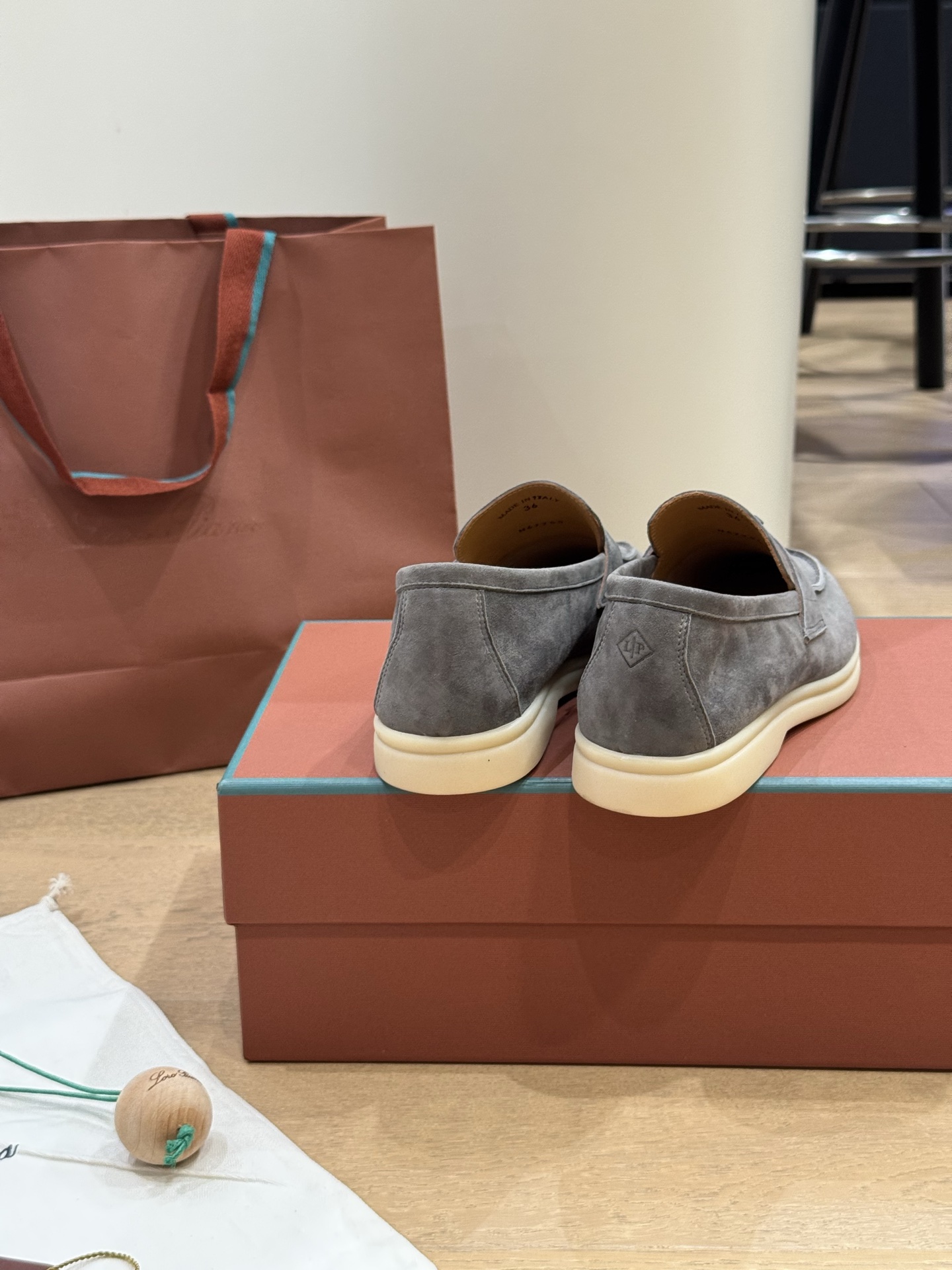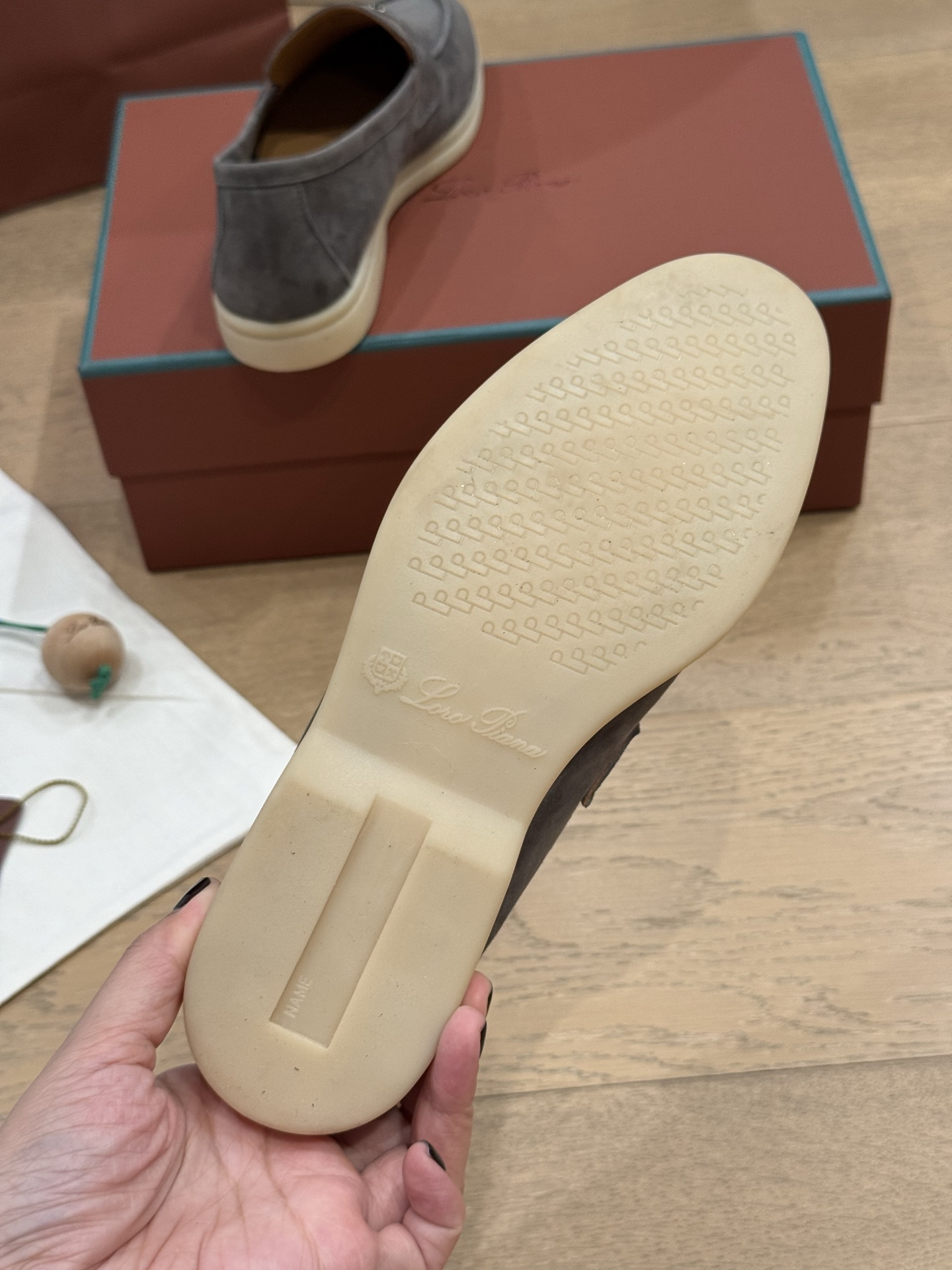 这款鞋子是AAAAA 1:1 质量 (非常棒). 使用了和原版一模一样的材料. 商标部分也保持了和洛罗皮亚纳/Loro Piana一样. 图片拍摄是实物鞋子拍摄, 您所收到的实物保证和我们图片一模一样.