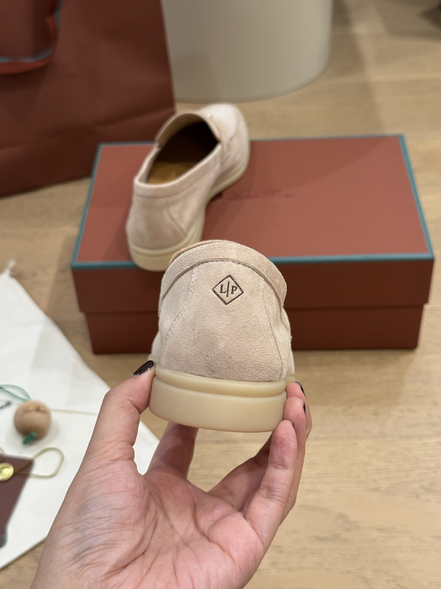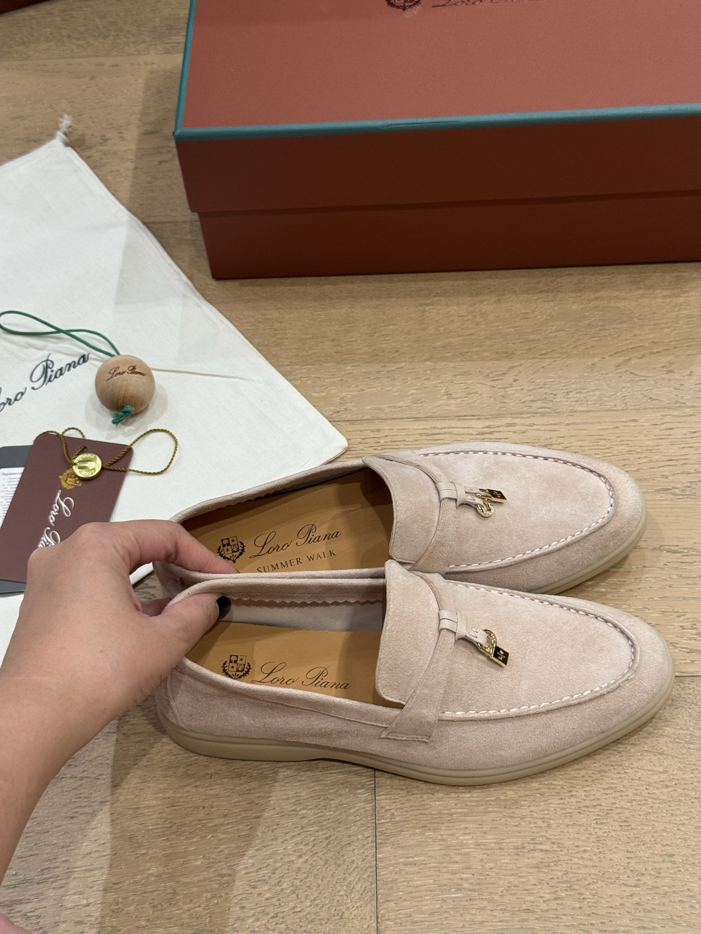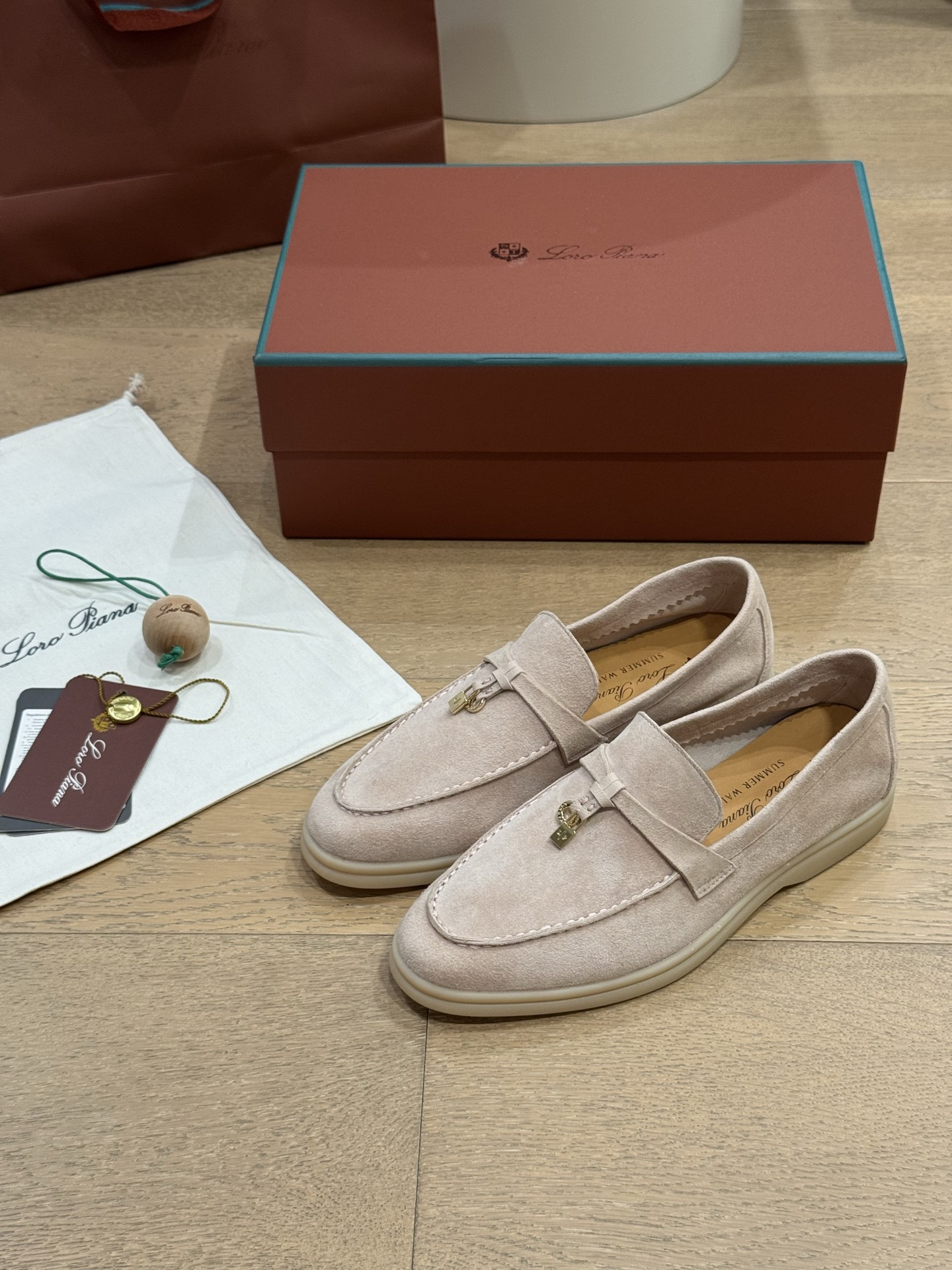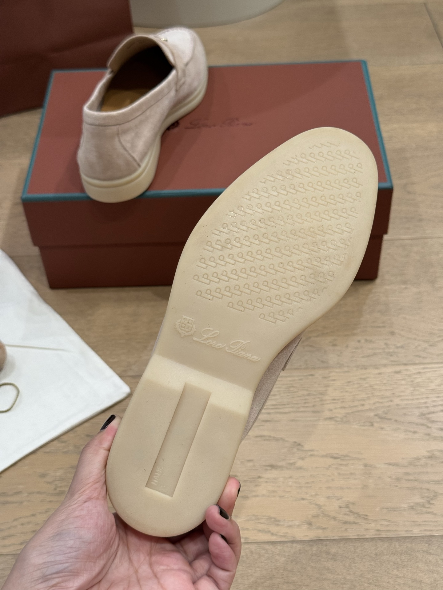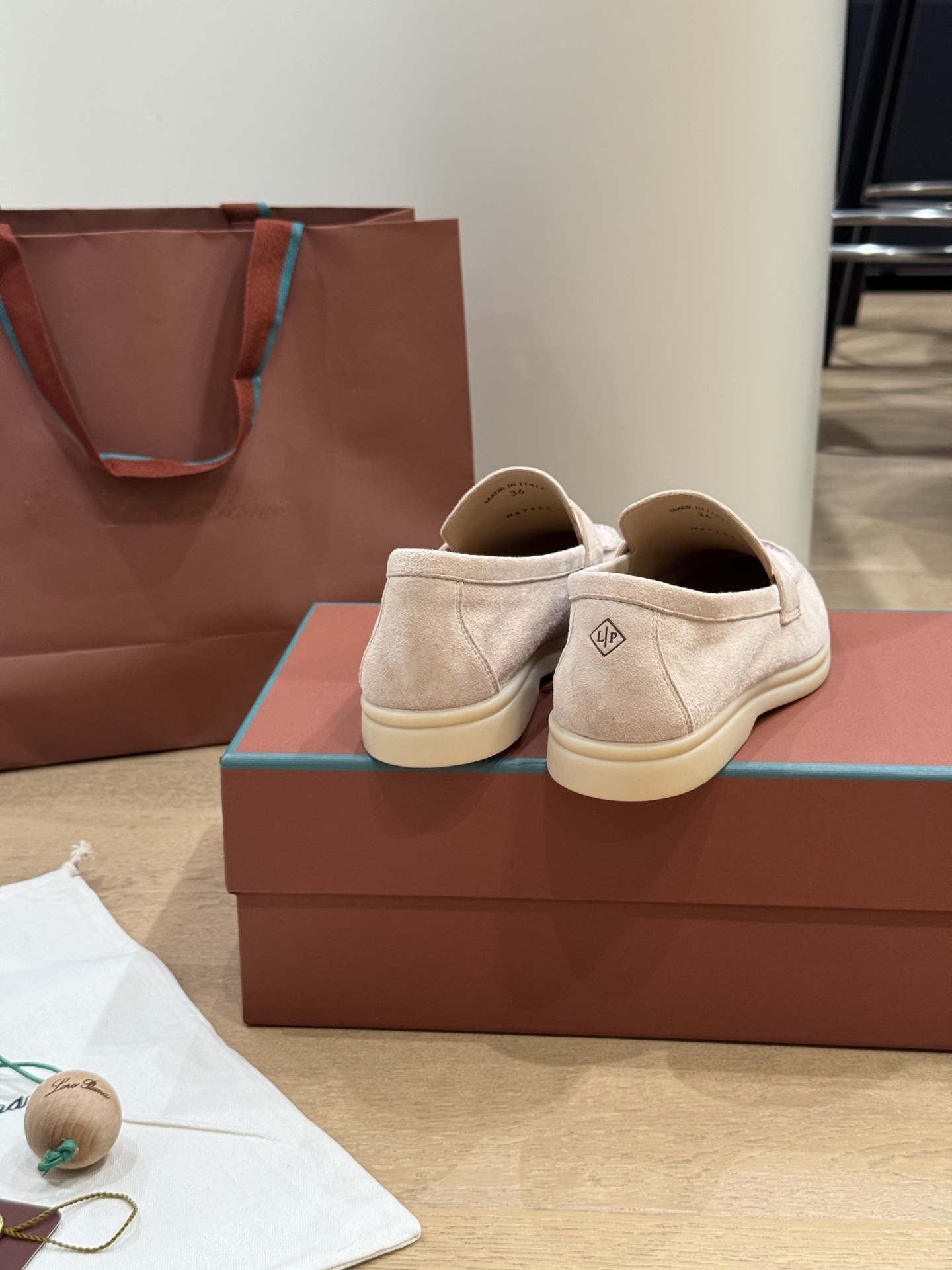 这款鞋子是AAAAA 1:1 质量 (非常棒). 使用了和原版一模一样的材料. 商标部分也保持了和洛罗皮亚纳/Loro Piana一样. 图片拍摄是实物鞋子拍摄, 您所收到的实物保证和我们图片一模一样.