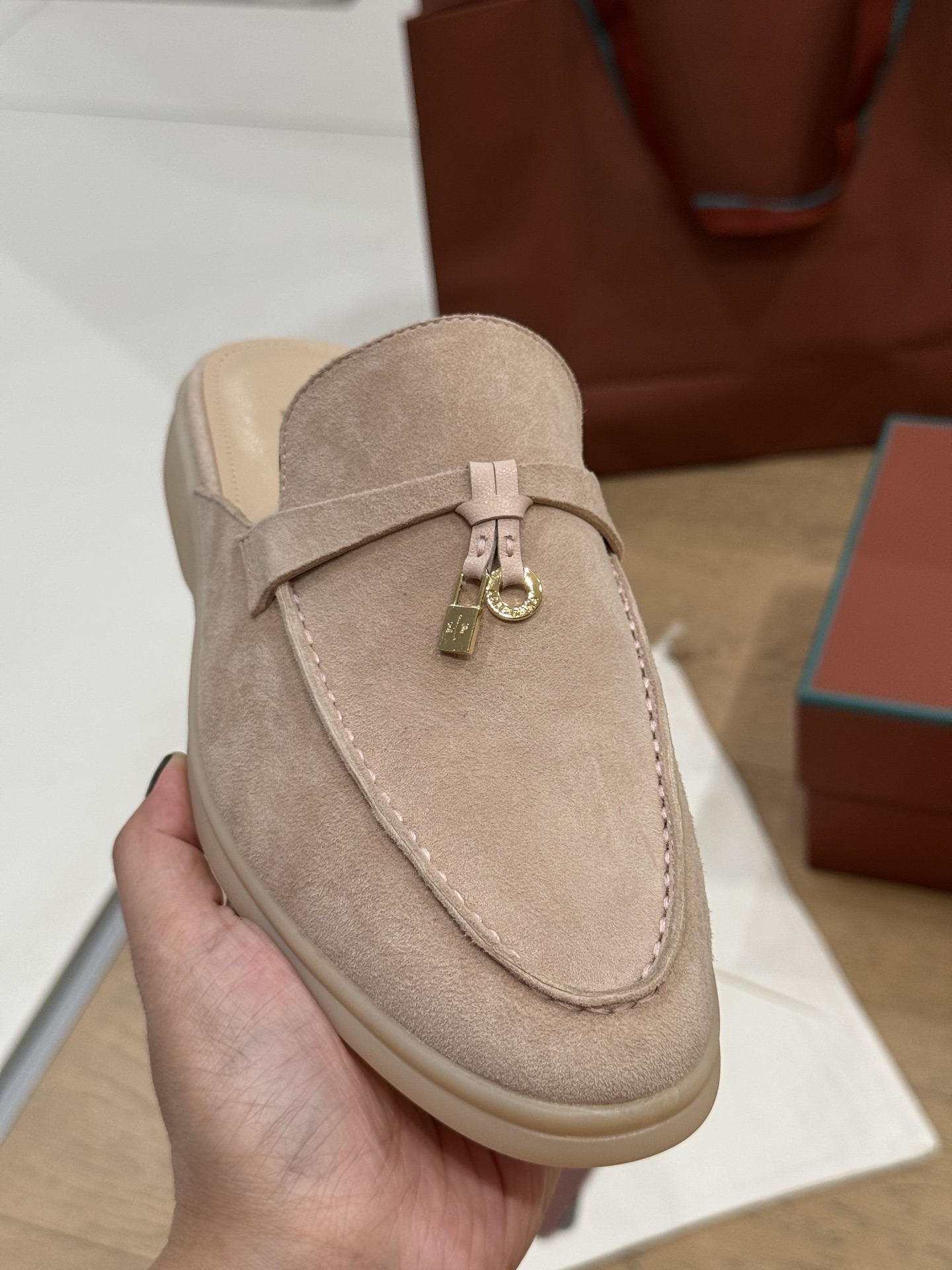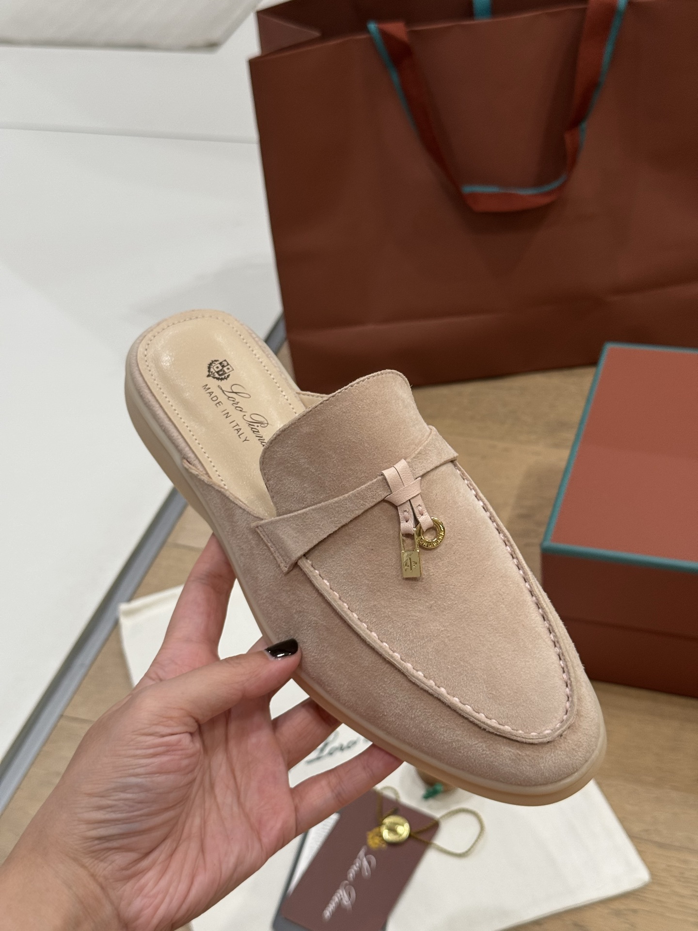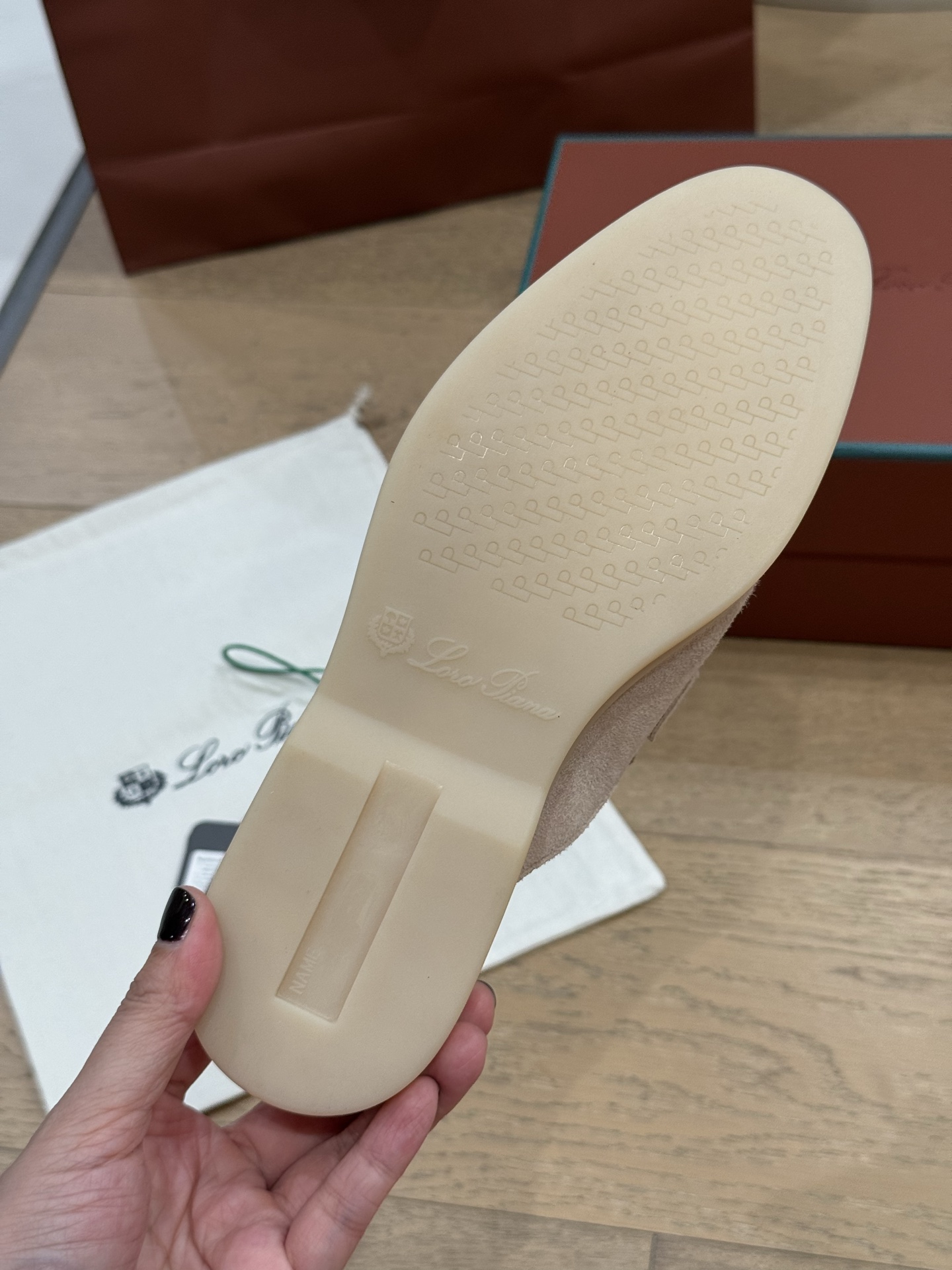 这款鞋子是AAAAA 1:1 质量 (非常棒). 使用了和原版一模一样的材料. 商标部分也保持了和洛罗皮亚纳/Loro Piana一样. 图片拍摄是实物鞋子拍摄, 您所收到的实物保证和我们图片一模一样.