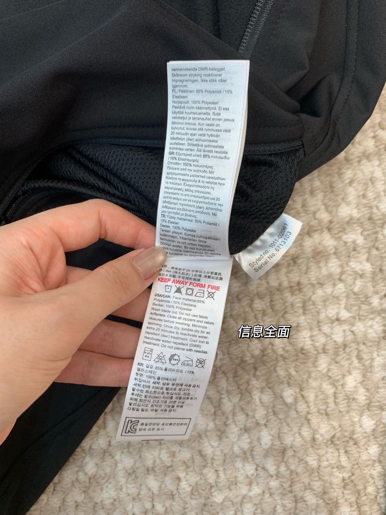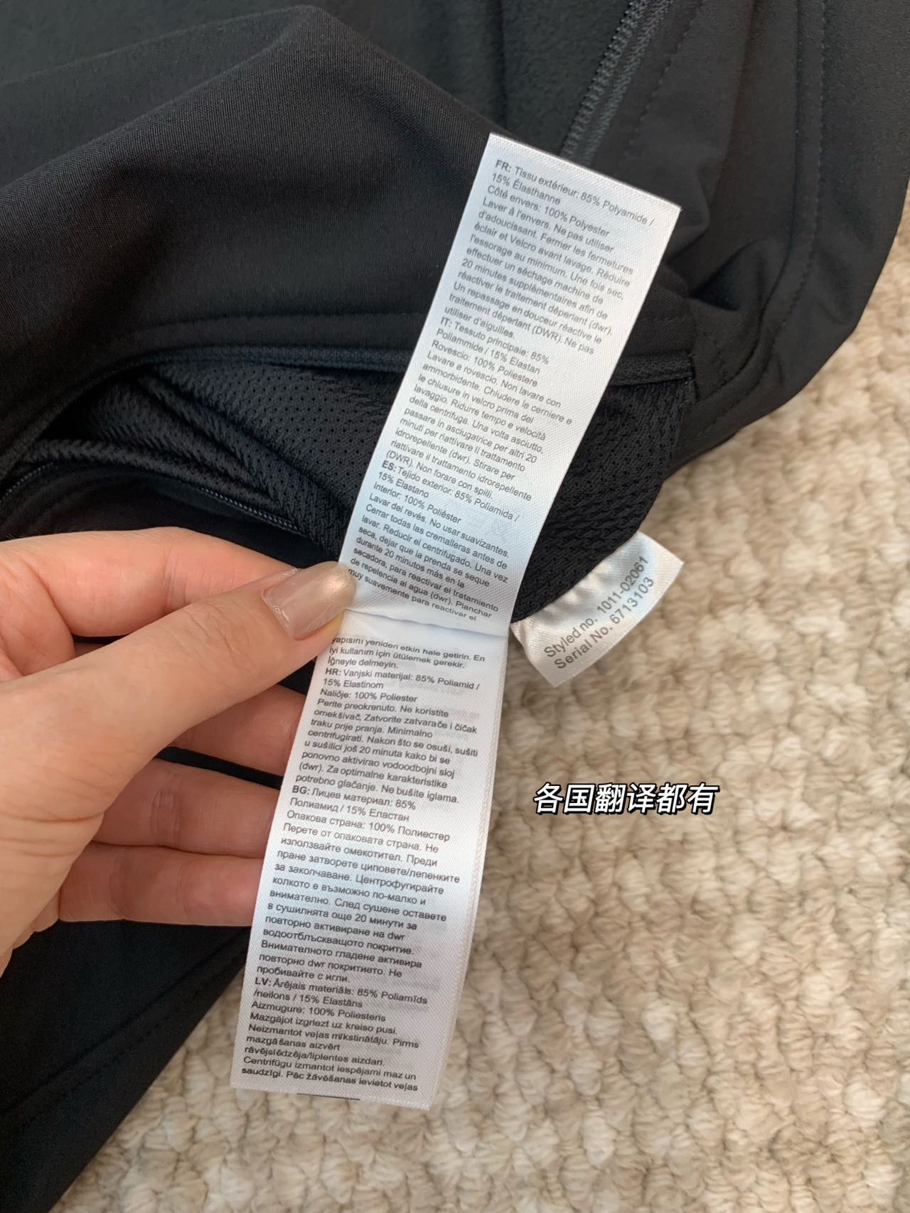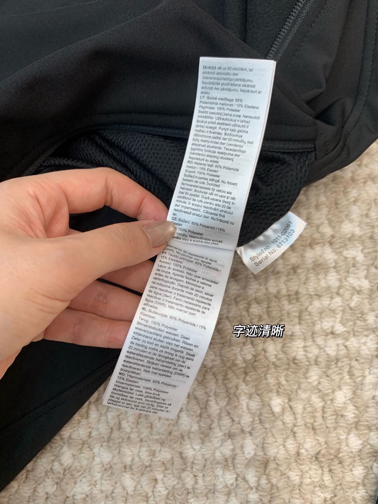 这款衣服是AAAAA 1:1 质量 (非常棒). 使用了和原版一模一样的材料. 商标部分也保持了和一样. 图片拍摄是实物衣服拍摄, 您所收到的实物保证和我们图片一模一样.