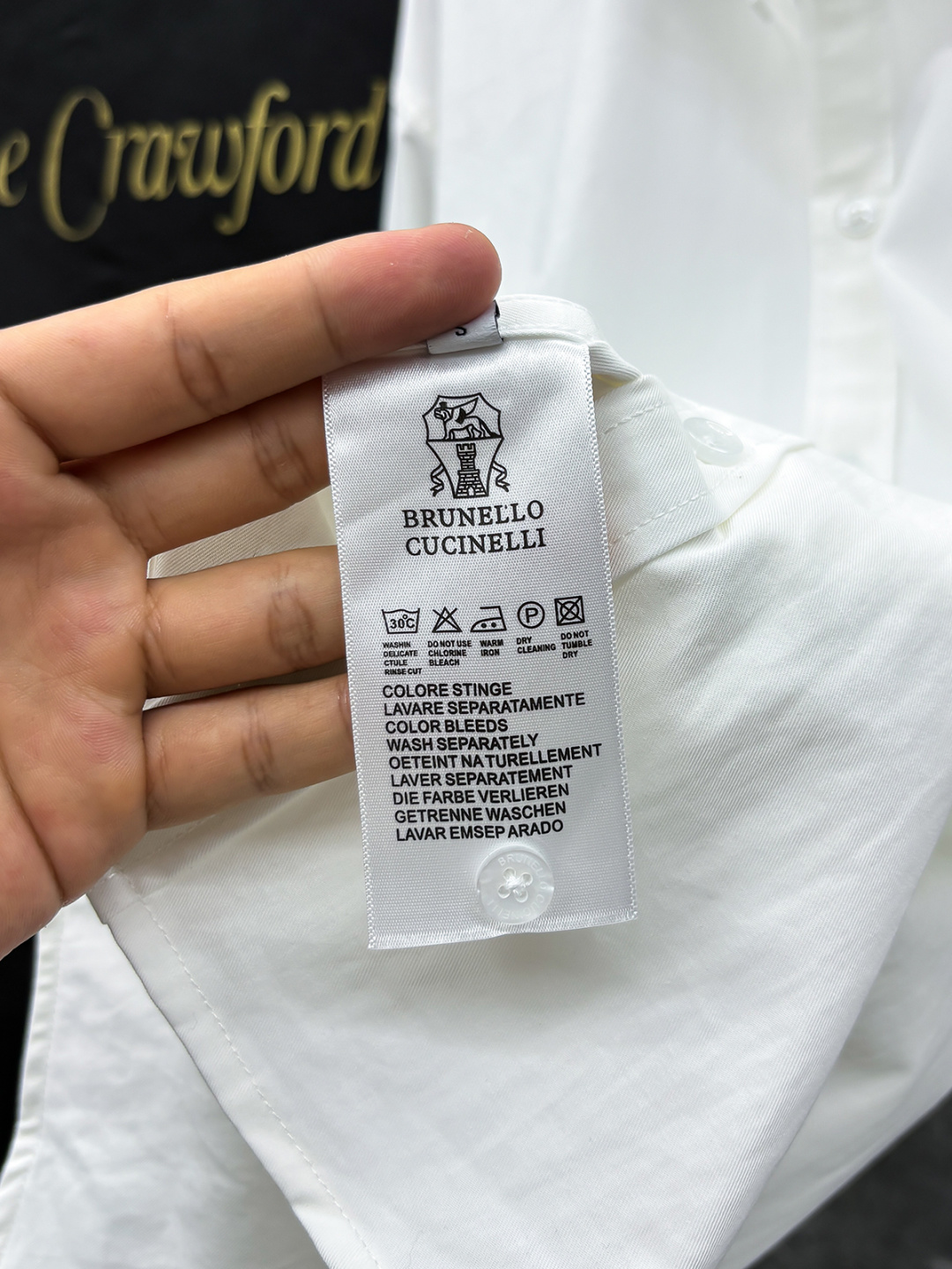 这款衣服是AAAAA 1:1 质量 (非常棒). 使用了和原版一模一样的材料. 商标部分也保持了和Brunello Cucinelli一样. 图片拍摄是实物衣服拍摄, 您所收到的实物保证和我们图片一模一样.