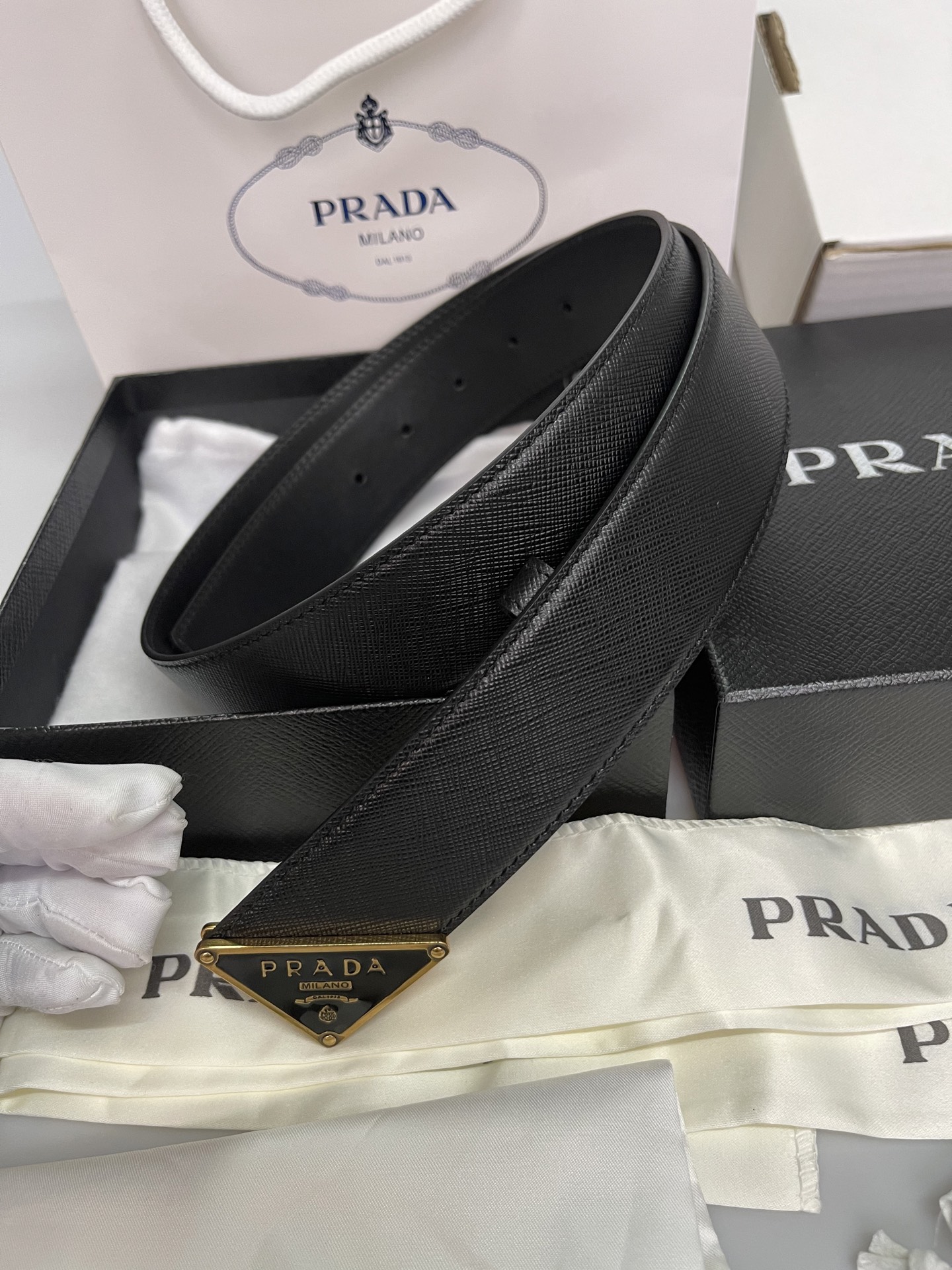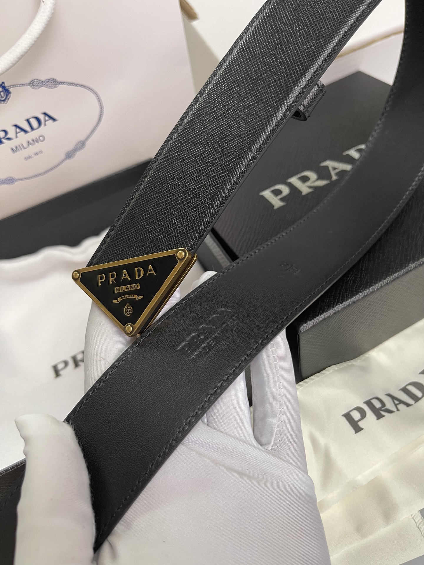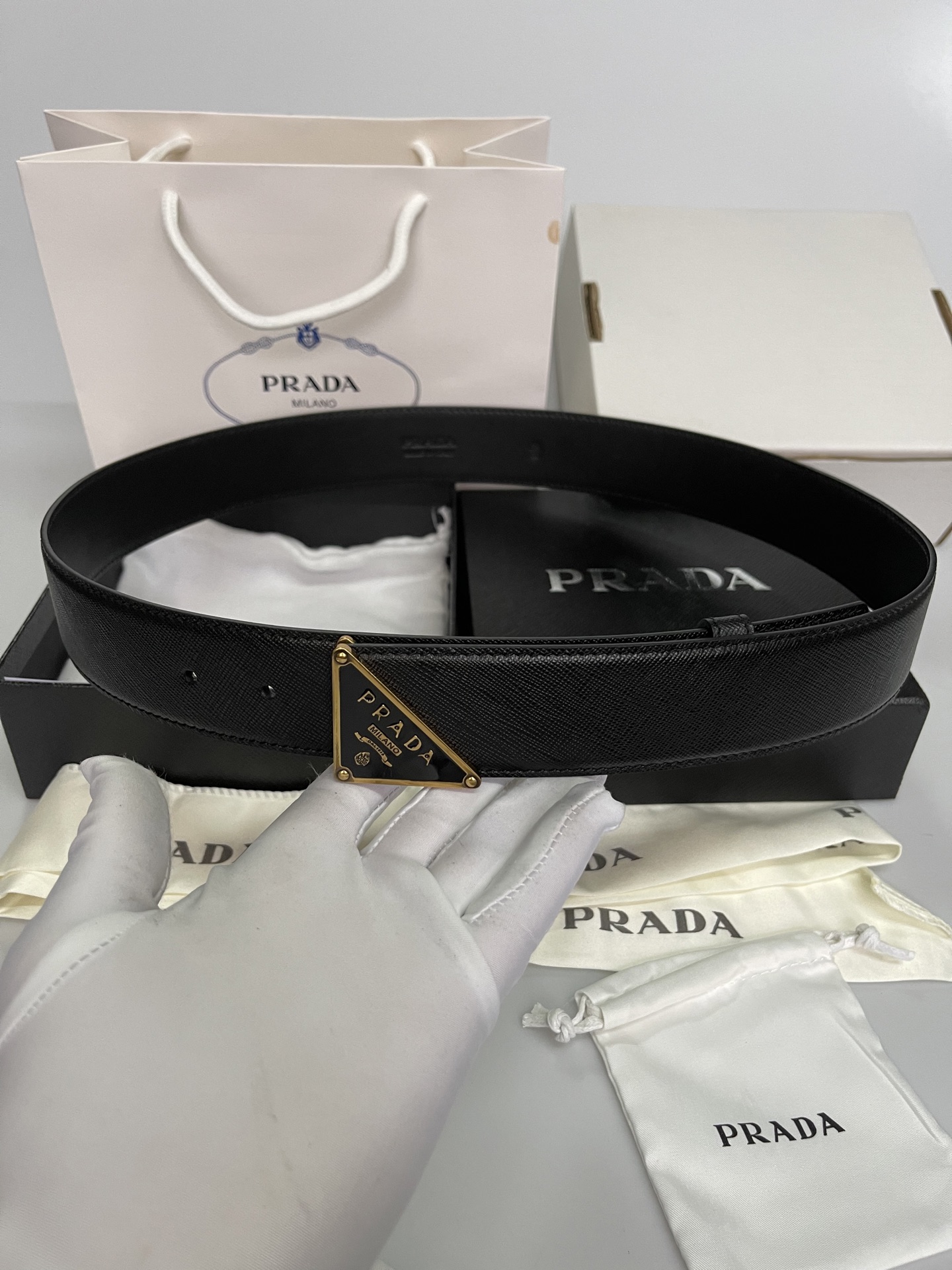 这款皮带是AAAAA 1:1 质量 (非常棒). 使用了和原版一模一样的材料. 商标部分也保持了和普拉达/Prada一样. 图片拍摄是实物皮带拍摄, 您所收到的实物保证和我们图片一模一样.