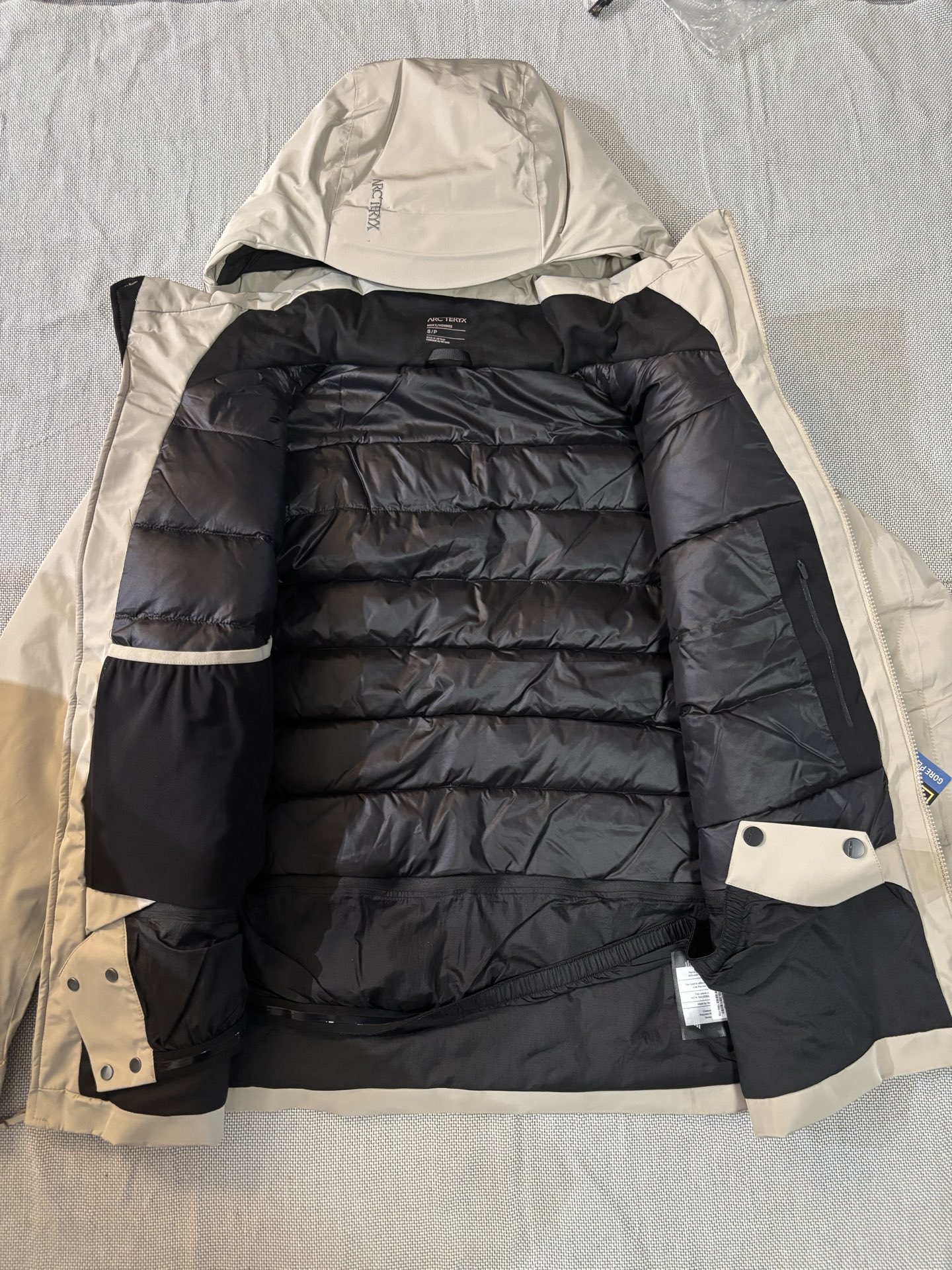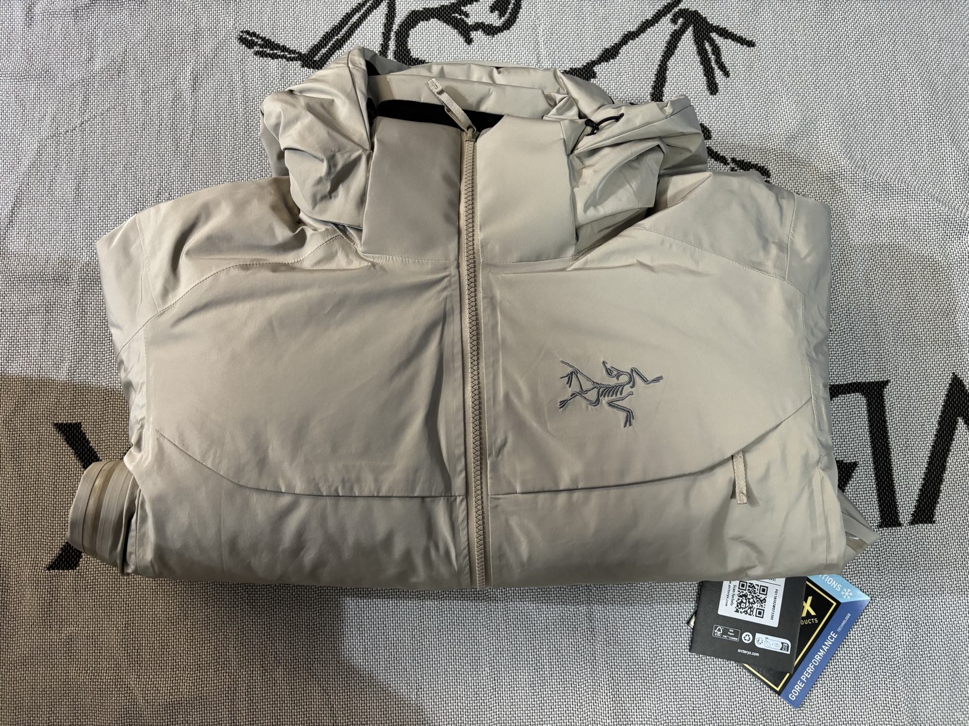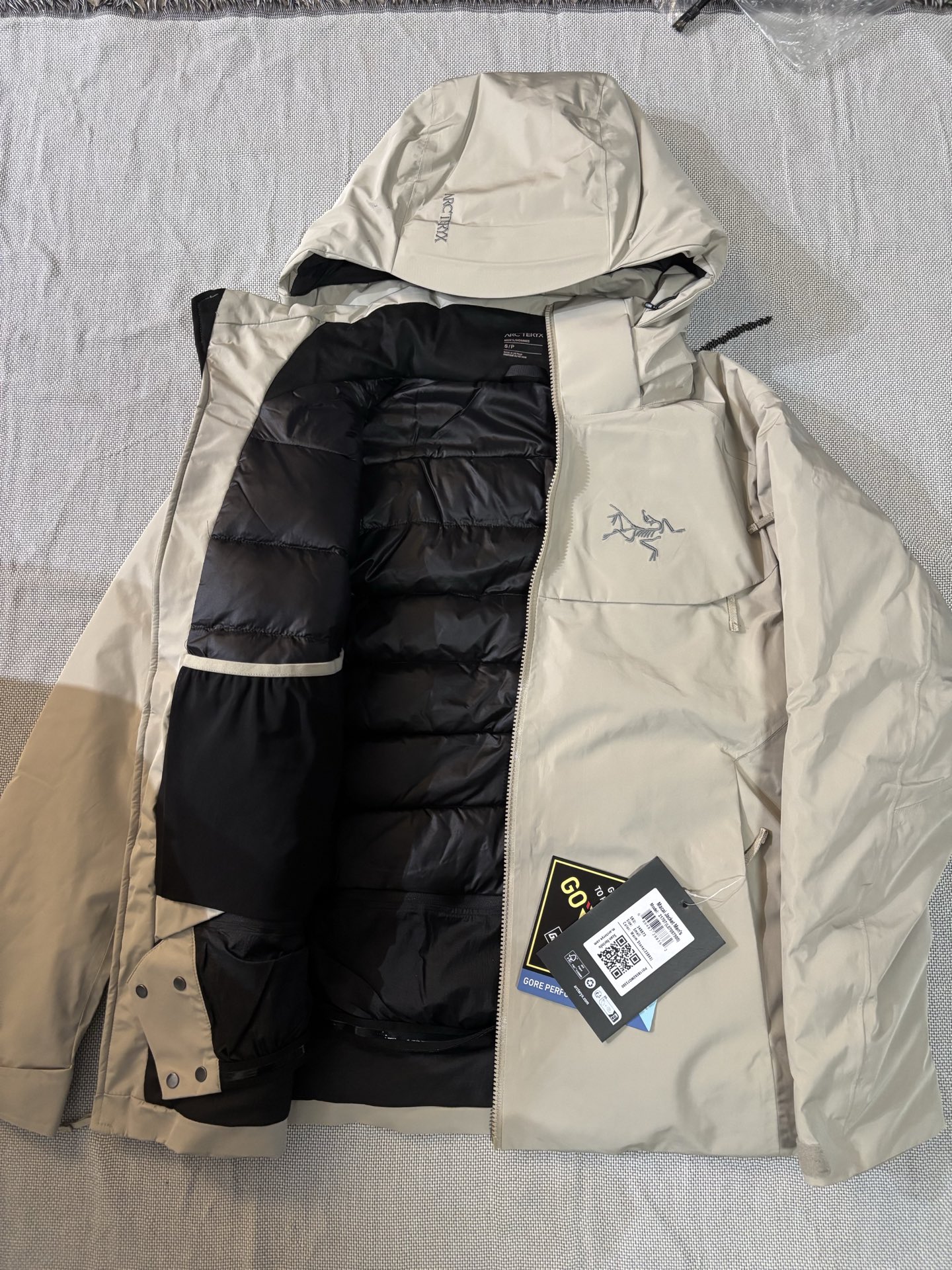 这款衣服是AAAAA 1:1 质量 (非常棒). 使用了和原版一模一样的材料. 商标部分也保持了和ARC'TERYX一样. 图片拍摄是实物衣服拍摄, 您所收到的实物保证和我们图片一模一样.