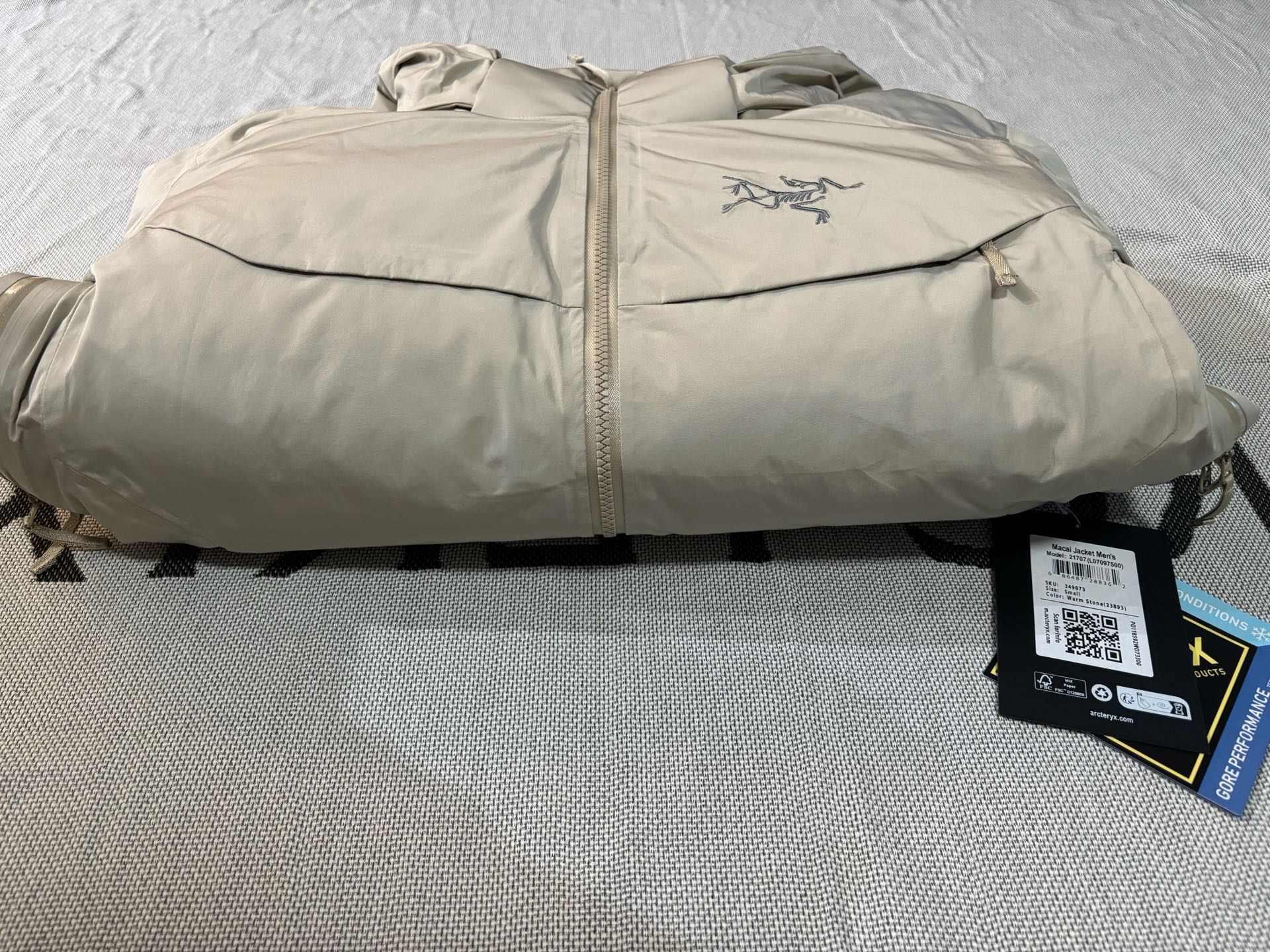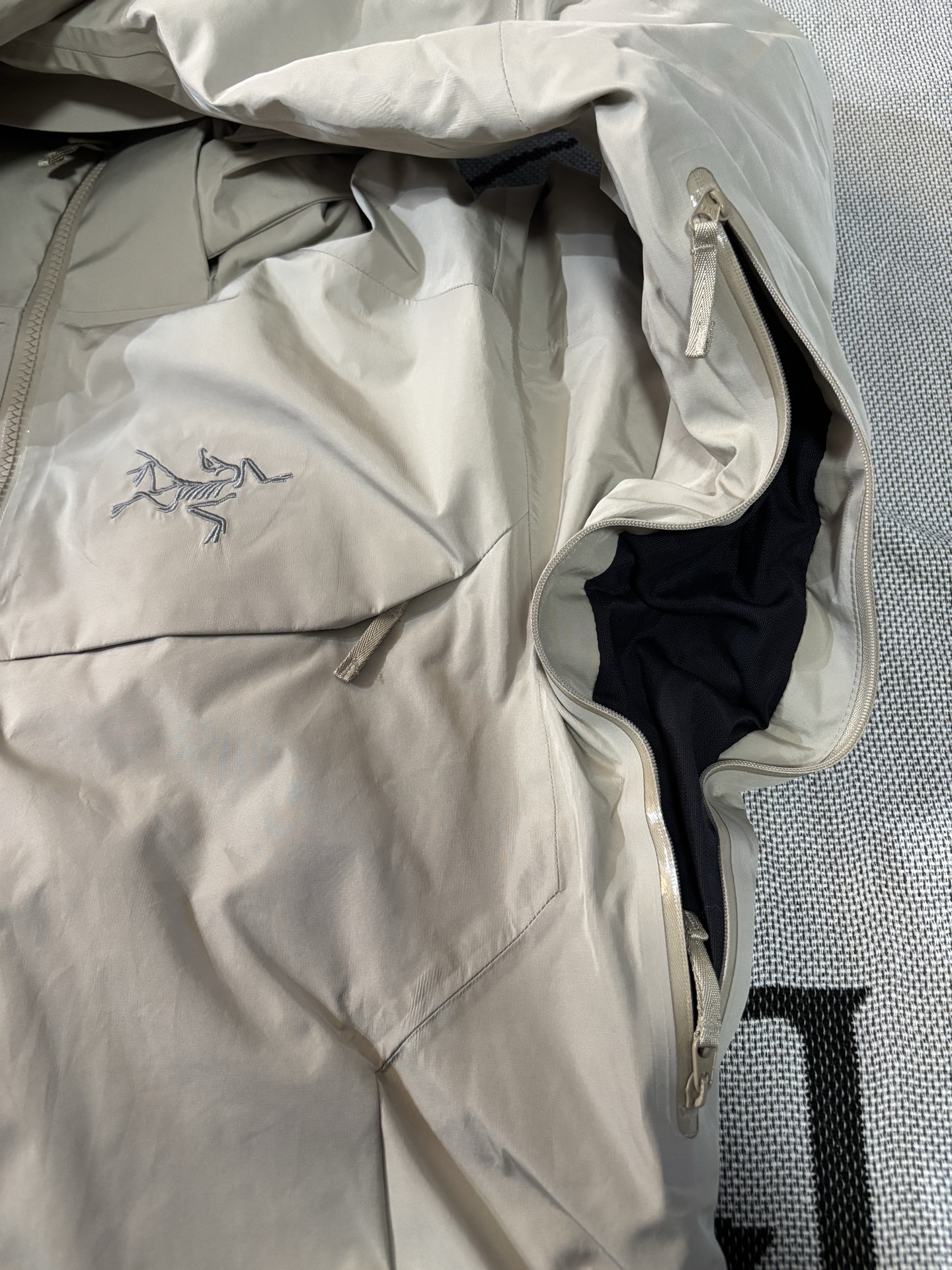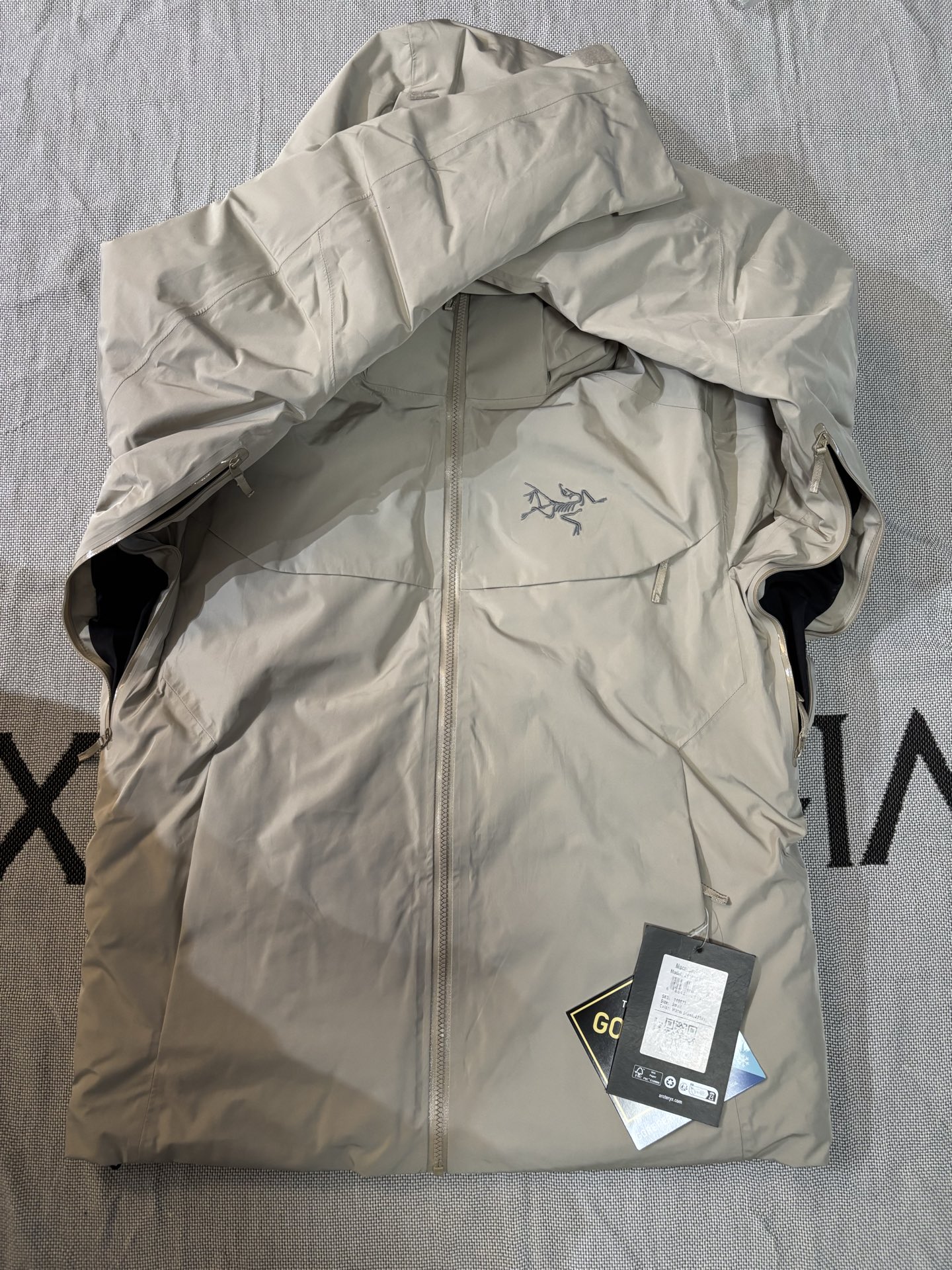 这款衣服是AAAAA 1:1 质量 (非常棒). 使用了和原版一模一样的材料. 商标部分也保持了和ARC'TERYX一样. 图片拍摄是实物衣服拍摄, 您所收到的实物保证和我们图片一模一样.