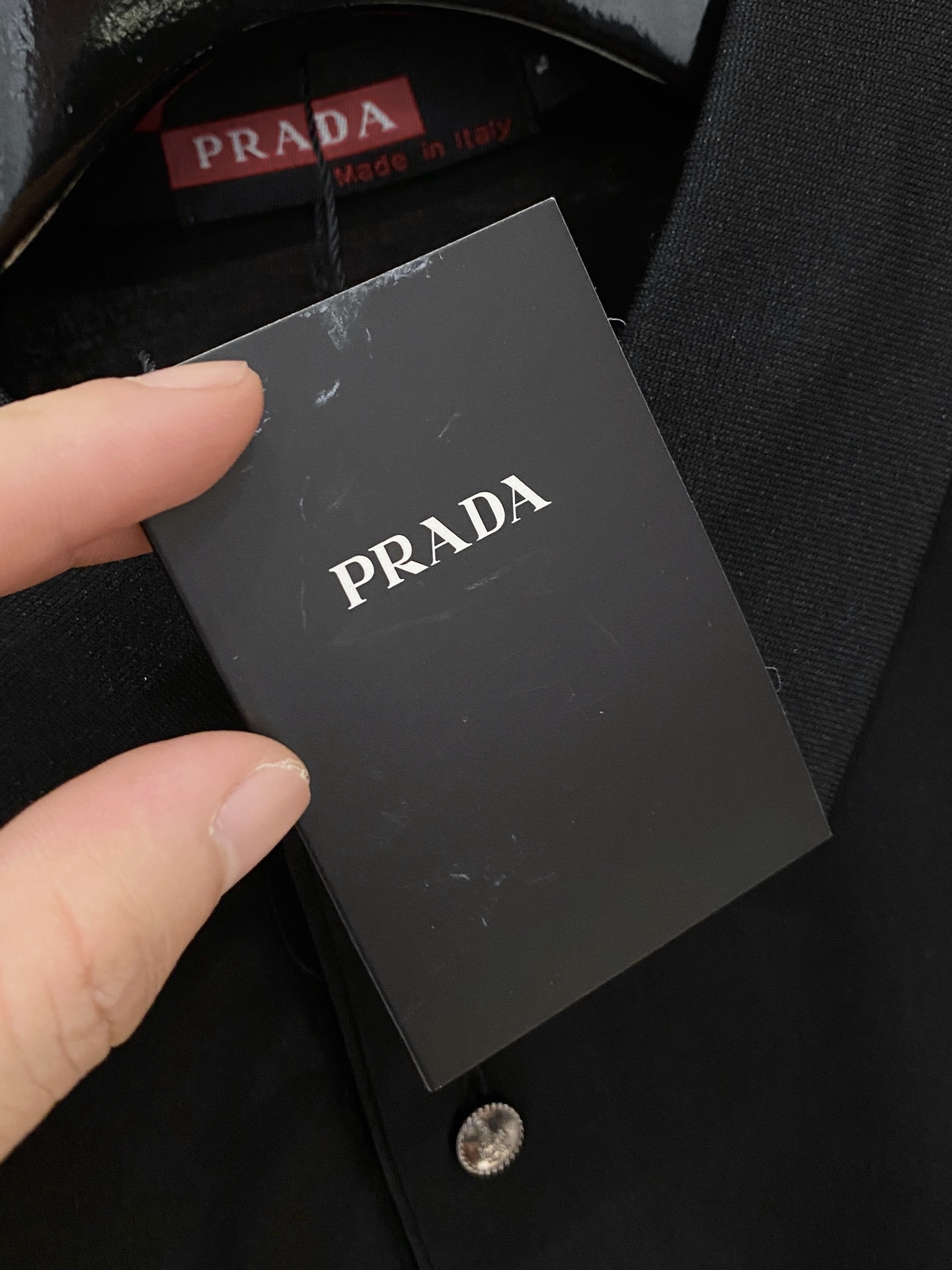 这款衣服是AAAAA 1:1 质量 (非常棒). 使用了和原版一模一样的材料. 商标部分也保持了和普拉达/Prada一样. 图片拍摄是实物衣服拍摄, 您所收到的实物保证和我们图片一模一样.